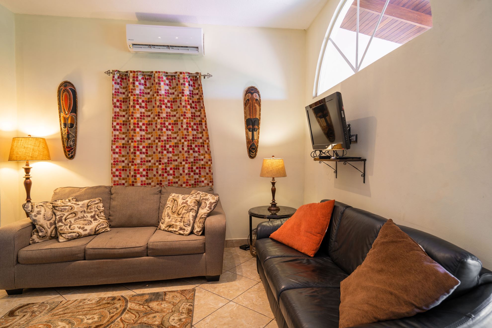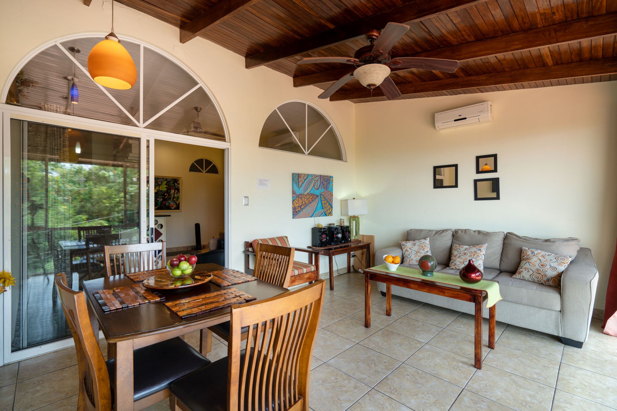 A few stairs down from street level gives immediate access to all the best restaurants, shops, grocery stores, banks, spa, and gym. It is a 5-minute drive to Manuel Antonio National Park and the public beach.