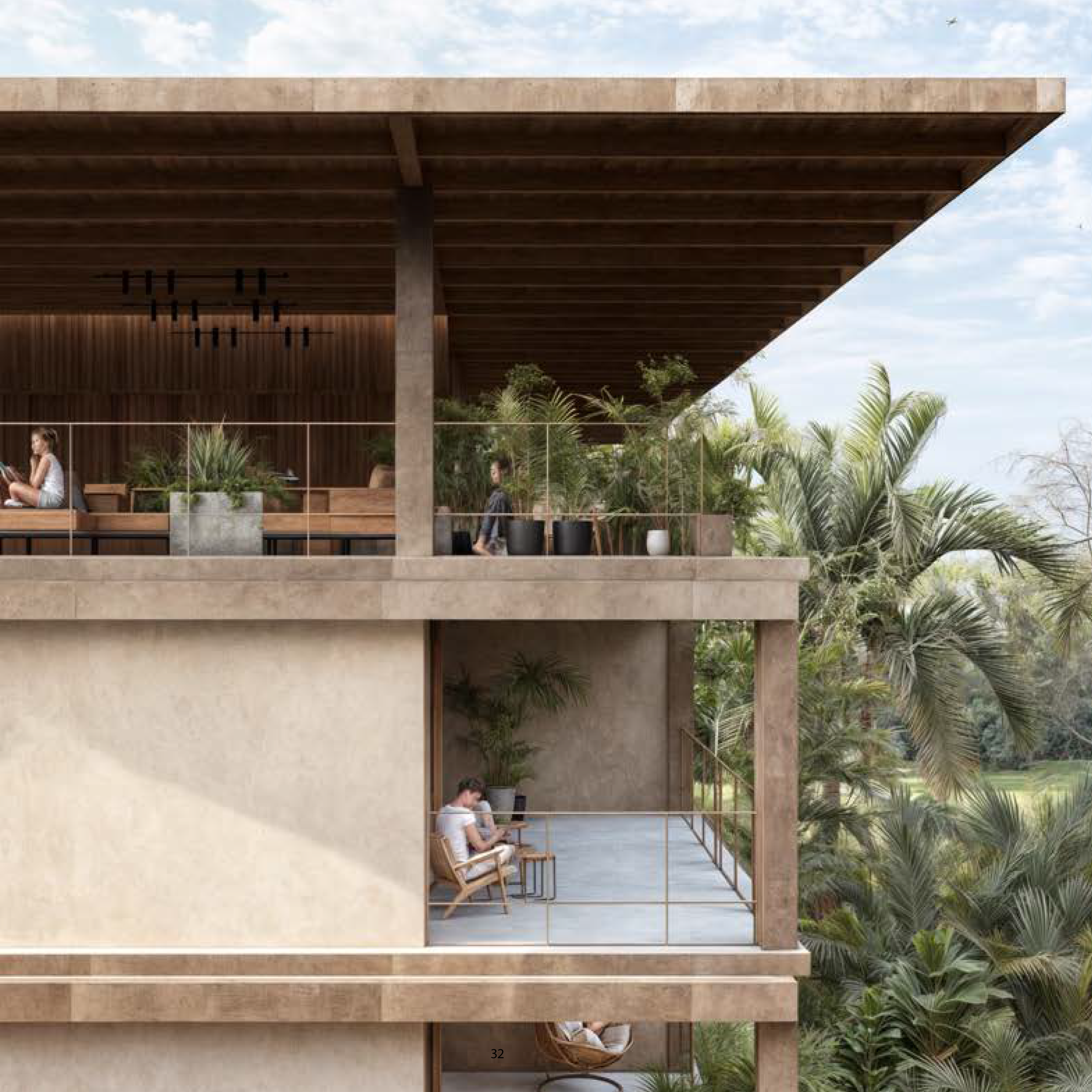 • Open interior-facing façade enhances ventilation and maintains comfortable temperatures year-round.