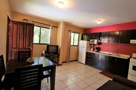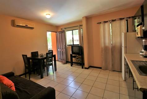 You can be here! This one bed / one bath condo is located on the 2nd floor of the popular Cocomarino Development, located 300 meters from the beach and a short walk into the town of Playas del Coco. This is a gated community and does very well with rentals, both long and short term. The pool is the focal point of the property which has beautiful landscaping of tropical flowers and plant. The town of Playas del Coco is a 10 minute walk. There are shared washer and dryers on site
