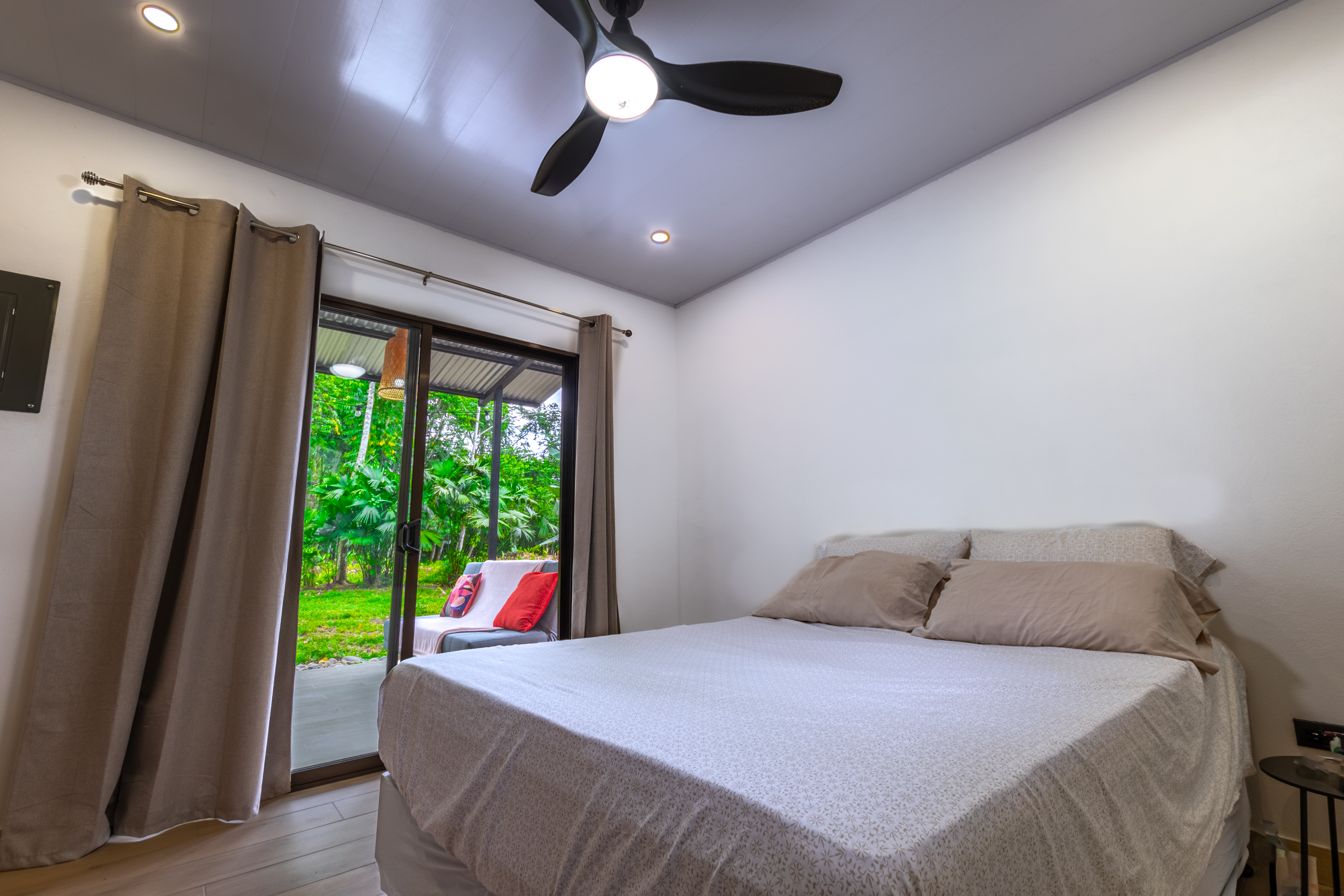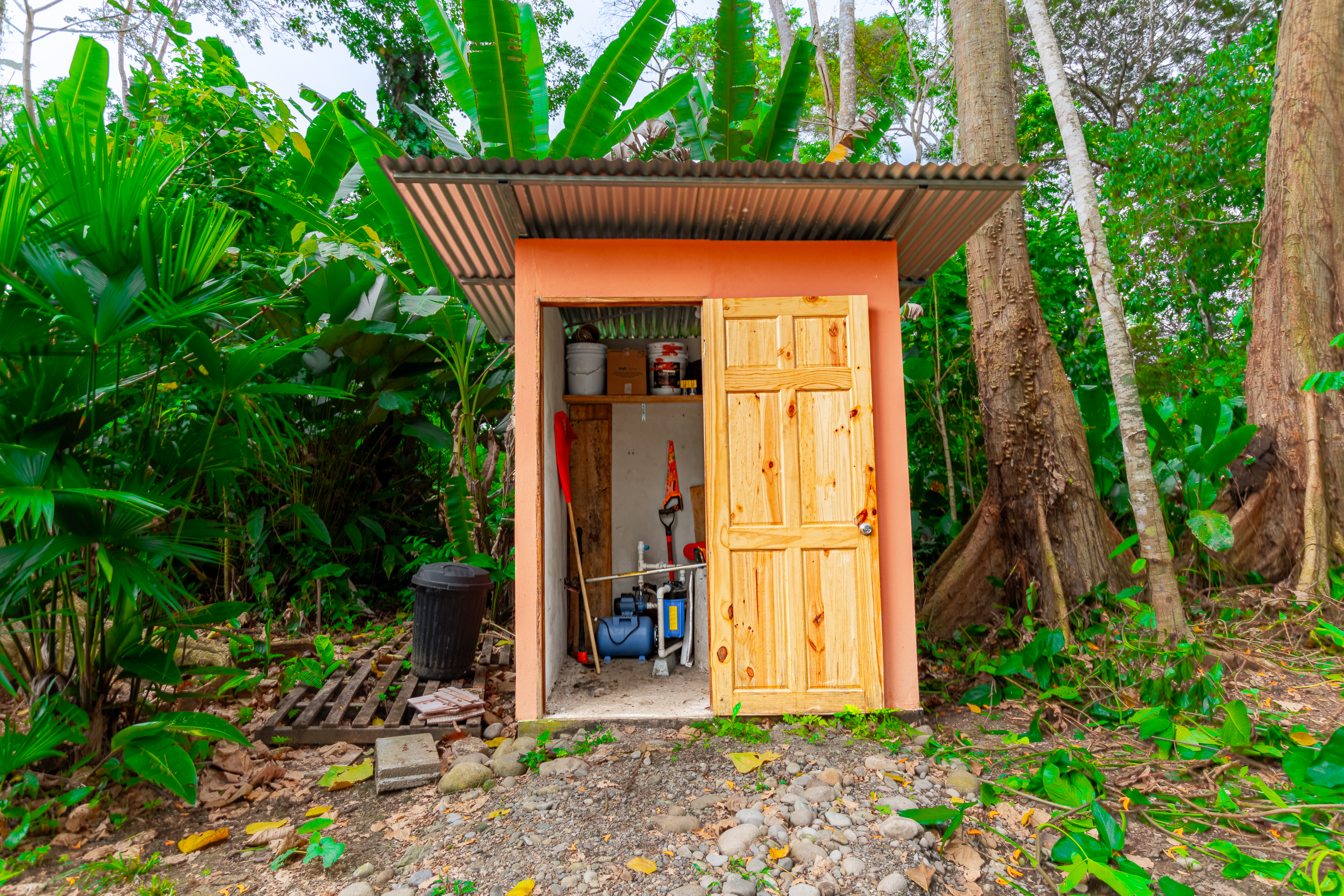 Comfortable Living Space: A bright, well-insulated, one-bedroom home (30 m²) provides a cozy living area, complete with air conditioning and quality finishes. Expansive Outdoor Living: Enjoy the beauty of nature from the spacious 25 m² terrace, offering captivating views of lush greenery and frequent visits from local wildlife, including sloths and toucans. Functional Amenities: A 4 m² laundry room and a separate shed enhance the property's practicality. Generous Lot: The impressive 5,611 m² lot presents numerous possibilities for residential or tourist development. Dual Access: Two independent entrances facilitate flexible land use, catering to various development plans. Essential Utilities: Benefit from both a private well and access to public water, ensuring reliable water supply. Modern Connectivity: Stay connected with Starlink internet service. Fully Equipped: This property is offered fully equipped, allowing for immediate occupancy or rental income. Prime Location: Conveniently located just 10 minutes from downtown Cahuita and 5 minutes from Playa Grande, providing easy access to local amenities and stunning beaches. Embrace the Cahuita Lifestyle: