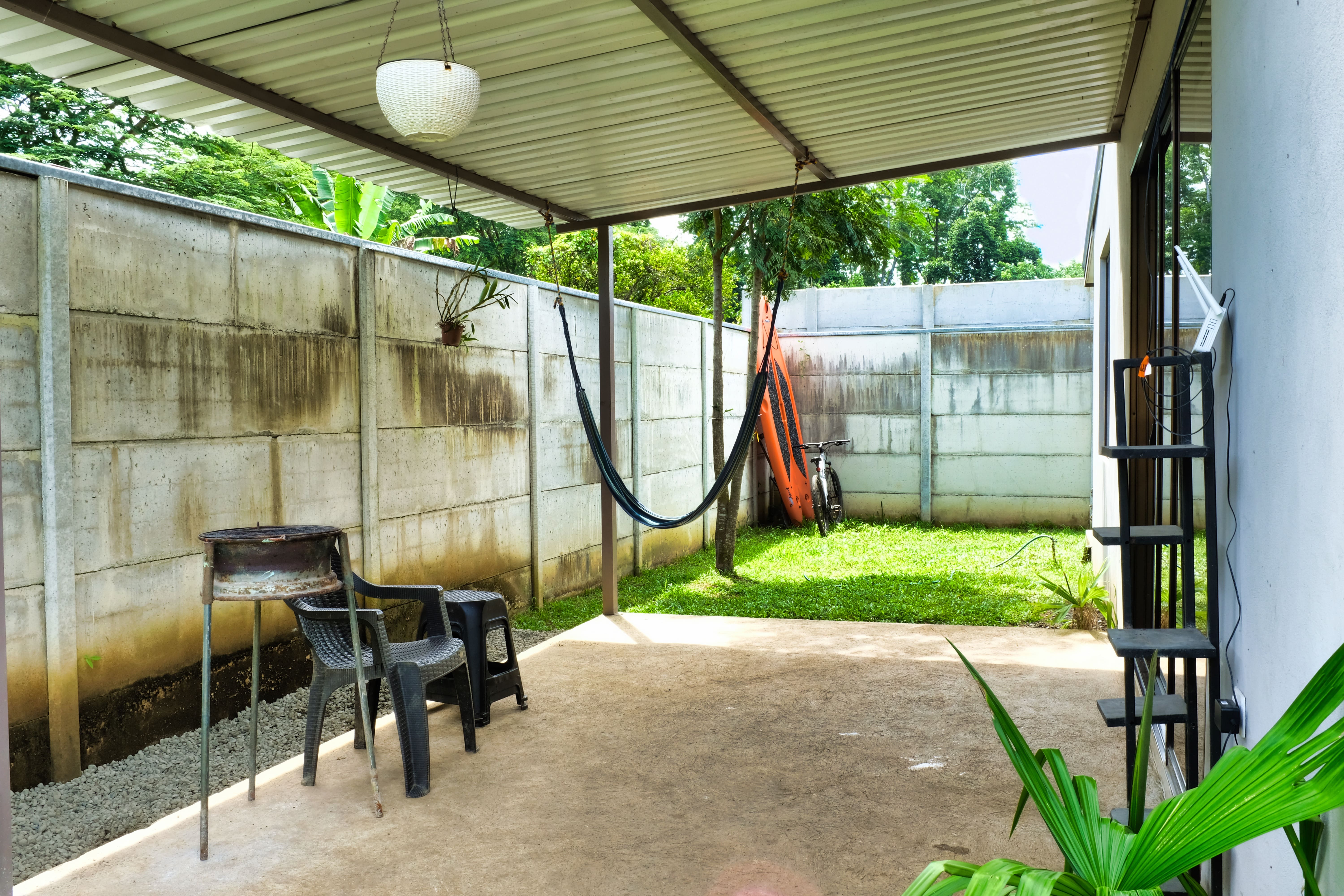 Retreat to the air-conditioned bedroom for restful nights, while the full bathroom provides everyday convenience. Outside, unwind on the inviting porch with a dedicated seating area, ideal for sipping morning coffee while listening to the sounds of the jungle. Water security is ensured by a private on-site well, with the option to connect to municipal AYA water for added flexibility.