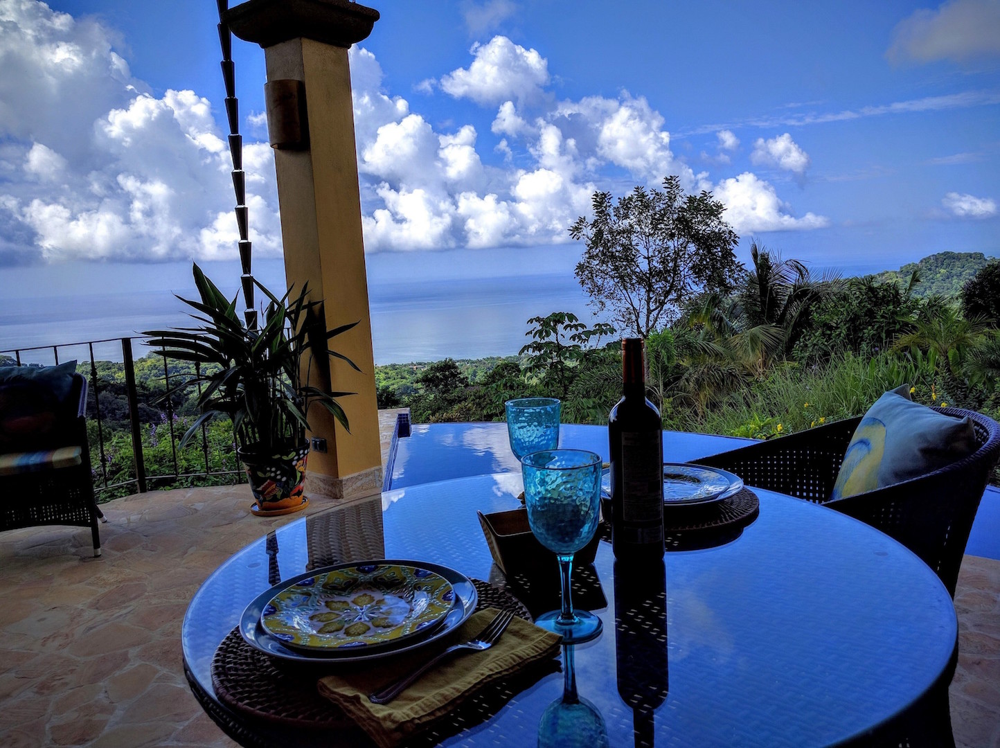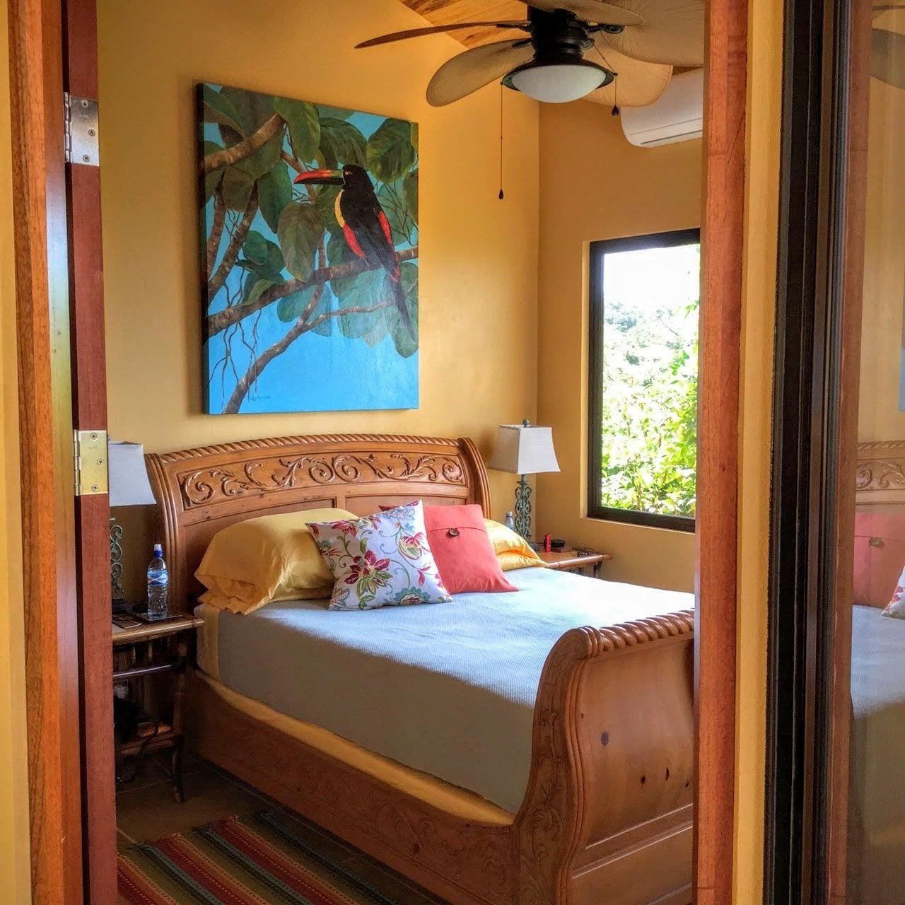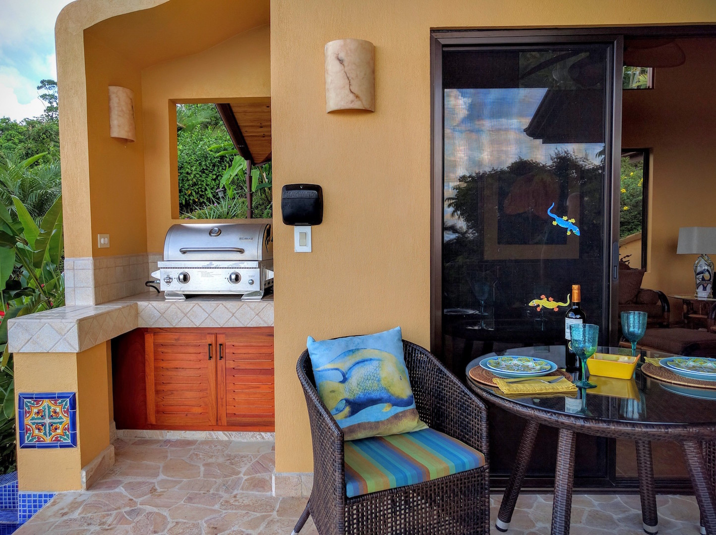 This casita is the perfect place for you to relax. In the morning, you’ll spot wildlife such as Capuchin monkeys or sloth on a walk through the property trails. Whether you’re sunbathing by the infinity pool or using the stainless steel BBQ with friends, you’re apt to see some colorful birds and butterflies. The covered terrace is the perfect spot to sip some wine while enjoying 120-degree ocean views of Dominical Beach and Manuel Antonio. It comes with a Bali All-weather wicker dining table and four chairs. It’s the ideal spot to watch year-round sunsets. At night, the light breeze and ocean waves will lull you to sleep.