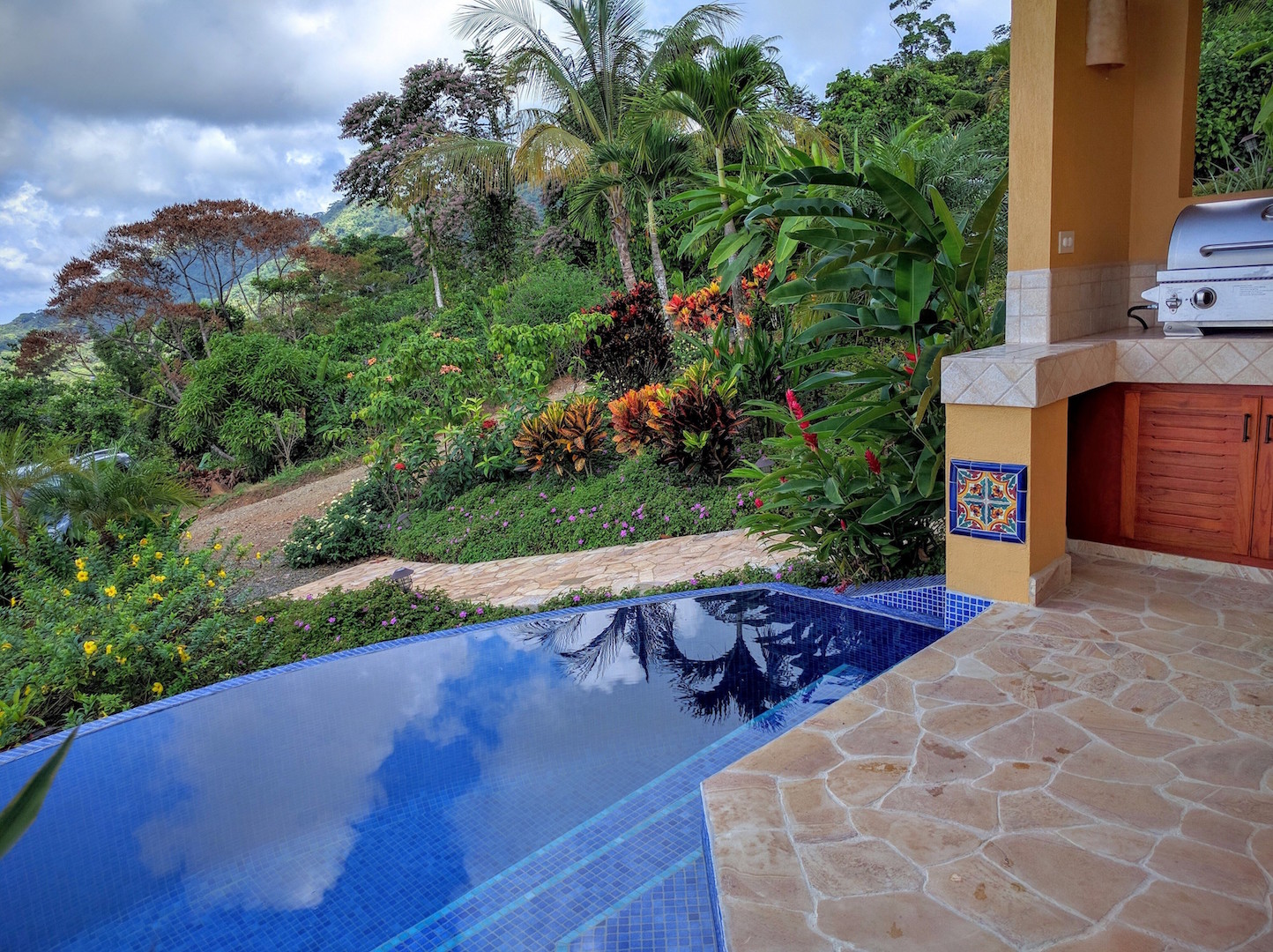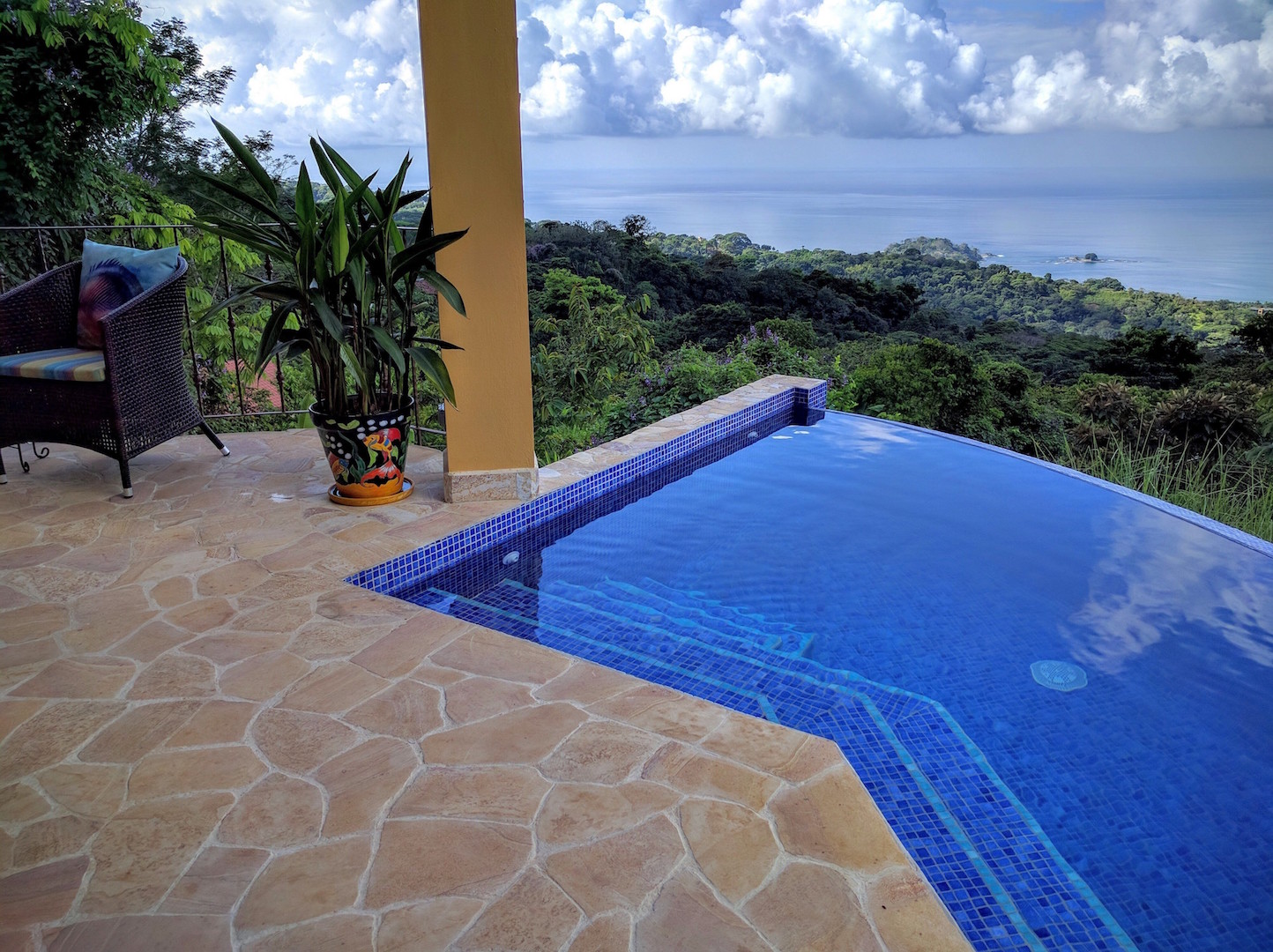 La Joyita (Little Jewel) an upscale casita is nestled above the Punta Dominical hillside. It’s located among only 10 other houses in the private gated community of Marina Vista 2. The casita was originally built in 2015, and it is now used mainly by the owners. However, it features all of the amenities of a luxury villa, such as year-round sunsets and ocean views, lush rainforest setting, and an infinity pool on-site. It’s ideal for a couple wanted a quiet vacation home for two. It’s only five minutes from the main highway, but it’s still secluded enough, where you’ll hear the breeze and the ocean.