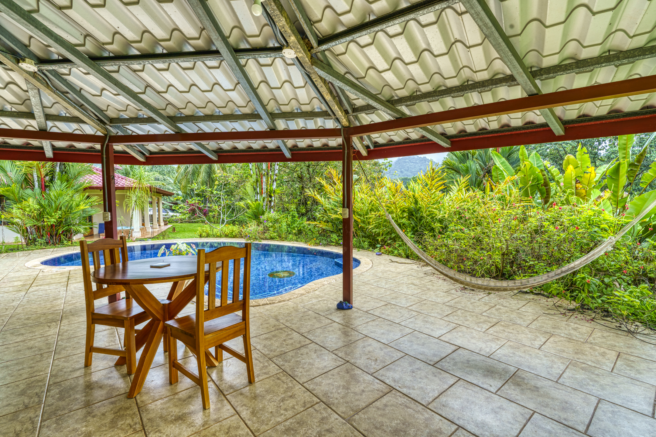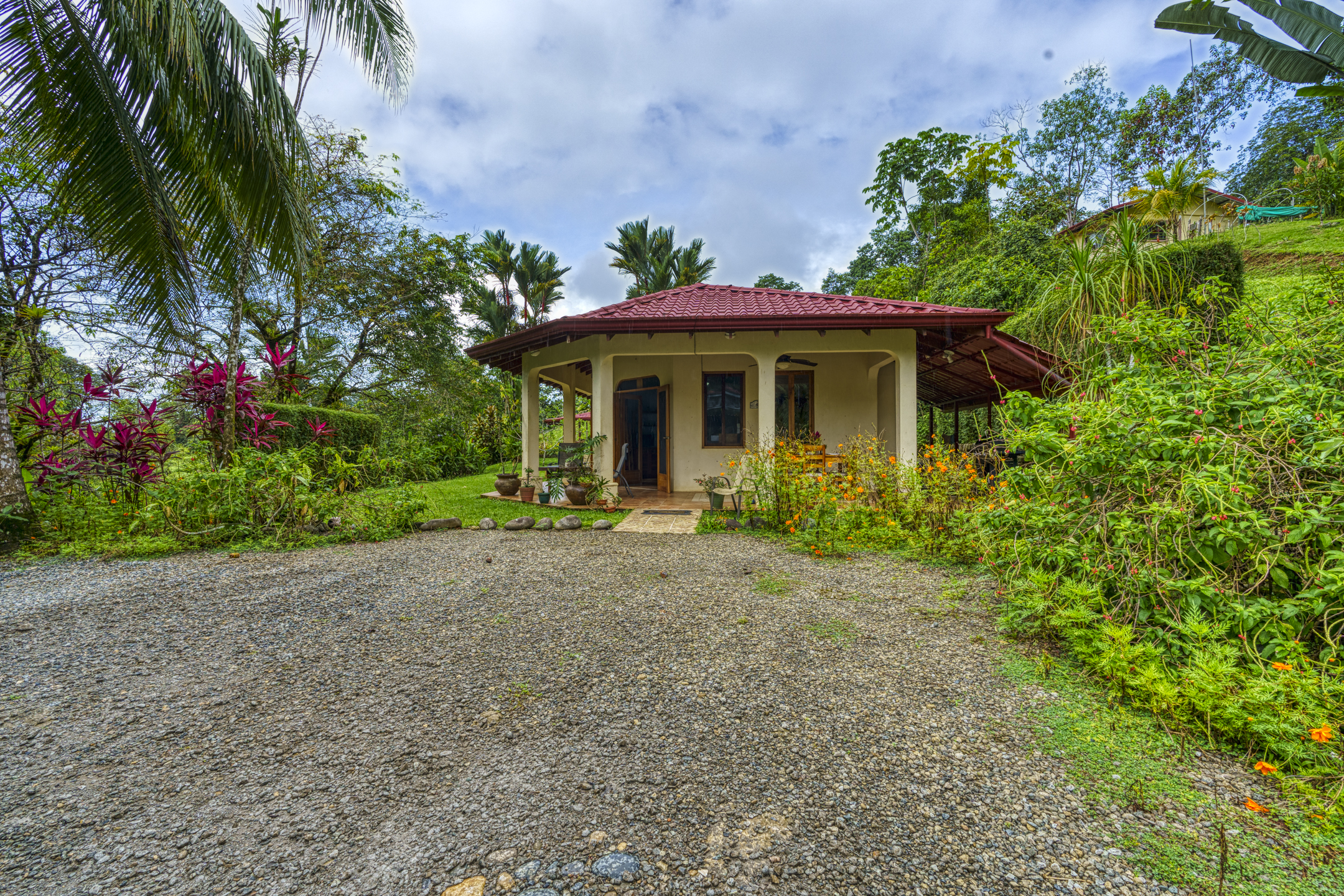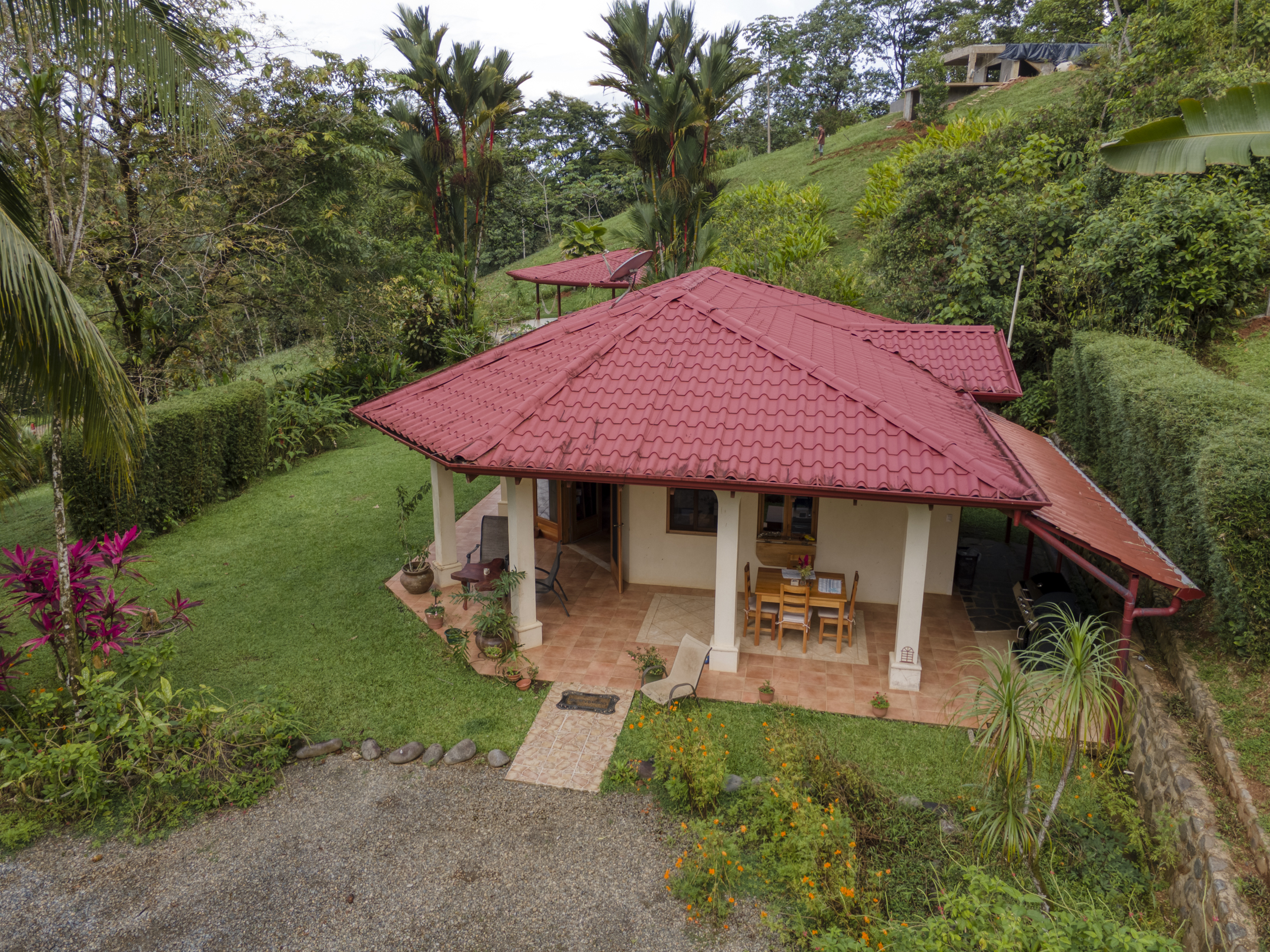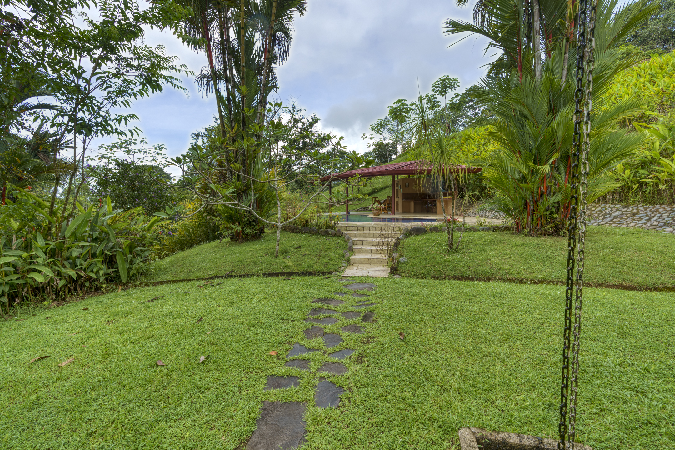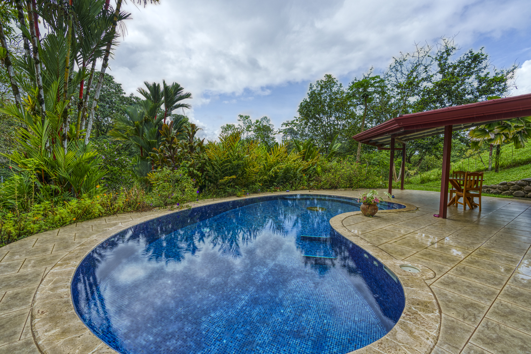 Fall in love with this 1bed, 1bath home with room to expand. This beautiful villa is located in a gated community, up the mountain in Ojochal. Owners will enjoy a spectacular jungle and mountain view that will make you smile each day! Property features a sparkling swimming pool, with a large patio and outdoor kitchen area - great for entertaining! Grounds are meticulously maintained and on it, you will find things such as water apples, guava, cinnamon, and more! Inside is open and spacious and features high wood ceilings, lots of windows for natural light and plenty of ceiling fans. The bedroom is very roomy and is air-conditioned. Enjoy breakfast out on your patio enjoying the wonderful sounds of the jungle & the majestic views!