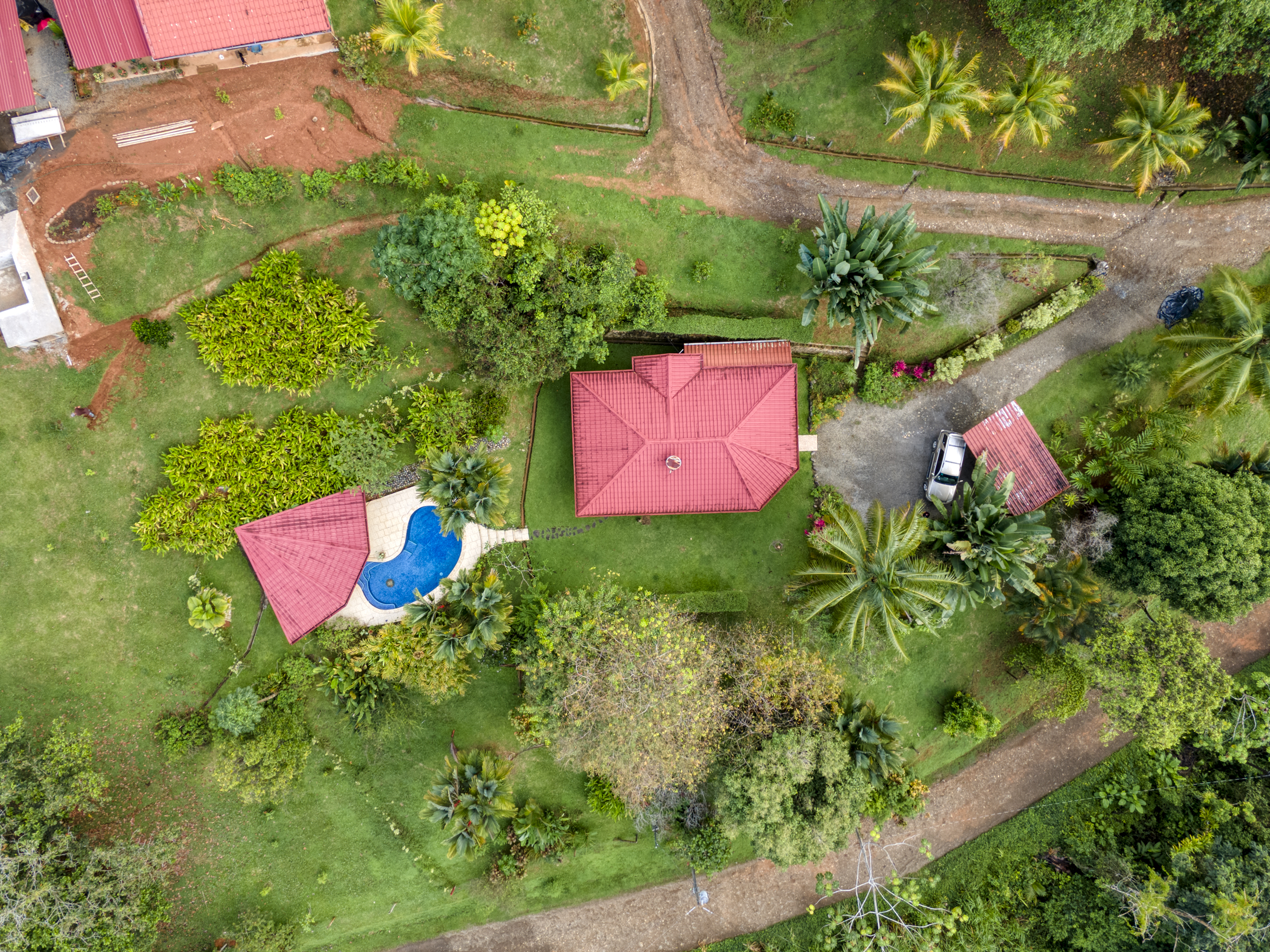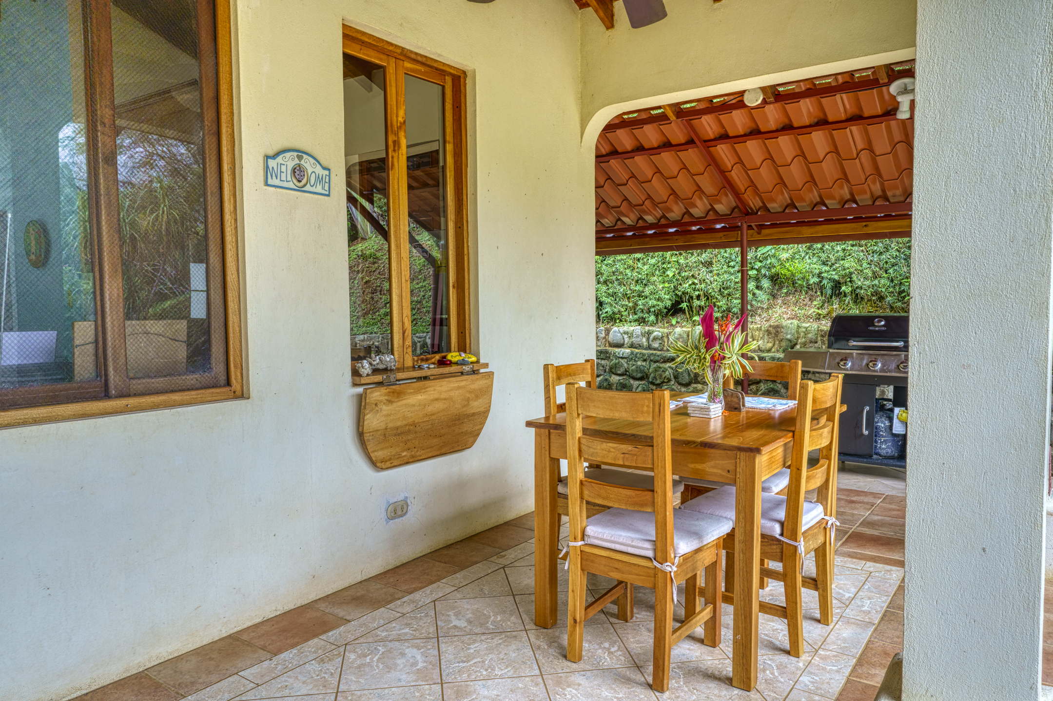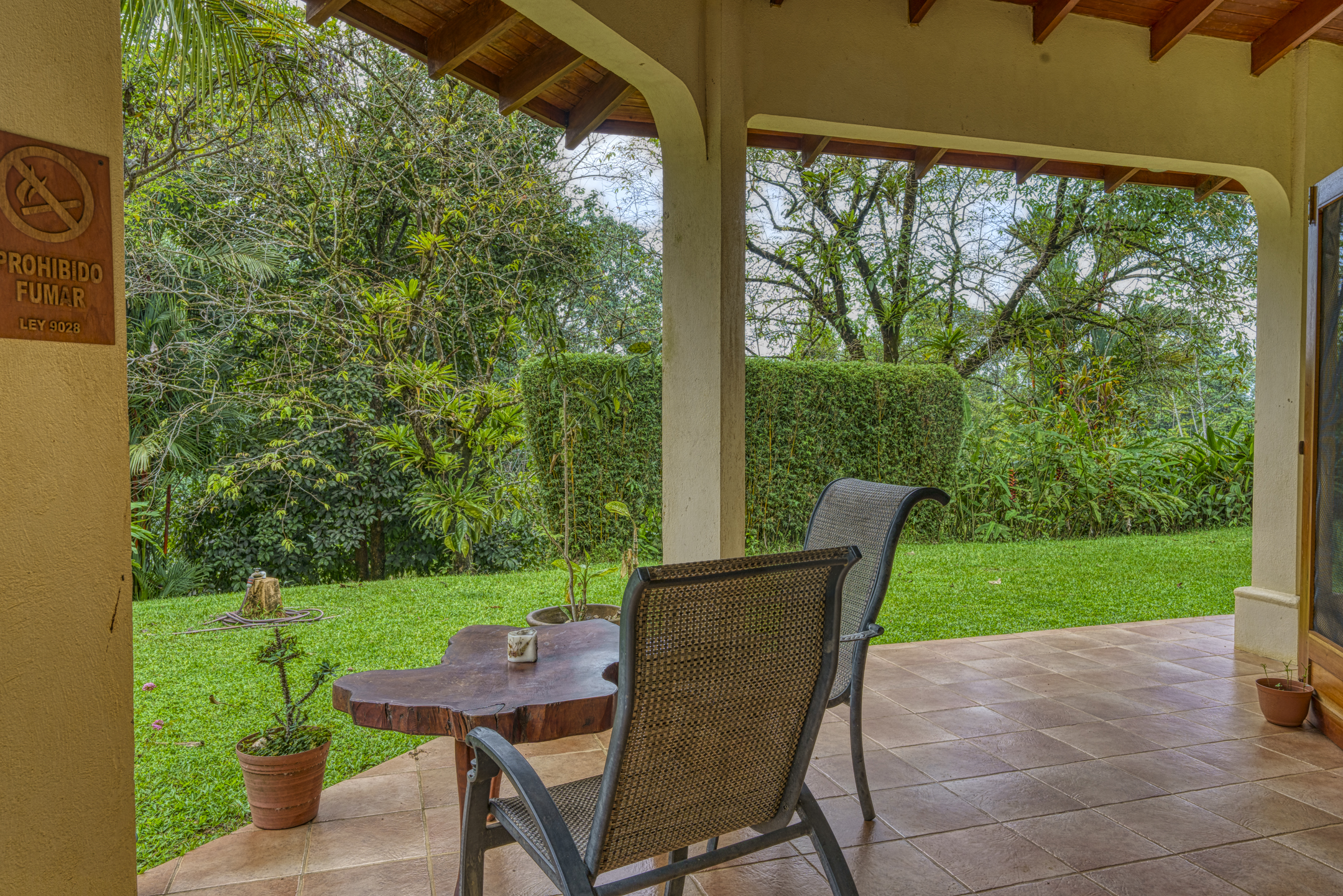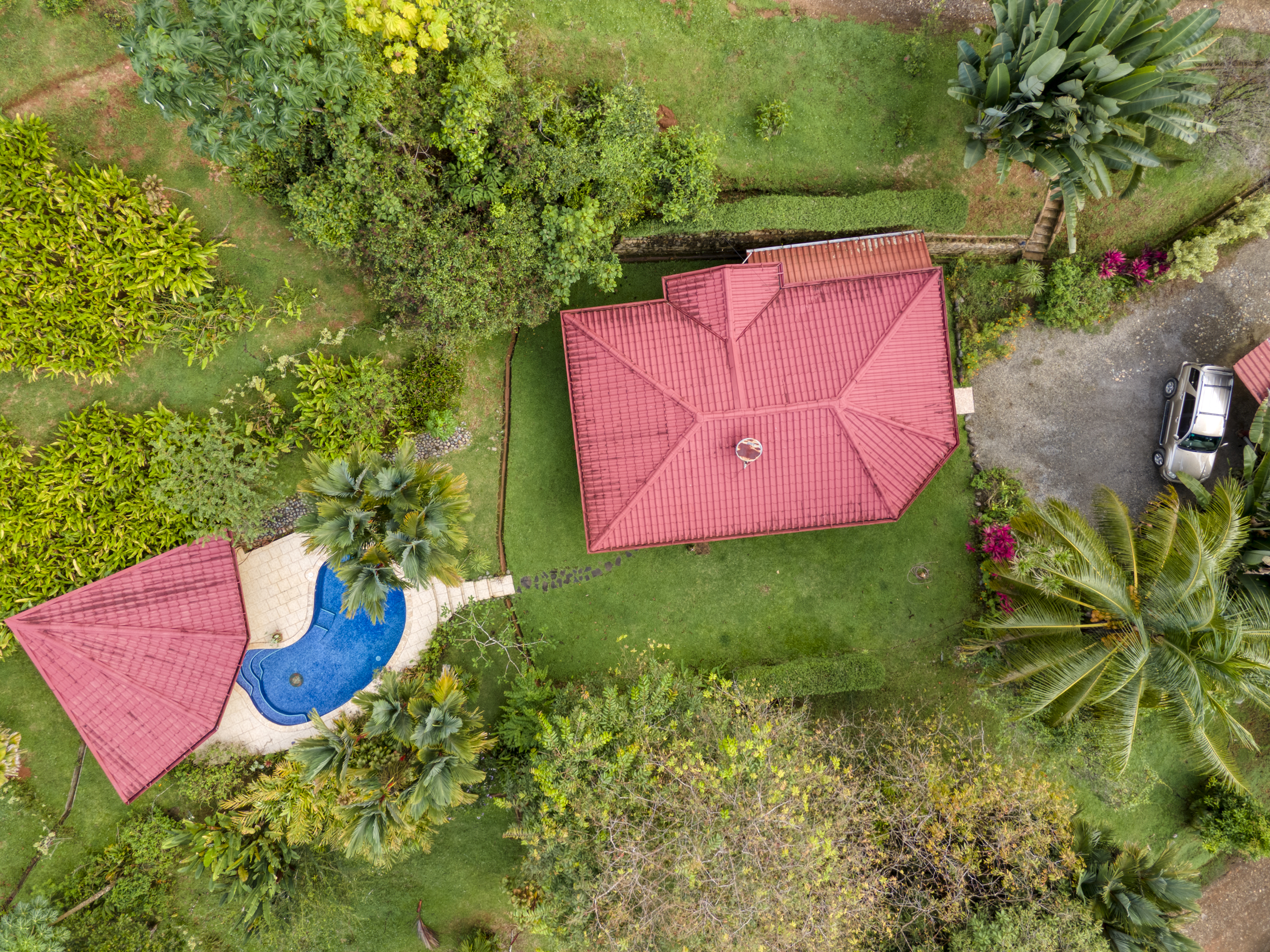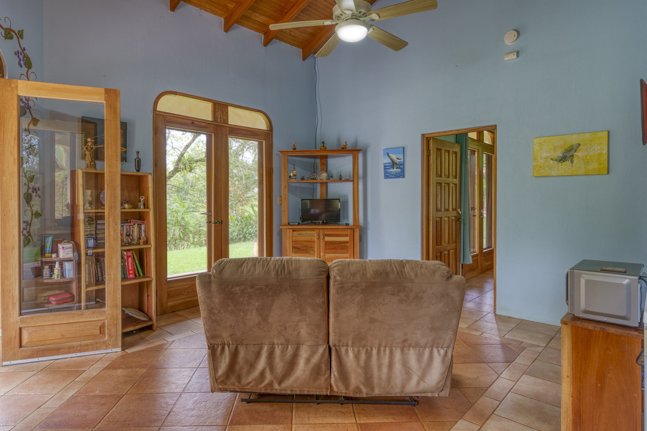 Fall in love with this 1bed, 1bath home with room to expand. This beautiful villa is located in a gated community, up the mountain in Ojochal. Owners will enjoy a spectacular jungle and mountain view that will make you smile each day! Property features a sparkling swimming pool, with a large patio and outdoor kitchen area - great for entertaining! Grounds are meticulously maintained and on it, you will find things such as water apples, guava, cinnamon, and more! Inside is open and spacious and features high wood ceilings, lots of windows for natural light and plenty of ceiling fans. The bedroom is very roomy and is air-conditioned. Enjoy breakfast out on your patio enjoying the wonderful sounds of the jungle & the majestic views!