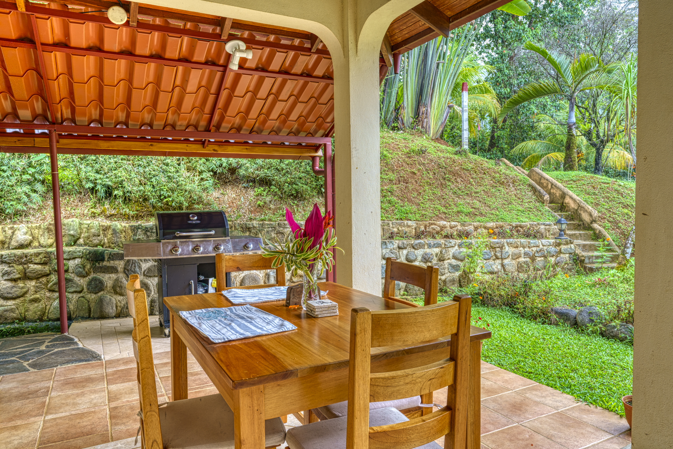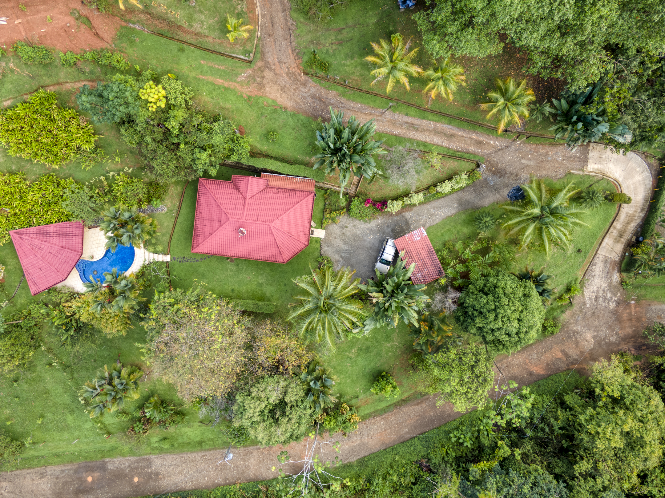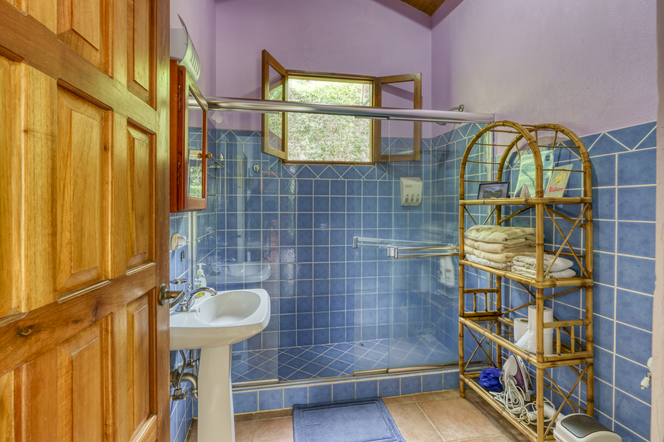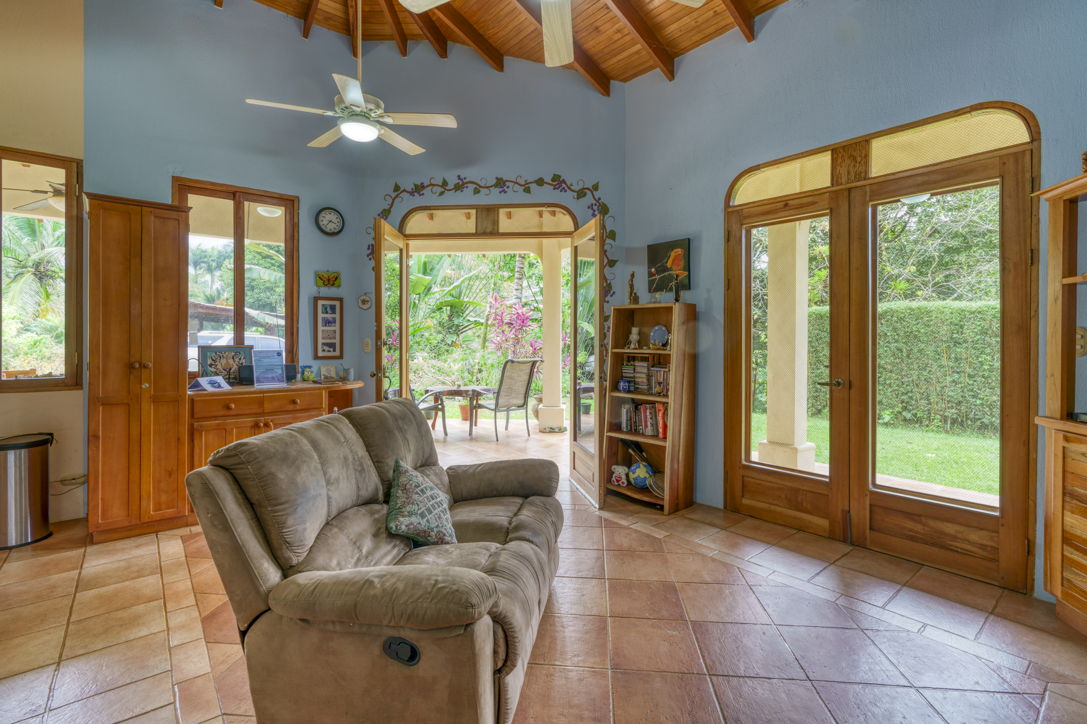 Fall in love with this 1bed, 1bath home with room to expand. This beautiful villa is located in a gated community, up the mountain in Ojochal. Owners will enjoy a spectacular jungle and mountain view that will make you smile each day! Property features a sparkling swimming pool, with a large patio and outdoor kitchen area - great for entertaining! Grounds are meticulously maintained and on it, you will find things such as water apples, guava, cinnamon, and more! Inside is open and spacious and features high wood ceilings, lots of windows for natural light and plenty of ceiling fans. The bedroom is very roomy and is air-conditioned. Enjoy breakfast out on your patio enjoying the wonderful sounds of the jungle & the majestic views!