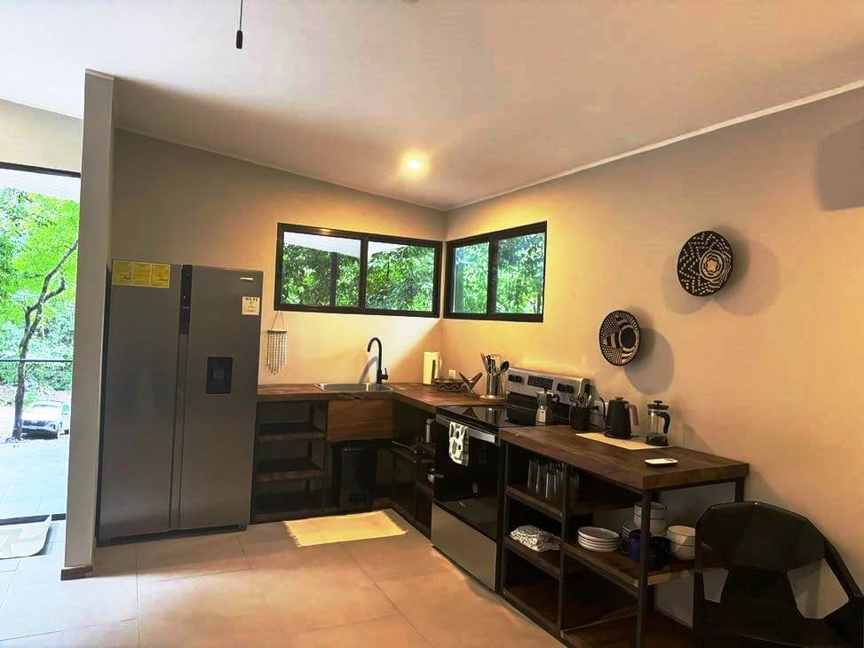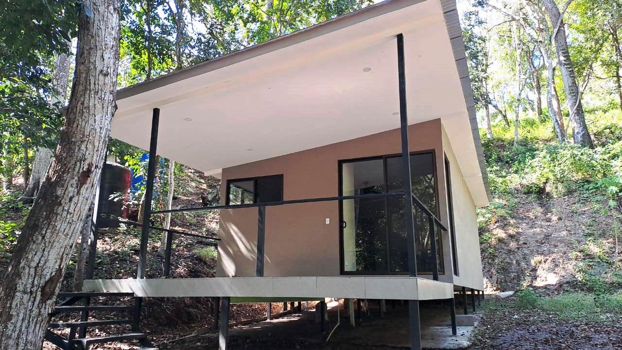 New, Cozy Beach House – Walk to Uncrowded, Sandy Beach – Super Low Price! This modest, well designed new home boasts a well-appointed kitchen and a comfortable living room, creating a warm and inviting atmosphere. The ample outside deck overlooks the large backyard, as yet not devleloped but large enough (almost ½ acre) for a pool, large garden or another small home. It’s the perfect spot to sip your morning coffee, unwind with a book, or enjoy evening sunsets. From the house it is a 5-minute walk to the uncrowded Pacific Ocean beach of Playa Organos, with gentle waves, soft sand beach and views of the offshore islands. All of this for the going price of a lot in this area, only $250,000