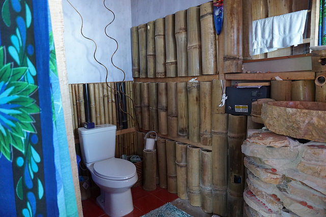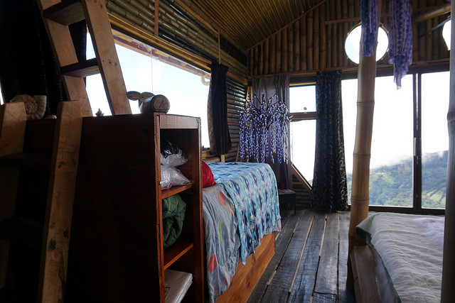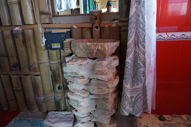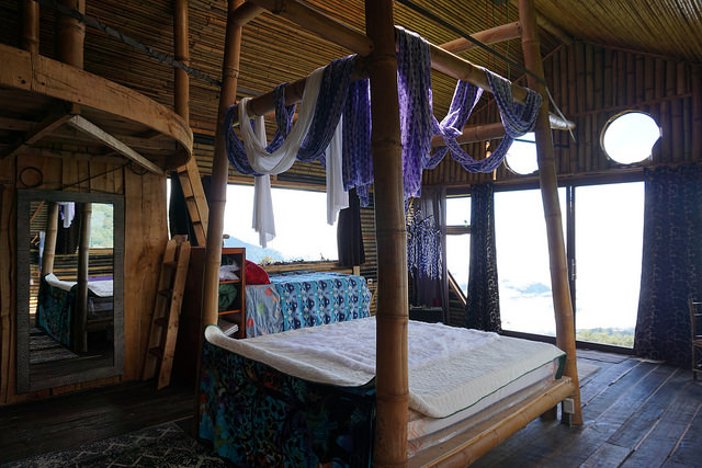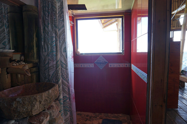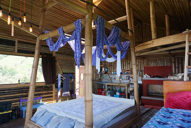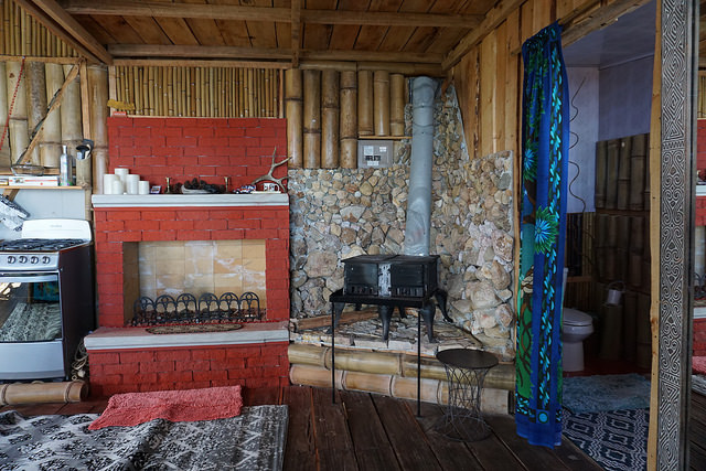 The cabin features a main king size bed with orthopedic mattress and a daybed couch along a beautiful window view and an upstairs loft. There is a beautiful stone bathroom with an exotic crystal rock Balinese sink and Italian tiles. The kitchen is fully equipped with gas stove and custom made wood stove.