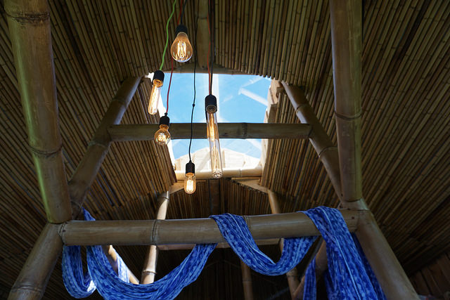 The charming forest cabin comes with a chimney and wood burning stove and an electric eco-heating device. There is a rare magnolia wood entry door and oak hardwood floors. Rare black and green bamboo cover the walls and ceiling throughout the house.