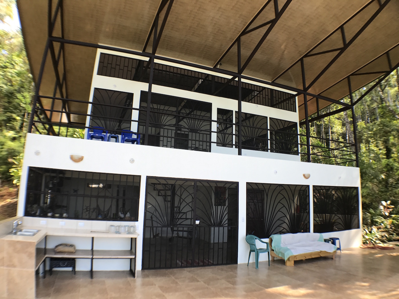 The uniquely designed security bars give the home a tropical look while providing security, the storage bodega is a large space which holds the refrigeration, on demand hot water heater and solar storage.