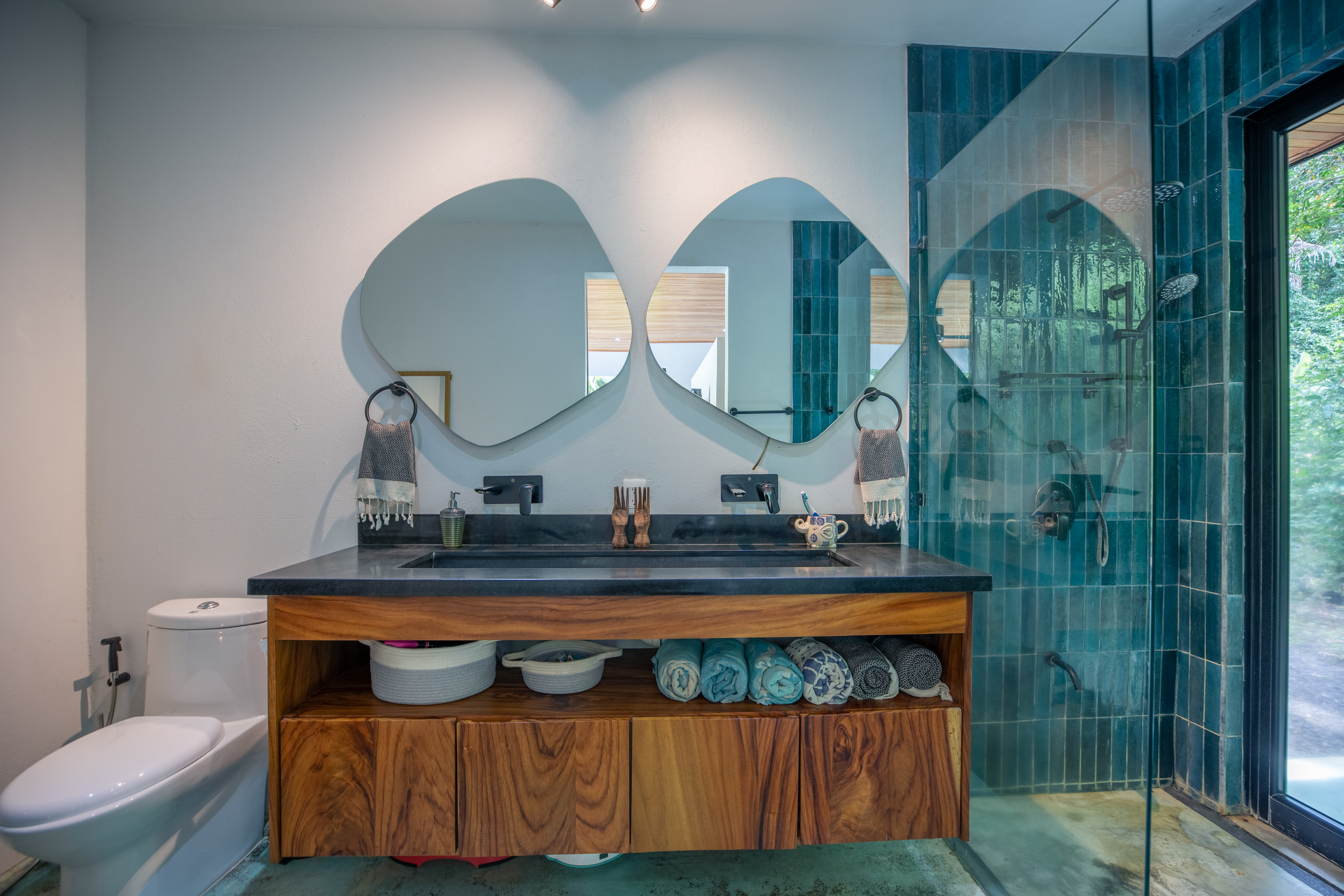 Tucked away in the peaceful residential enclave of Buena Vista, this gated 8,005 m² (2-acre) property offers the best of both worlds: total privacy and immersion in nature, with quick access to restaurants, shops, and vibrant beach life. Built in 2023, Villa Shanti was designed to blend modern luxury with the lush beauty of Costa Rica. With over 375 m² (4,000+ sq ft) of thoughtfully designed living space, the estate includes a main villa and a two-bedroom guest house, and a three-bedroom rental unit together offering 10 bedrooms, five bathrooms, and two outdoor showers. Whether you’re seeking a spacious family home, a multi-generational compound, or a high-performing income property, Villa Shanti delivers.