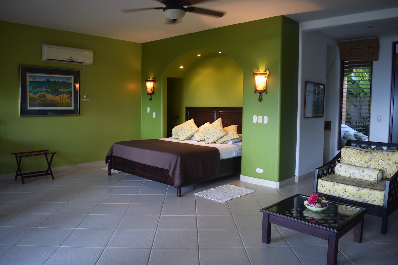 To the South of the Main Villa you discover the two Guest Villas. Each Villa has four bedrooms, two 700 sq ft junior suites on the ground level and two 1,400 sq ft master suites with balconies on the second level. The Ocean view Guest Villa rests at the front of the property overlooking the pool area, with views of the ocean sunsets and rainforest views from all rooms, it is easily accessed from the Main Villa. The jungle view Guest Villa rests back from the Main Villa, privately surrounded by the manicured gardens and primary rainforest. All rooms are equipped with air conditioning and ceiling fans, finished with porcelain tile, stone sinks, glass tiled showers and tropical detailing.