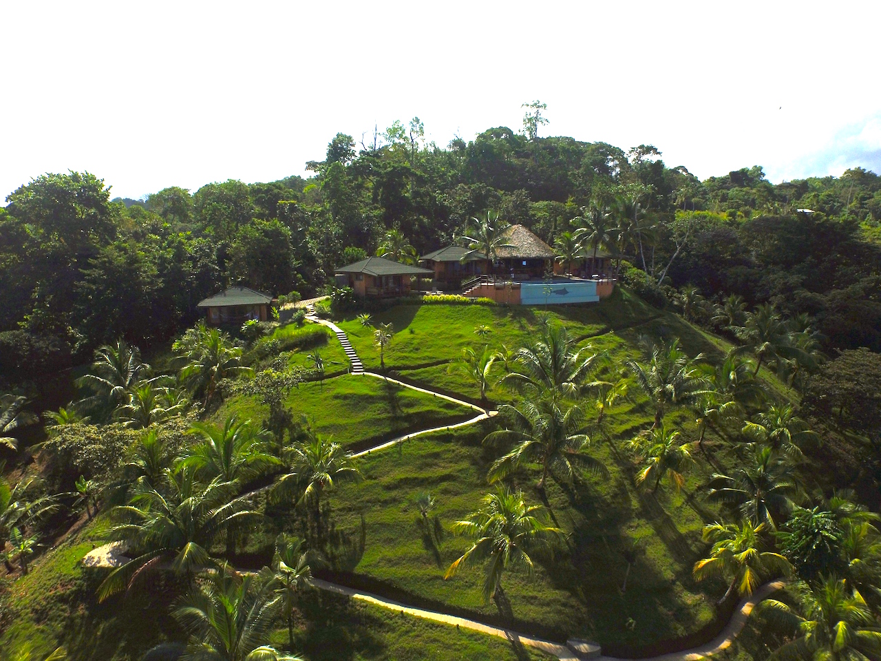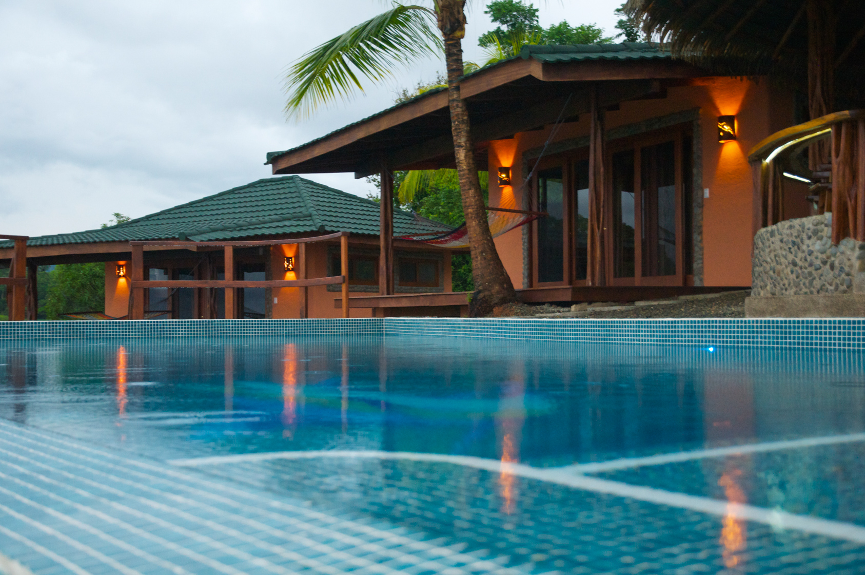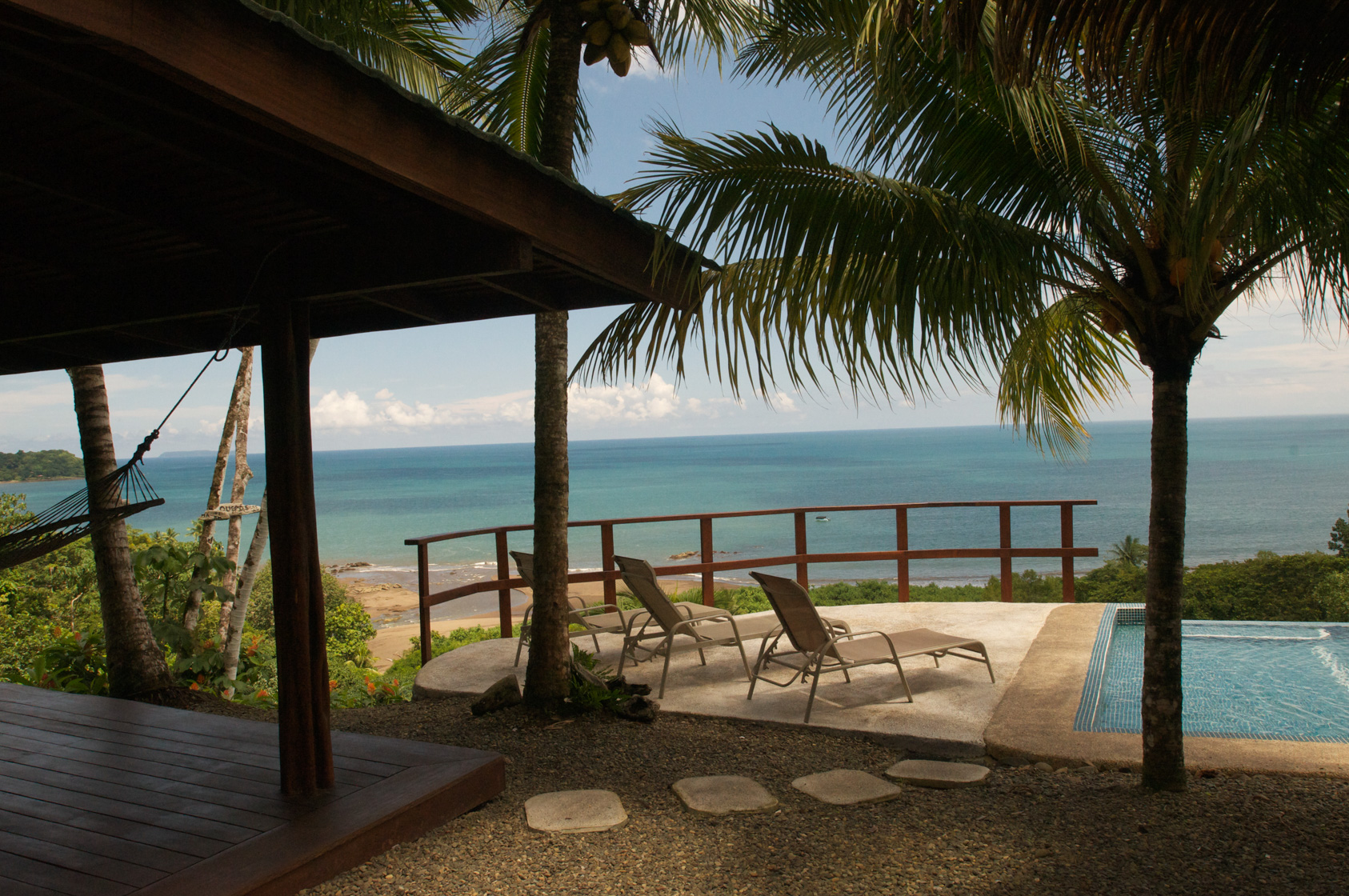 Built on three levels of a hillside, the top level features a “palapa” with a guest bar, restaurant and infinity edge pool, as well as four exclusive deluxe cabins. Each cabin offers photogenic views of Drake Bay’s deep blue ocean and constantly changing skies, and is furnished with high quality bedding, ultra soft towels, outdoor furniture and hammocks so your guests can deeply relax inside or out. The cabins are just a few steps from a pool designed to connect you visually right to the ocean. The effect is profound.