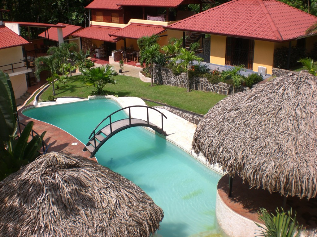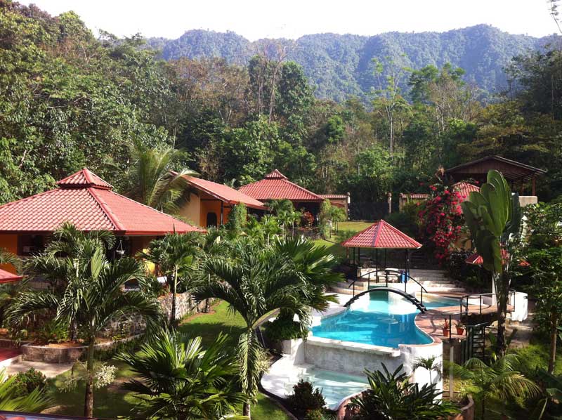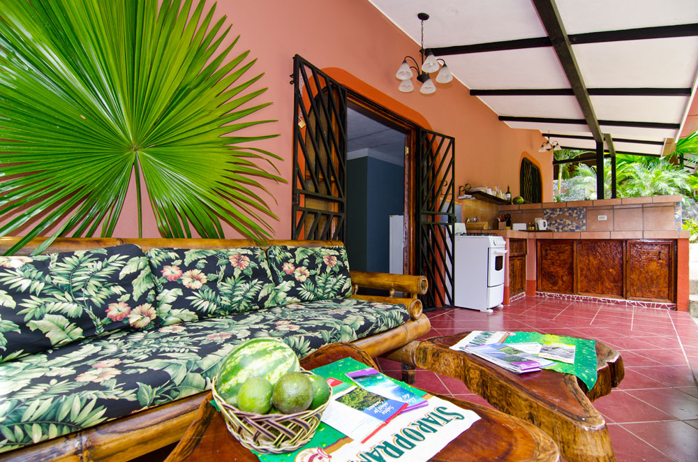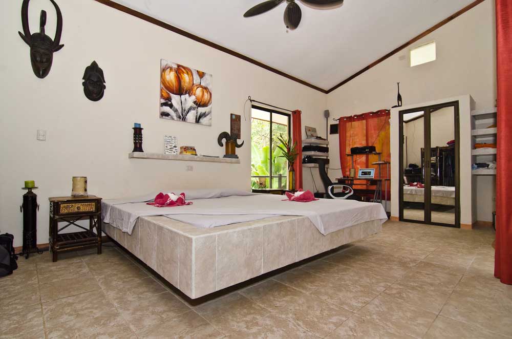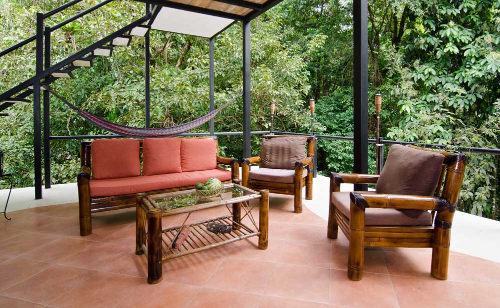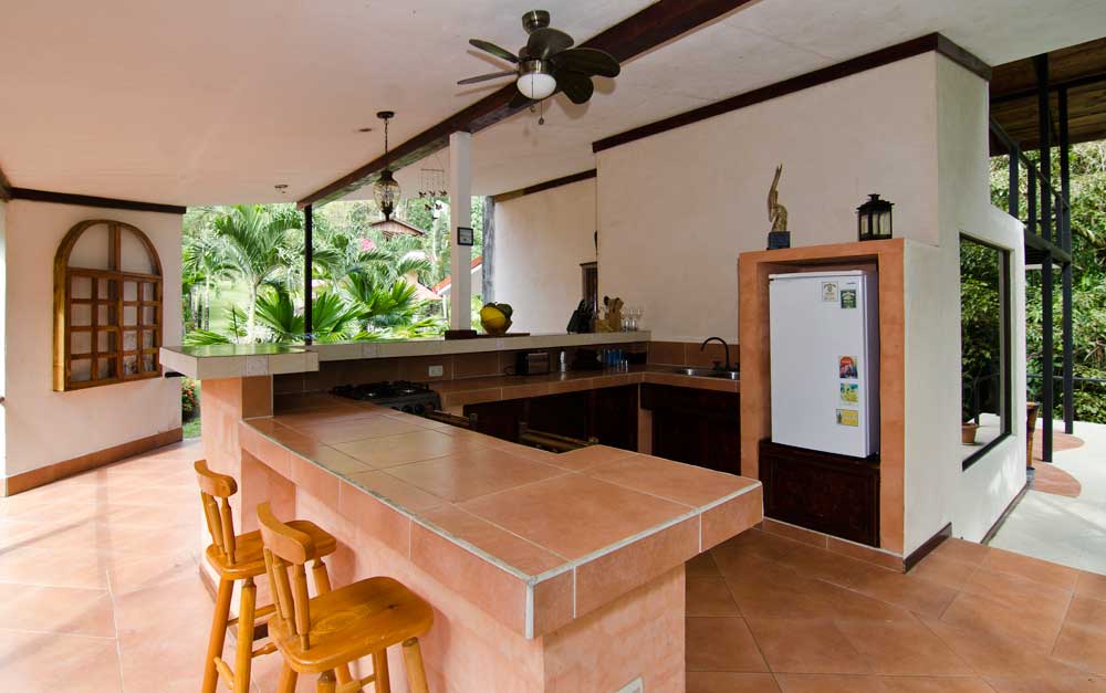 The property is in a quiet location with fabulous jungle and mountain views with a year-round river flowing through as well. There is an irrigated 2 acre garden & orchard area with a creek running through it. Guests may pick fresh fruits and ingredients such as; 4 different types of bananas and plantains, lemons, avocado, mango, lychee, berry bushes, lemons and oranges, soursop, hot peppers, cacao plus many decorative plants such as bamboo and avecilla. This is a very tranquil property.