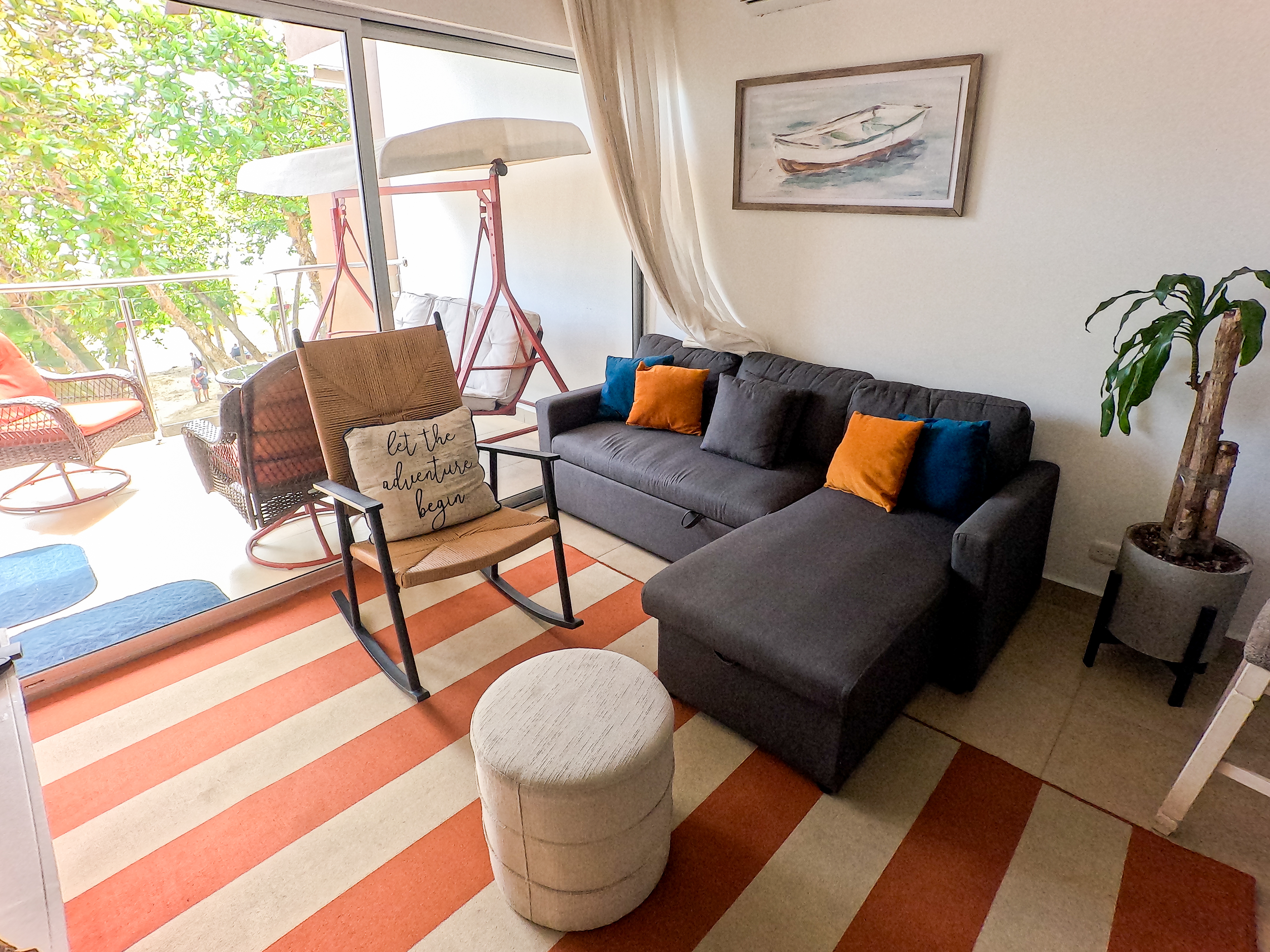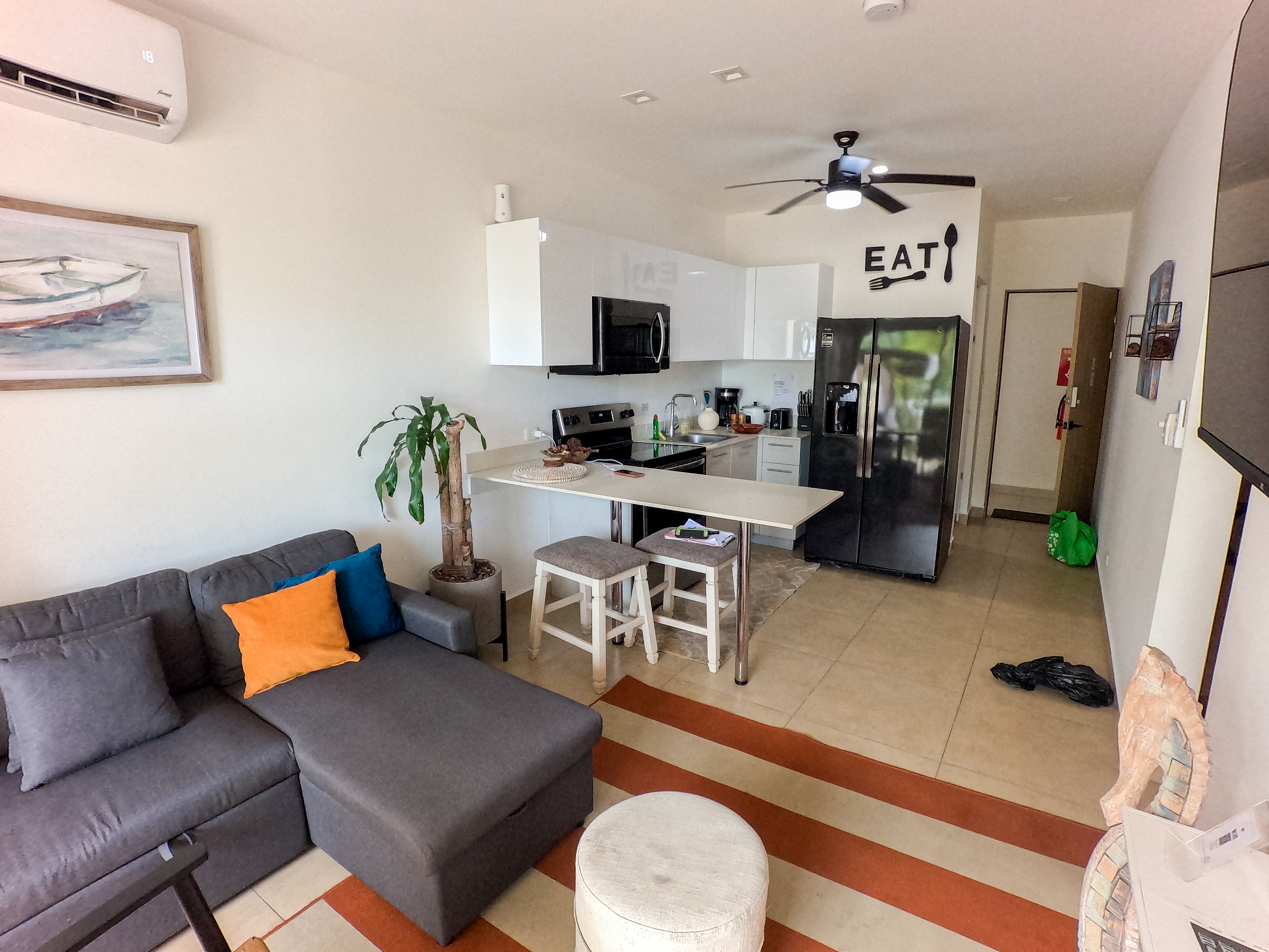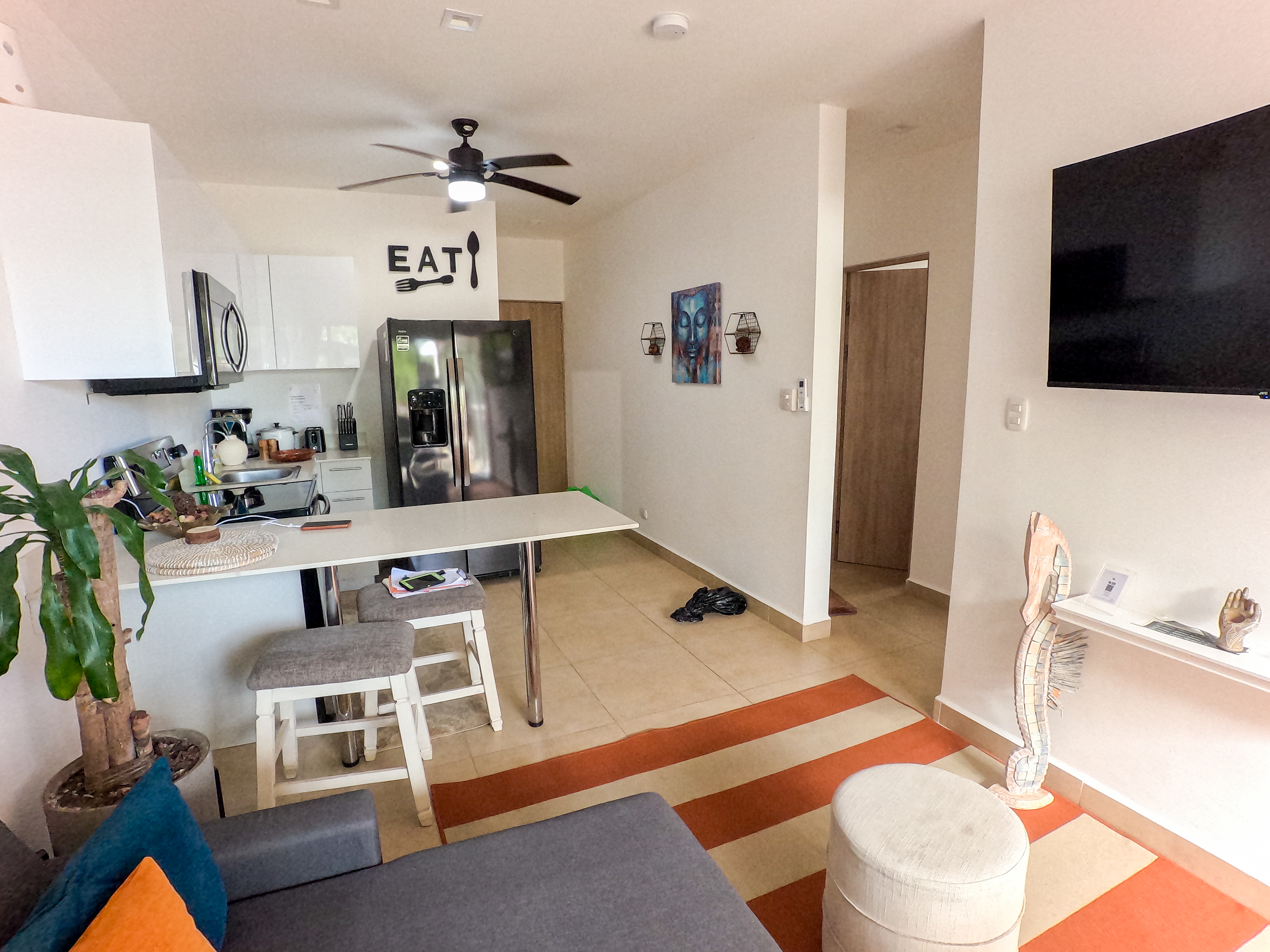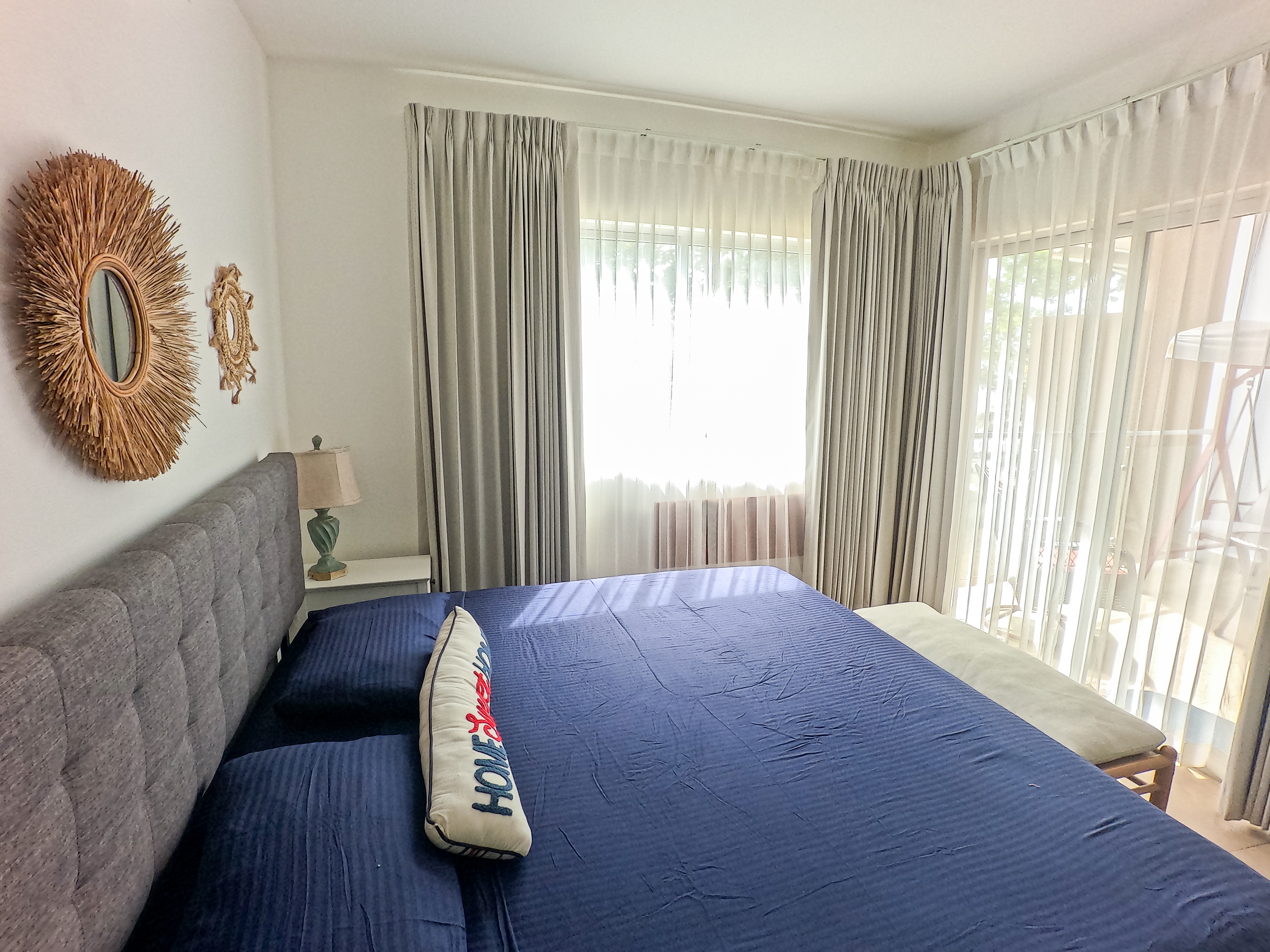 ✔ Smart Features – Touchpad mirrors in bathrooms for effortless makeup and sunscreen application, double curtains for restful sleep, and an electronic keypad entry for enhanced security. Smart flat screen TV’s in both living room and master bedroom, plus high speed cabled internet.