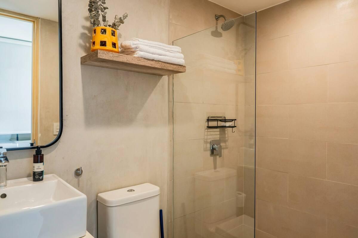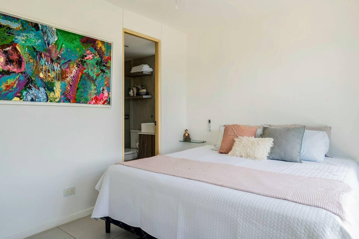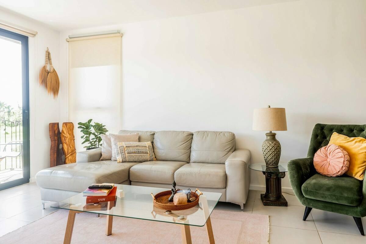 Prime Location: Situated on the fourth floor with private rooftop access, shared exclusively with other fourth-floor residents. Spacious Living: With 90 square meters of space, the apartment offers 2 bedrooms and 2 bathrooms, each with its own balcony. Breathtaking Views: Enjoy stunning lake views from your balcony, creating a serene and picturesque environment. Modern Comforts: Equipped with new air conditioning units to ensure the perfect climate year-round. Top-Notch Amenities: Relax and stay active with access to a pool, BBQ area, lakes, walking trails, and private beach access. Security and Convenience: 24/7 security, a laundry area, a spacious closet, 1 parking space, and a storage unit for your convenience.