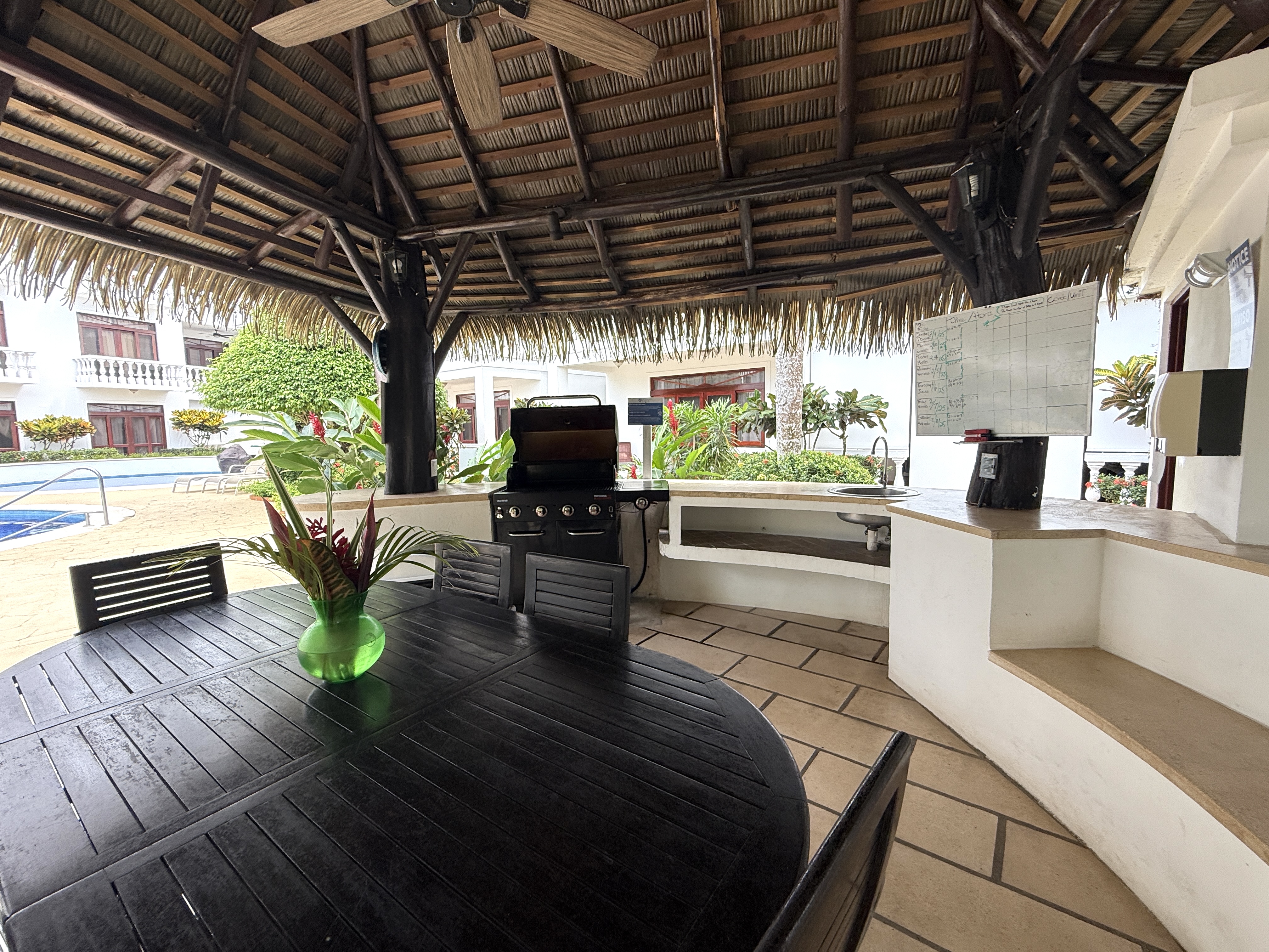 The complex features multiple swimming pools, including oceanfront options, a barbecue rancho, and beautifully landscaped gardens. Residents and guests enjoy a secure, gated environment with 24-hour security, ensuring a relaxing and worry-free stay.