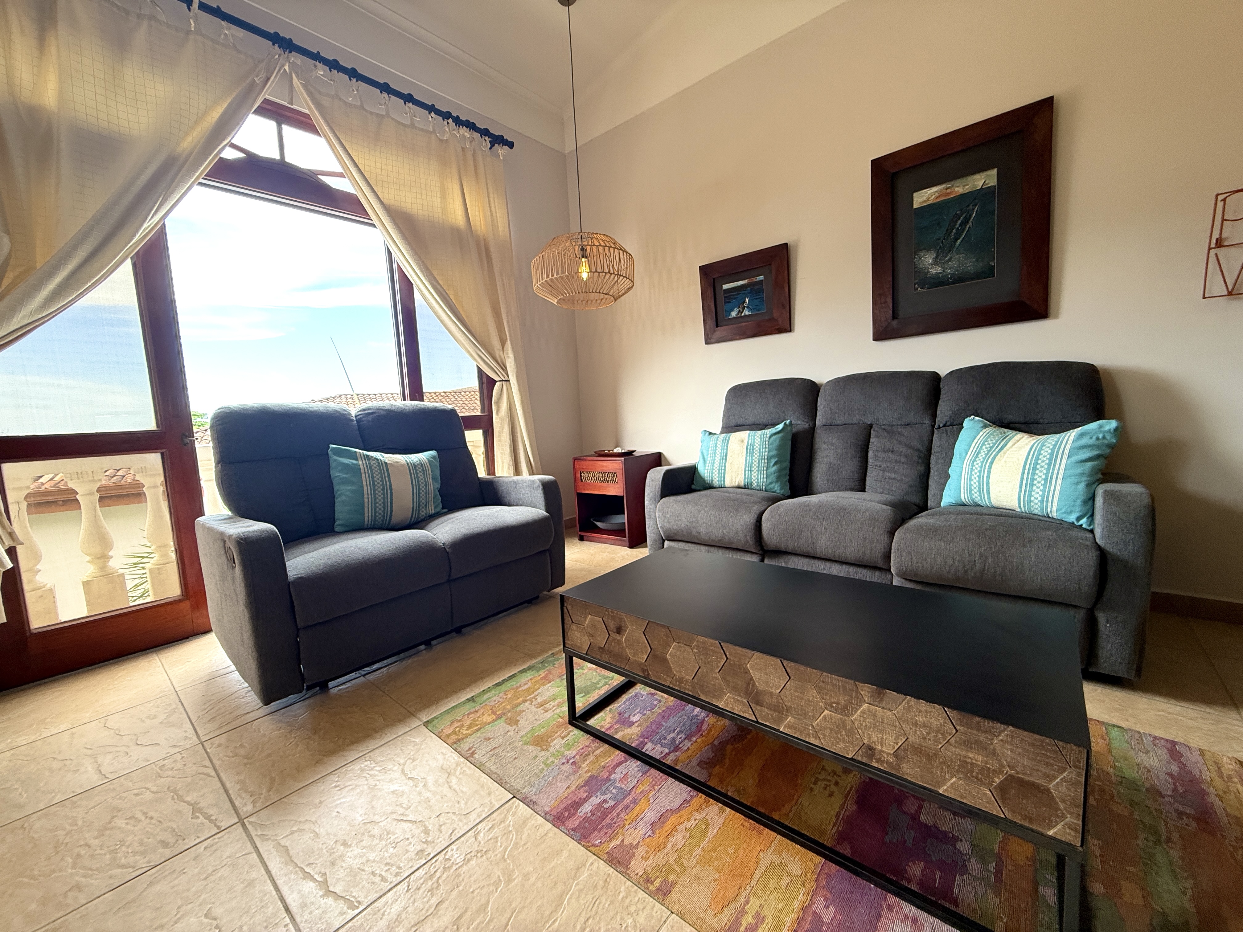 La Paloma Blanca is a stunning beachfront condominium complex located on the peaceful south end of Jacó Beach, Costa Rica. Offering a perfect mix of luxury and convenience, this community provides direct access to the beach and breathtaking ocean views. This top-floor unit features vaulted ceilings and ocean views.