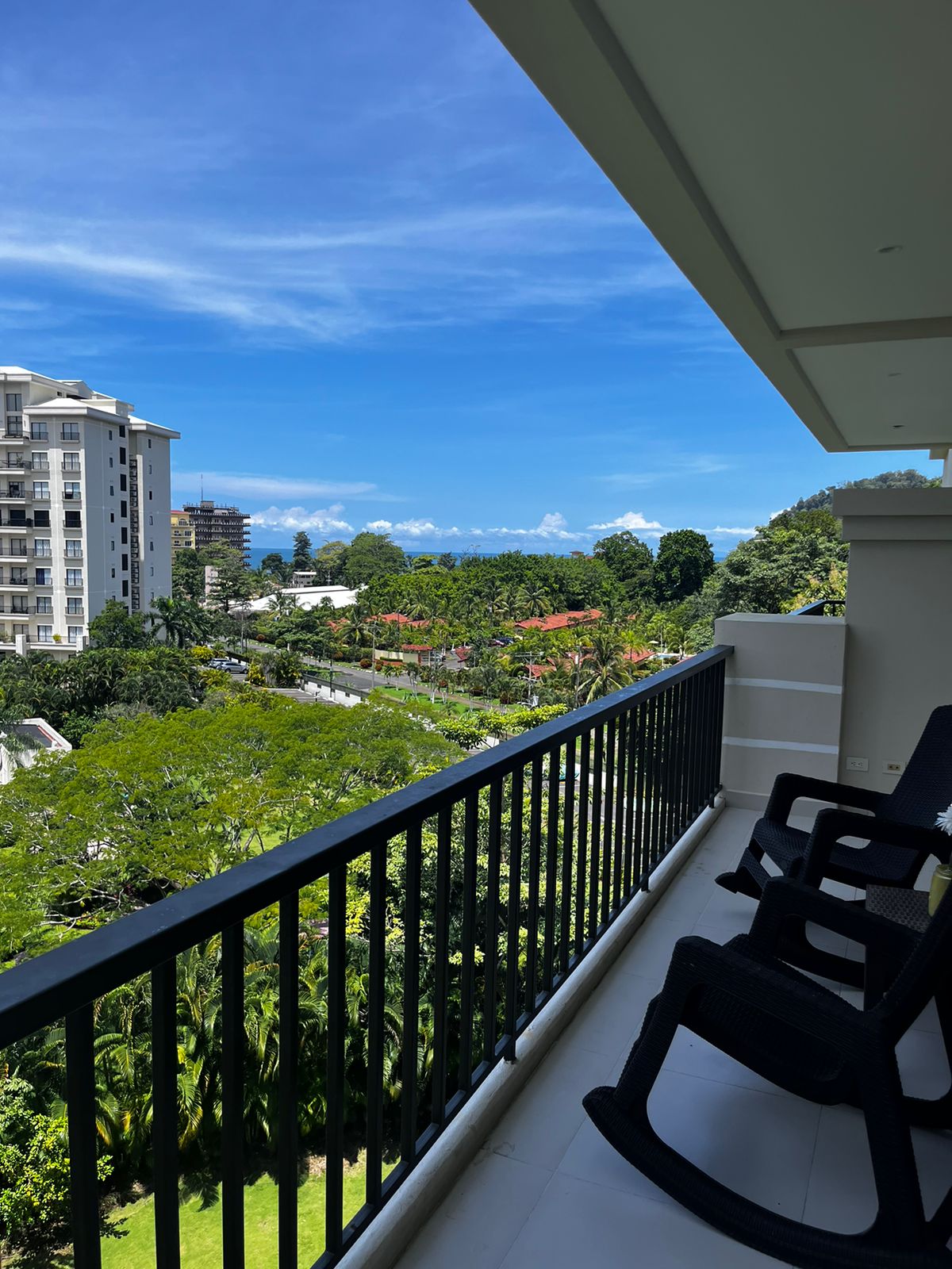 Discover the perfect blend of comfort, style, and convenience in this fully remodeled 2-bedroom, 2-bath condo located in the sought-after Jaco Bay community. Perched on the 6th floor, this residence offers an ideal vantage point—not too high, but high enough to enjoy colorful sunsets, lush greenery, and even a peek of the ocean.
