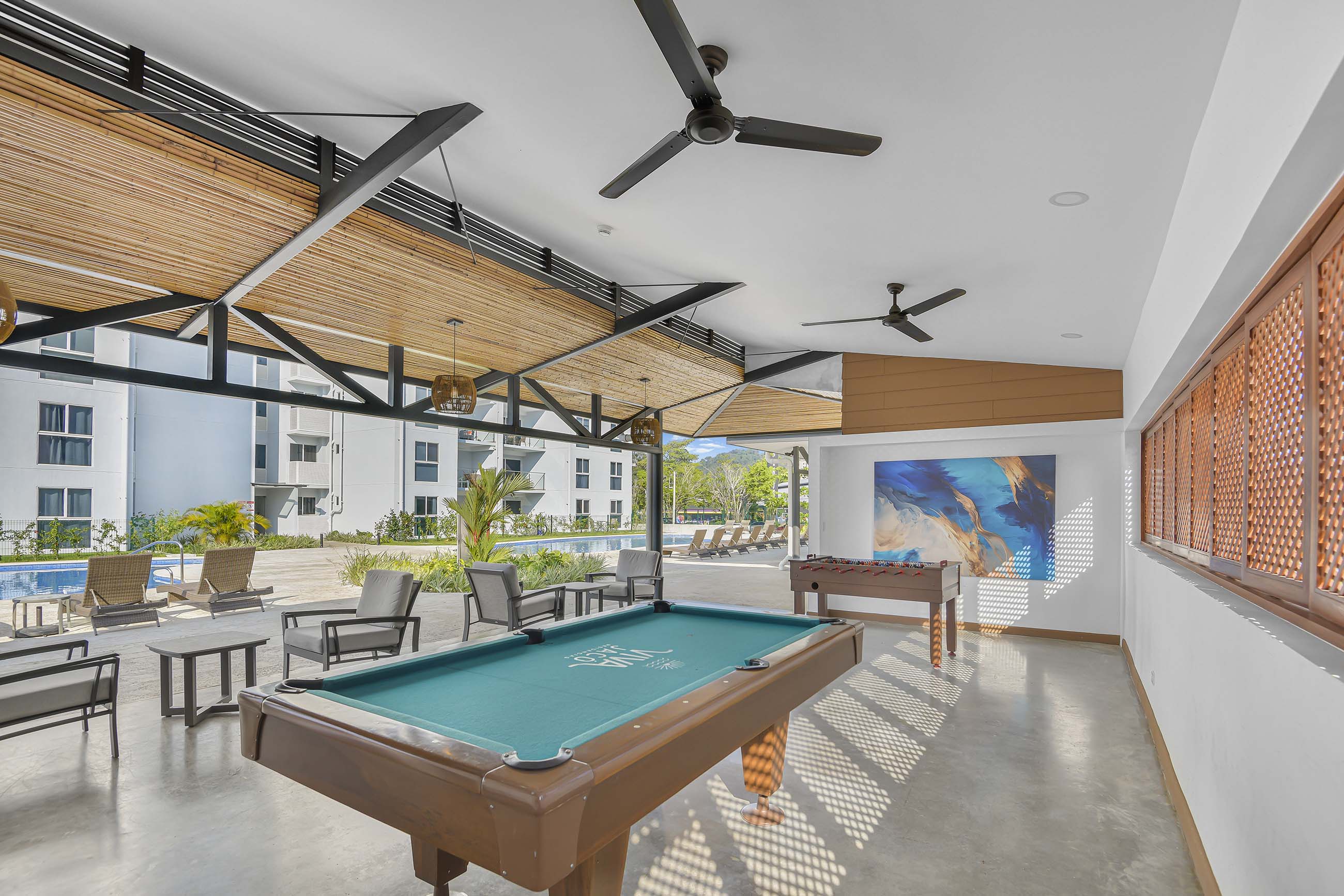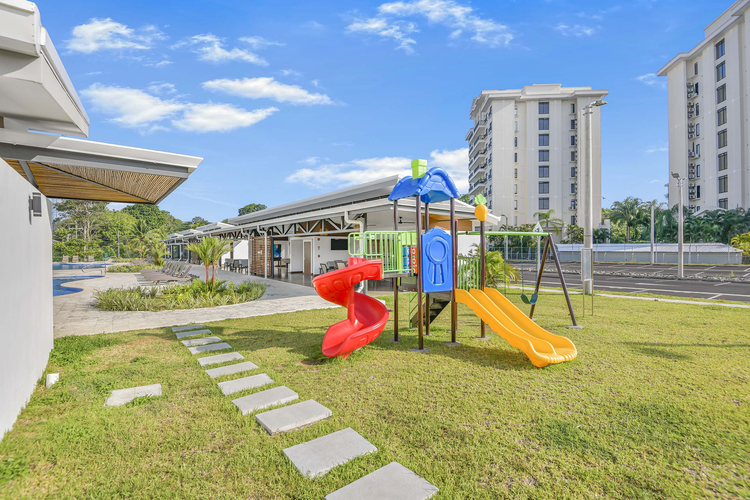 Community Amenities Viva Jacó is designed to feel like a resort you actually live in, with thoughtful amenities for every lifestyle: - Resort-style pool, lap pool, and children’s pool - Fully equipped gym and open-air yoga deck - Co-working lounge for remote professionals - Clubhouse and game room - Basketball court and children’s playground - Dedicated dog park - Two outdoor BBQ areas