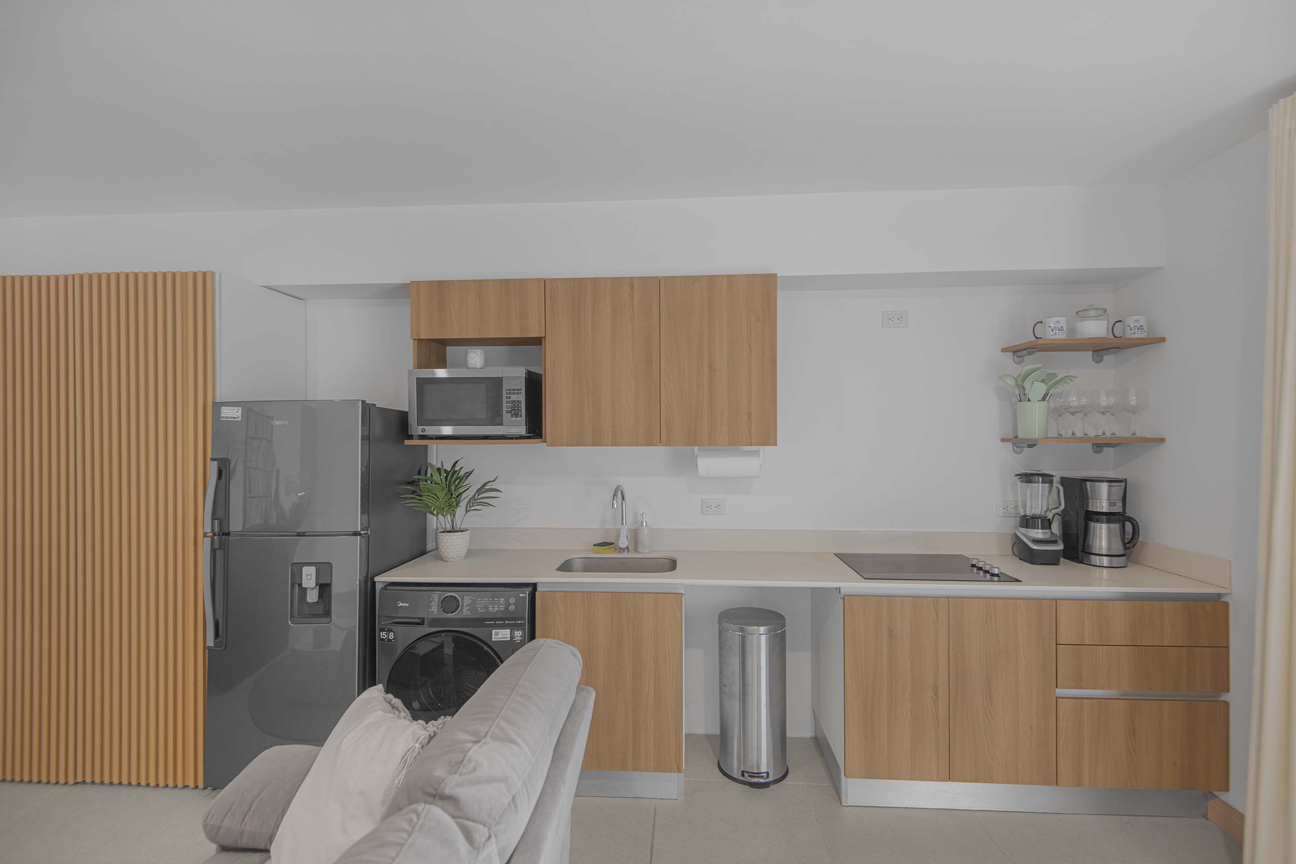 Located just one block from the beach and directly on Jacó’s main strip, you can walk to restaurants, cafés, grocery stores, and nightlife while still enjoying a quiet retreat inside the community.