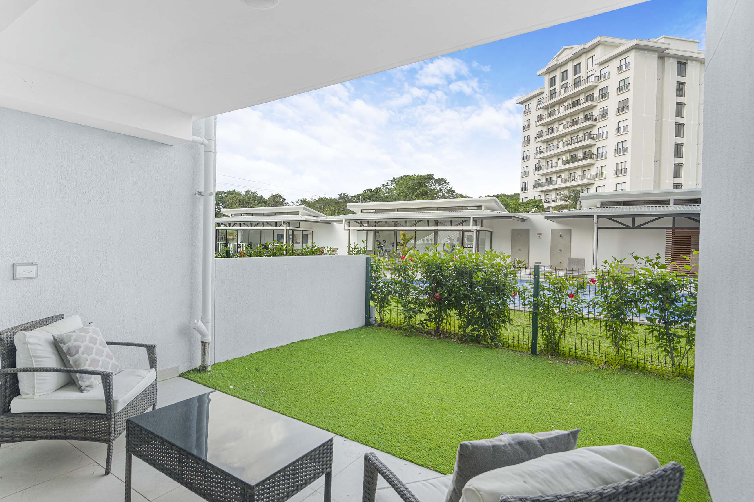 One of the standout features is the private, gated patio with turf area that opens directly to the pool. It’s perfect for kids, pets, or simply enjoying your morning coffee outdoors with privacy that upper-floor units can’t offer.