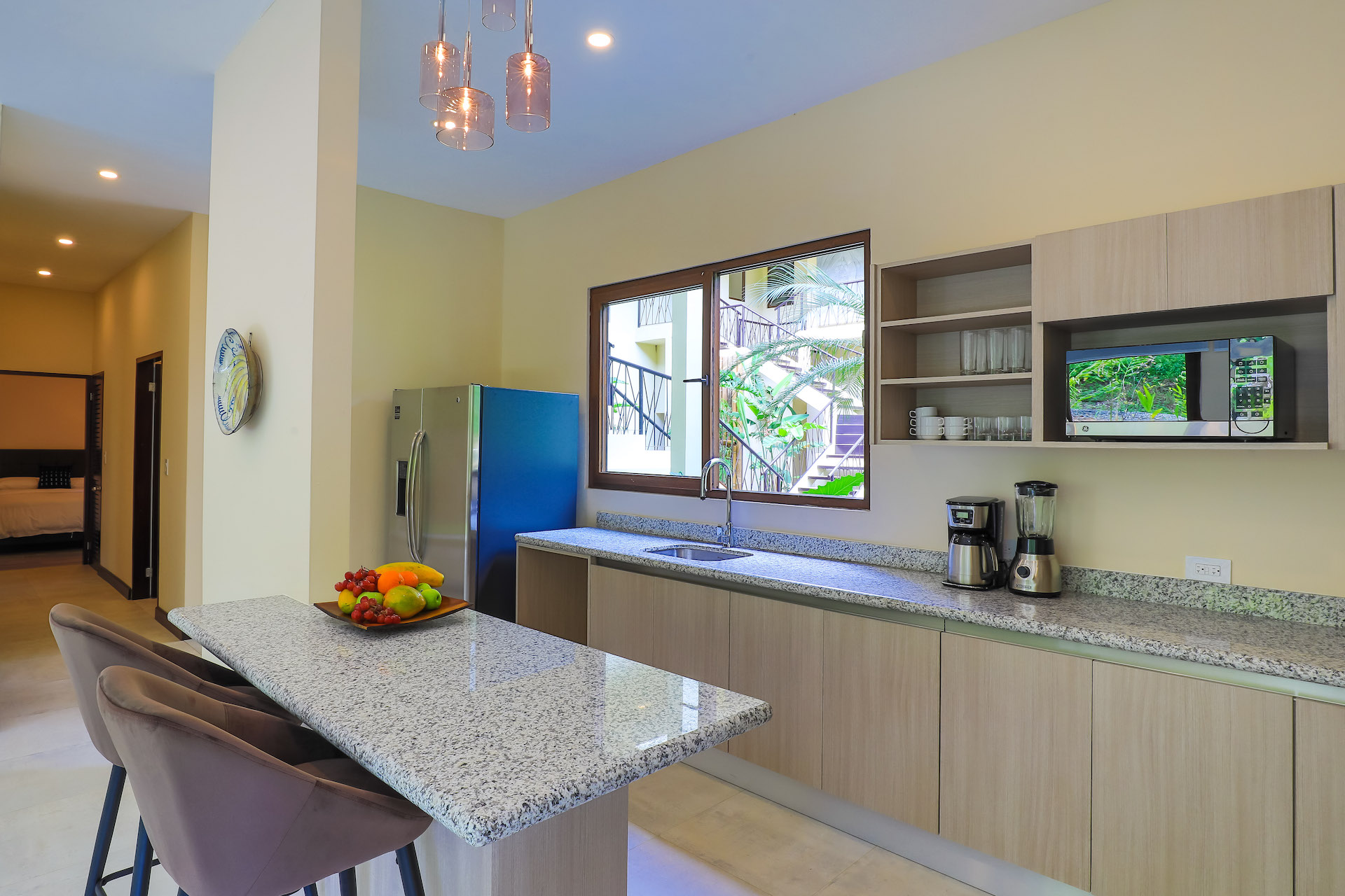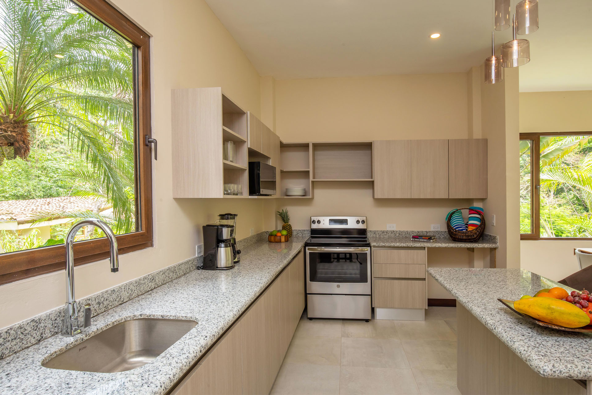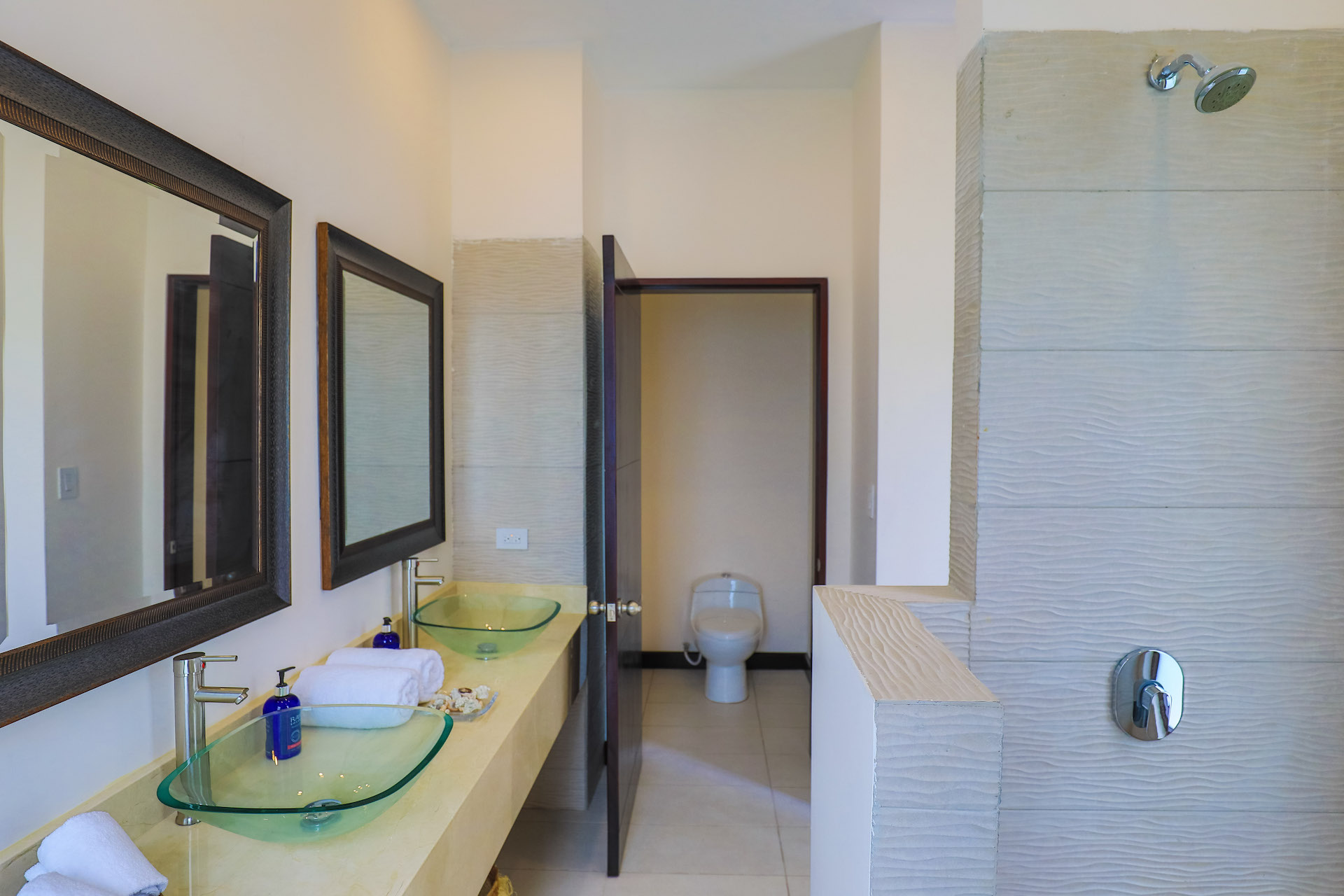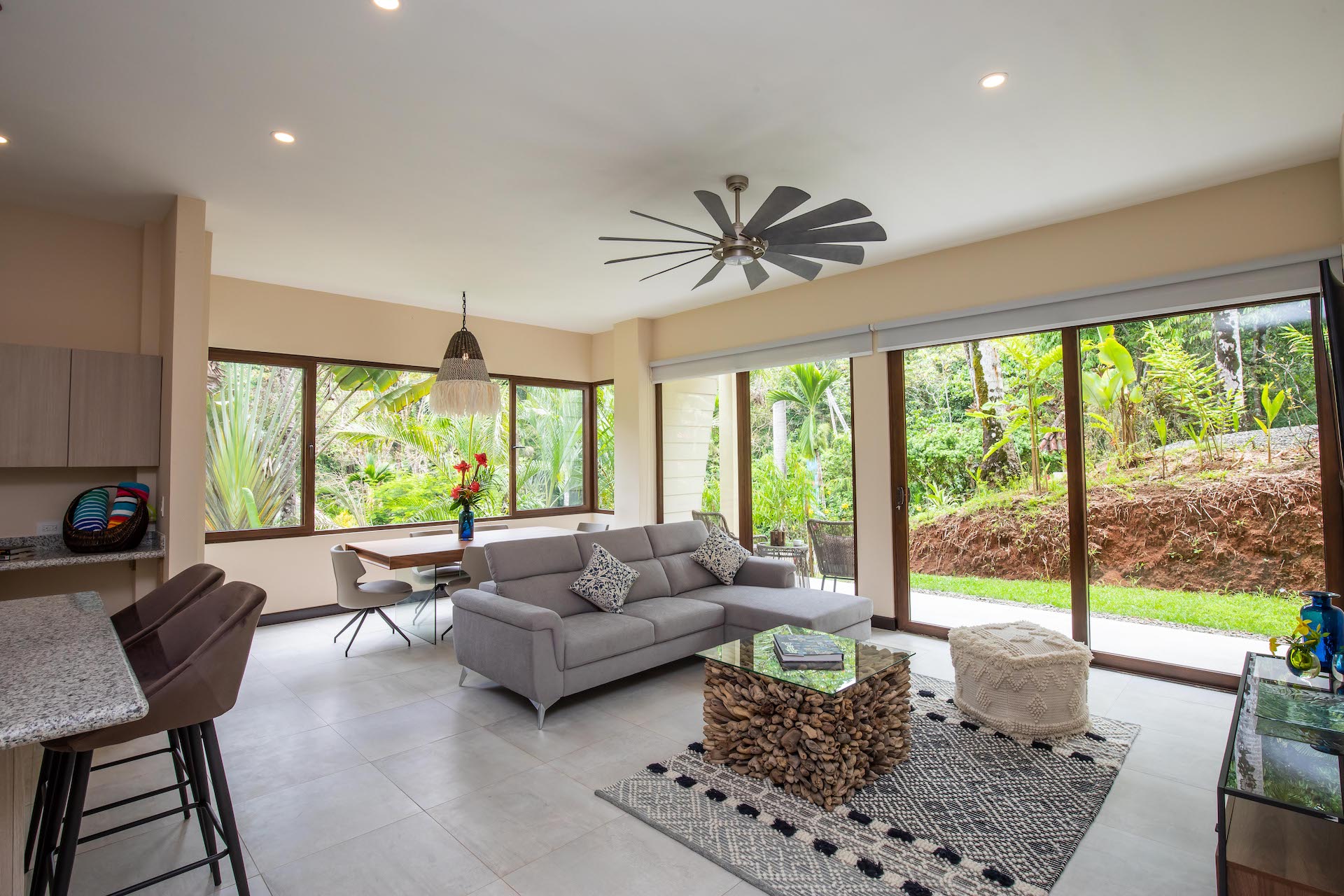 The Luxury Residences are located in the heart of Manuel Antonio in a quiet valley surrounded by nature and within one of the most exclusive communities in the area. These newly constructed and luxurious villas are perched adjacent the rainforest and Manuel Antonio Monkey Corridor. The new condo-villas offer 2 & 3 Bedroom floorplans, with one level living, all offering pristine jungle, pool, and/or creek views. Each condo has huge curved balconies, and floor-to-ceiling sliding glass doors to let the natural light and surrounding beauty flow into custom designed interiors. Gourmet kitchens open to spacious living areas and vast terraces.