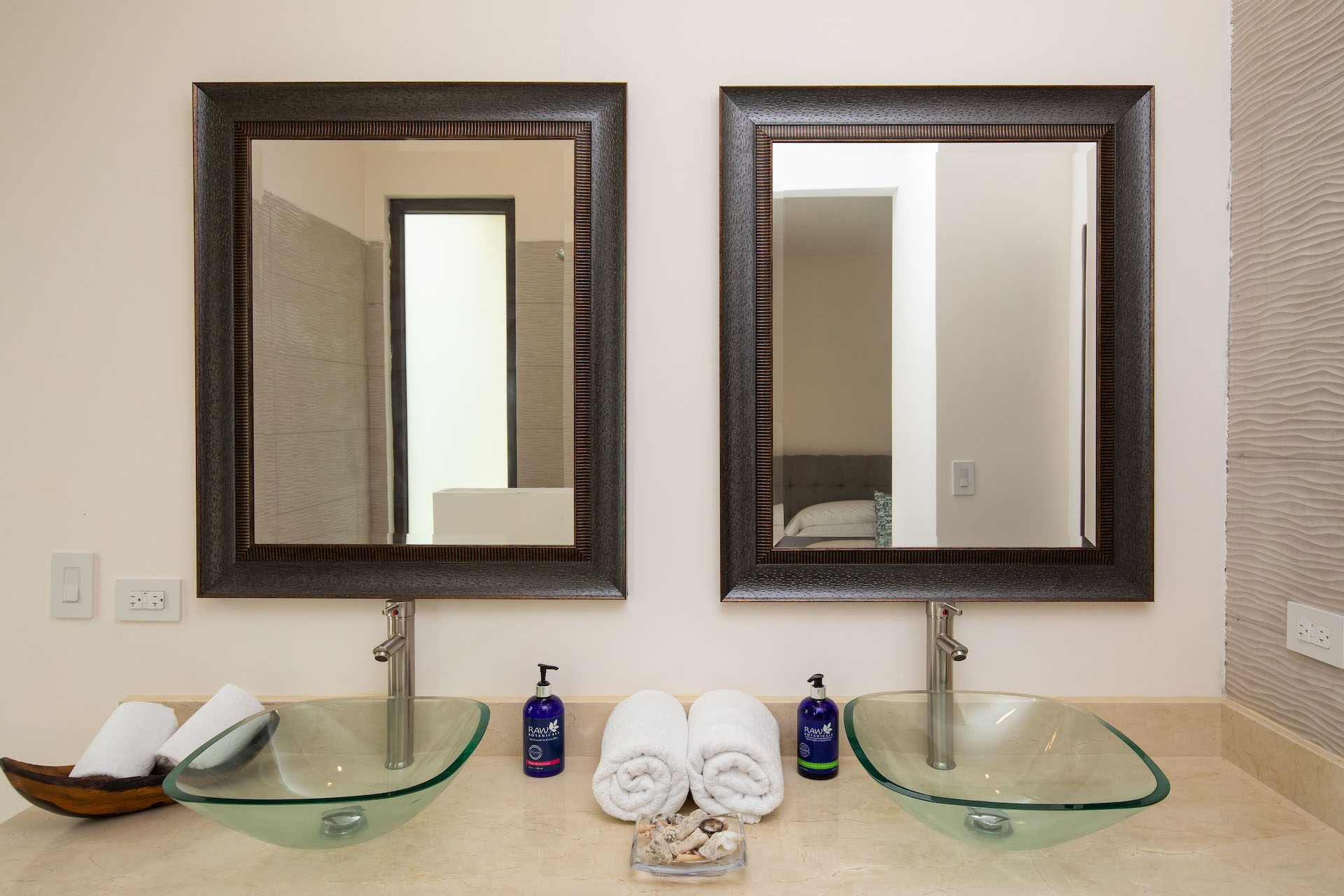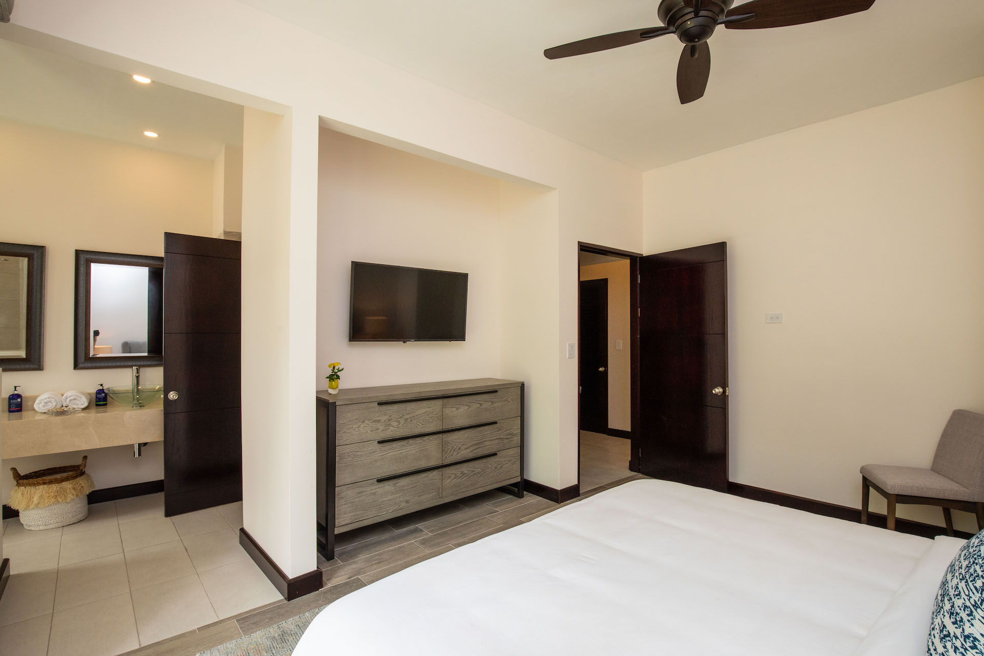 These villas feature beautifully landscaped courtyards, oversized resort-style pool with underwater lounge pad, expansive sundeck and custom loungers, private pool side cabanas with fans and evening lighting, outdoor shower, and large poolside rancho for barbecuing and entertaining.