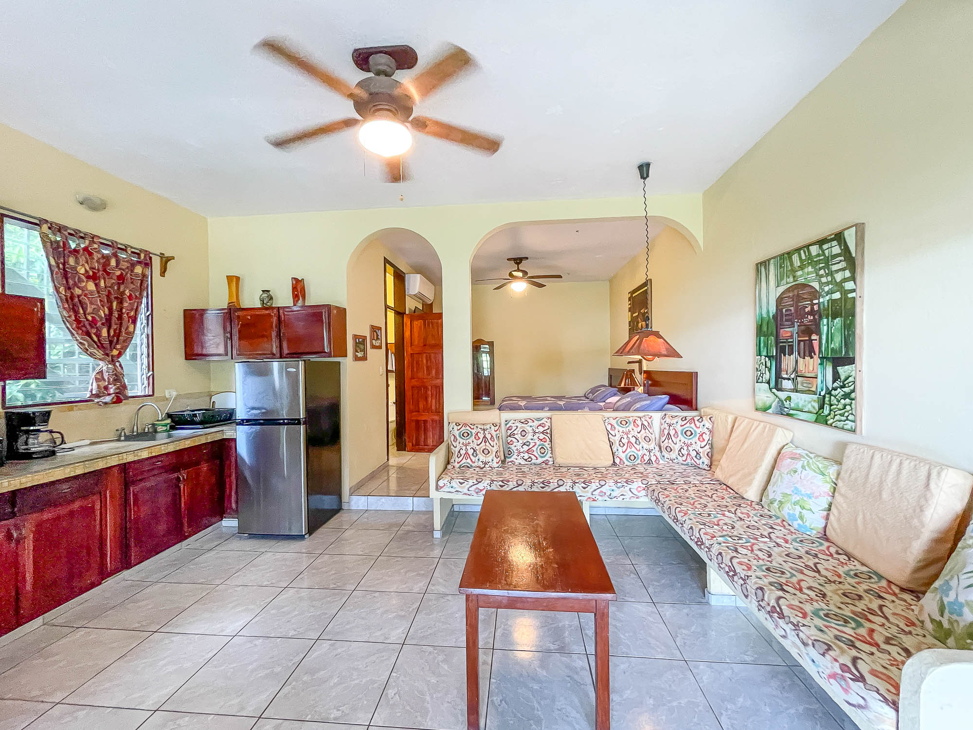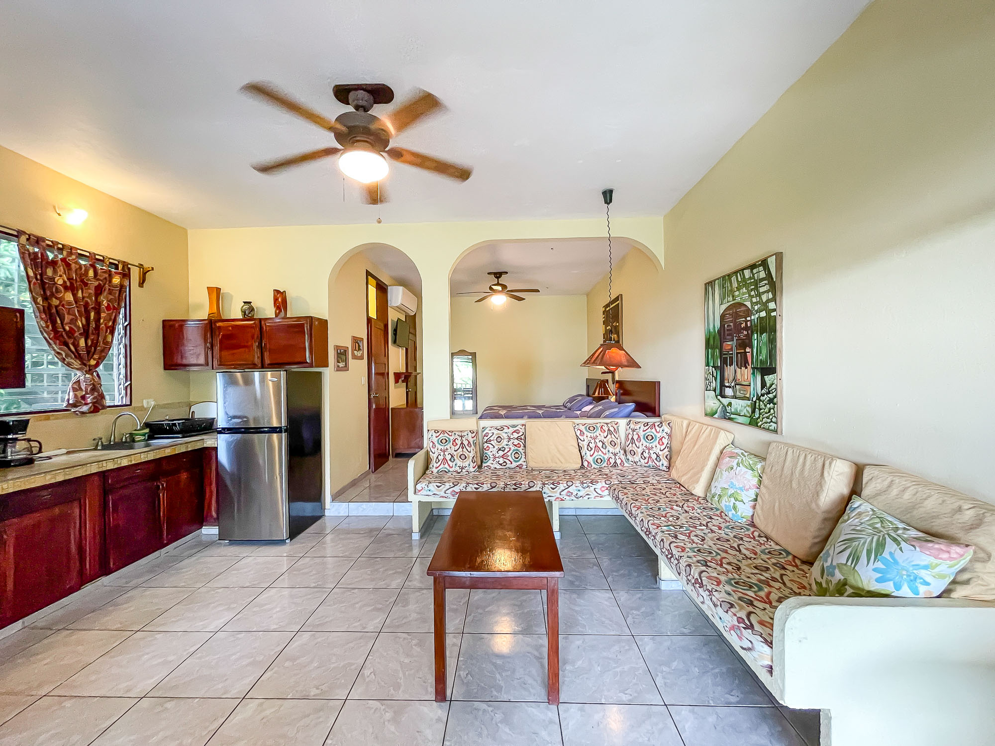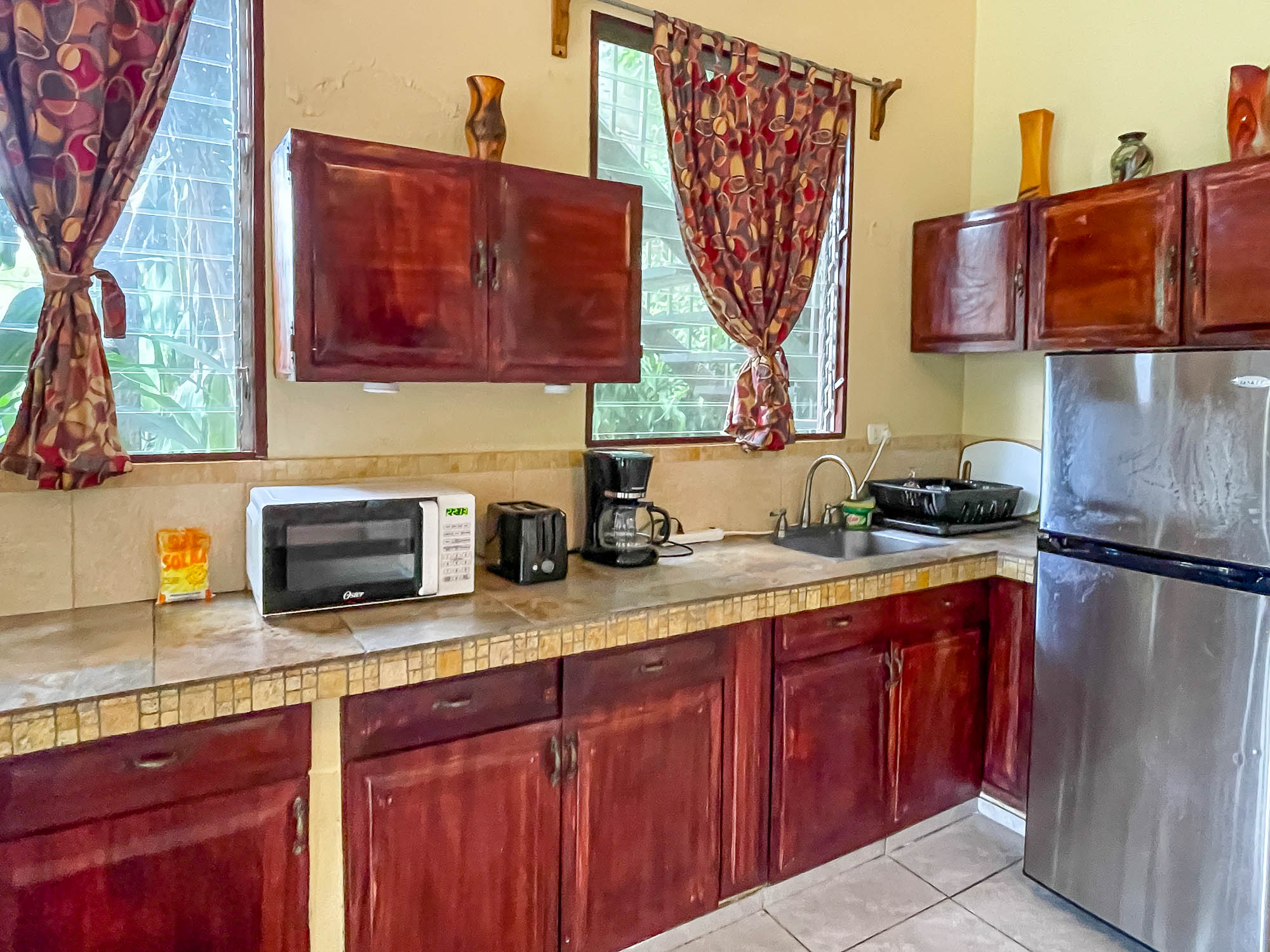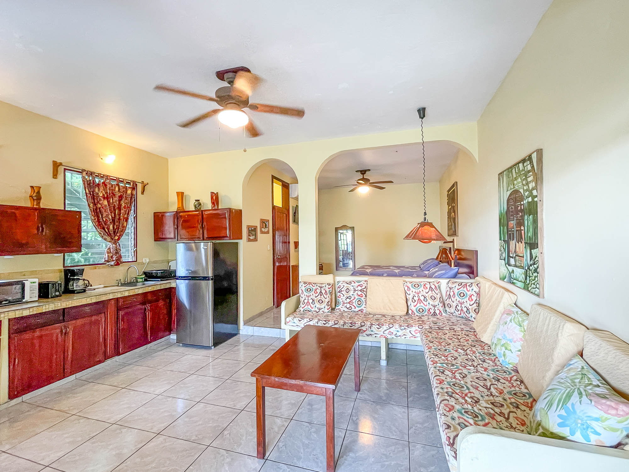 This condominium has two separate units, where you can live in one and rent the other one so you can experience the perfect Costa Rican dream. The Upstairs unit has one separate bedroom with two double beds and an open kitchen with lounge area that can comfortably sleep two people.
