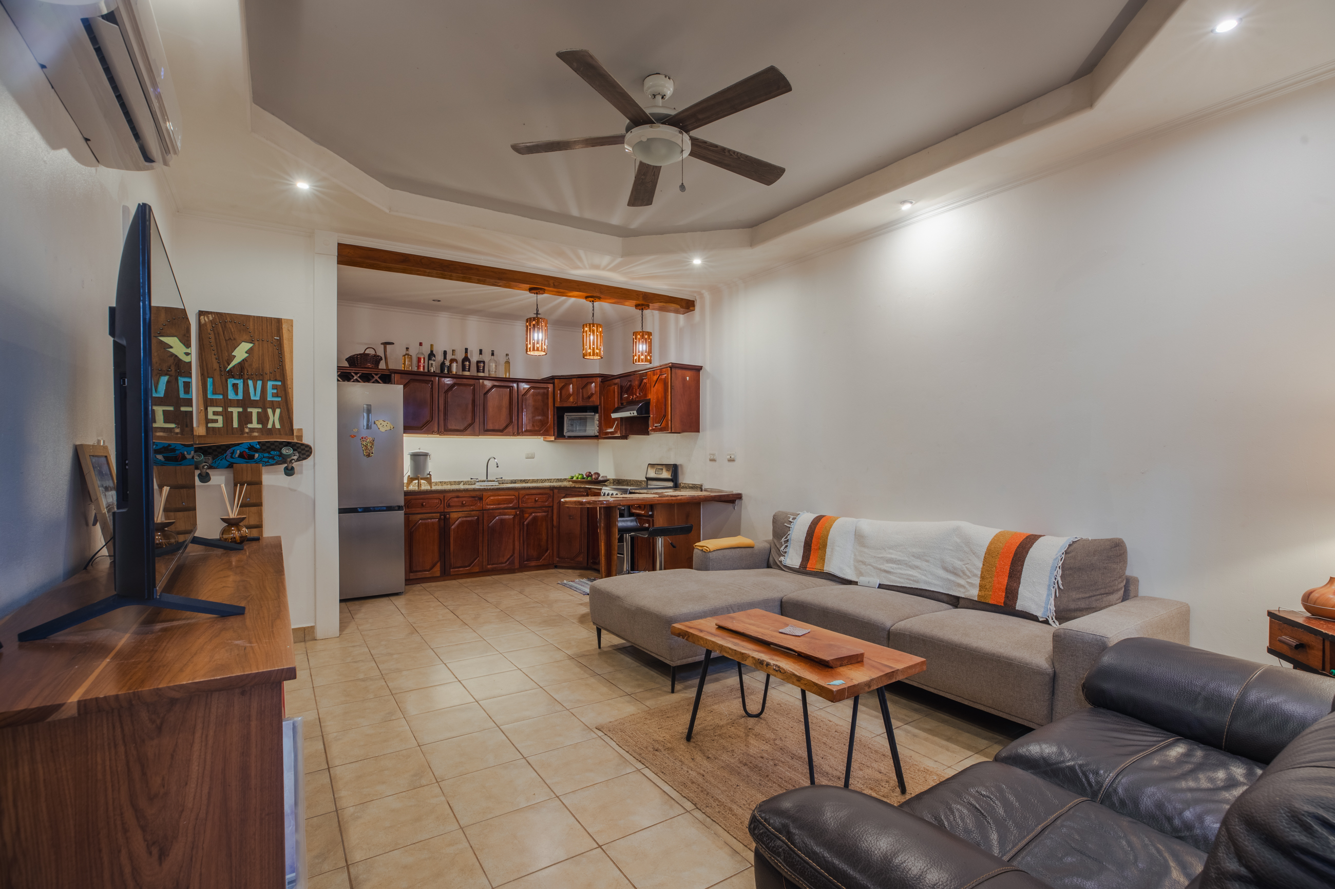 Located in the sought-after Arco Iris II community, this ground-floor, condo-style residence offers comfort, convenience, and a prime location just two minutes from the vibrant downtown area of Playa Guiones. Set in the peaceful neighborhood of Esperanza, the property provides easy access to beaches, dining, shopping, and wellness amenities while maintaining a relaxed, residential feel.