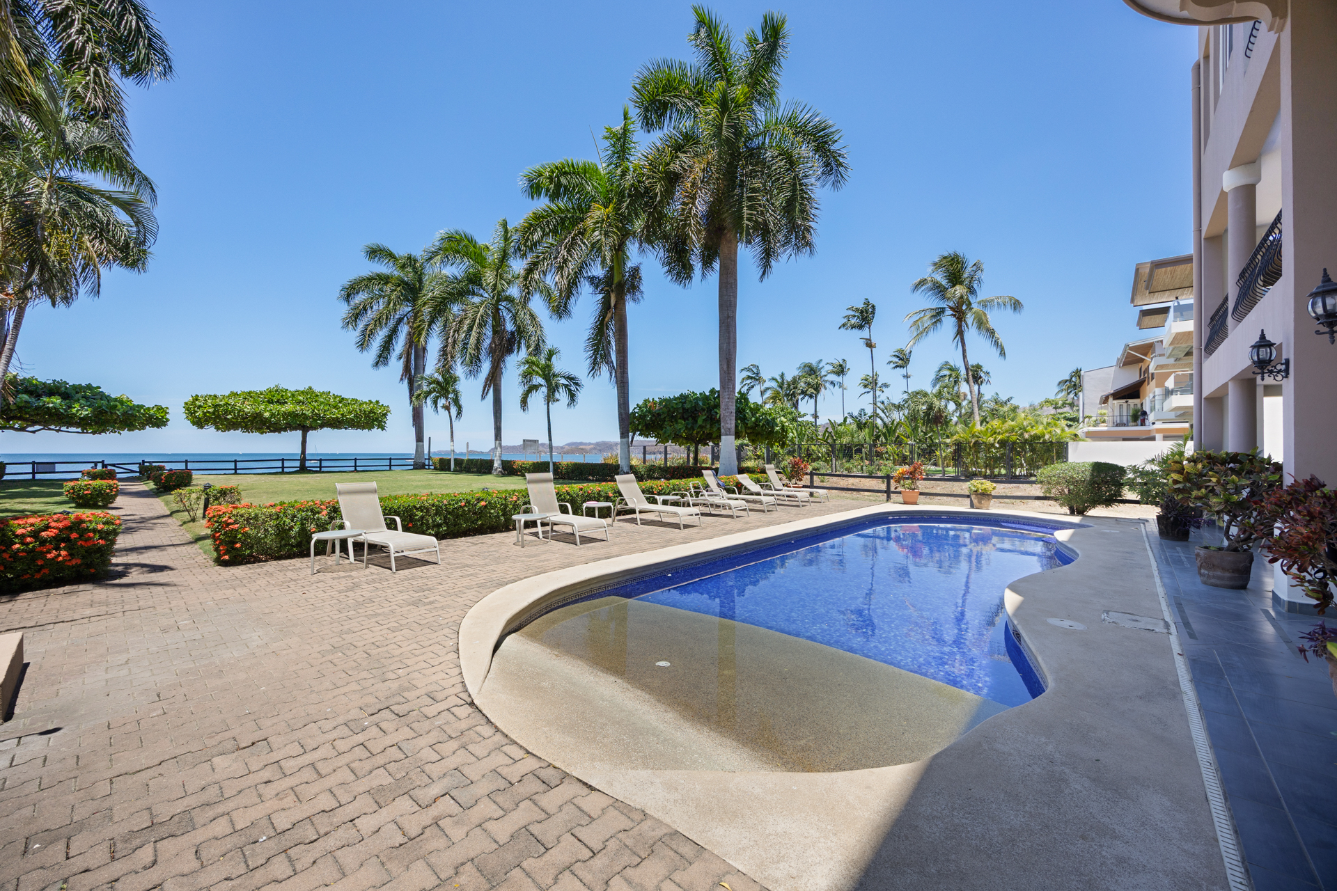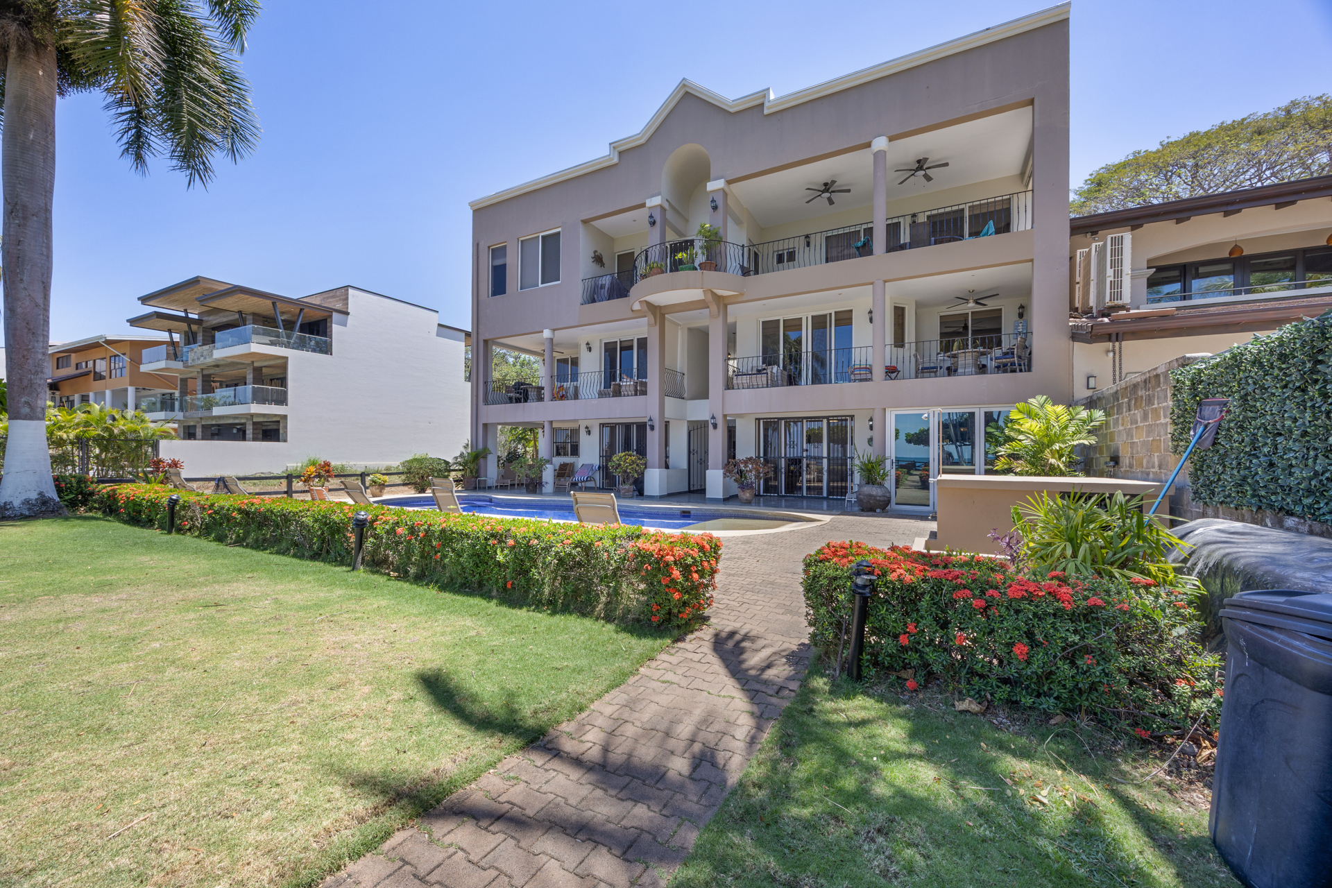 Discover the rare opportunity to own El Destino 1A a fully titled, ground floor beachfront condo in the highly desirable Surfside neighborhood. This 2-bedroom, 2-bathroom residence combines luxurious coastal living with unbeatable convenience. Just steps from the sand and within walking distance to local dining and shops, you’ll also enjoy quick access to the new Flamingo Marina 3 minutes away and Guanacaste International Airport only 45 minutes. Nestled in a boutique community of just five units, El Destino offers privacy, tranquility, and upscale amenities including a sparkling pool, lush tropical landscaping, and meticulously maintained common areas.