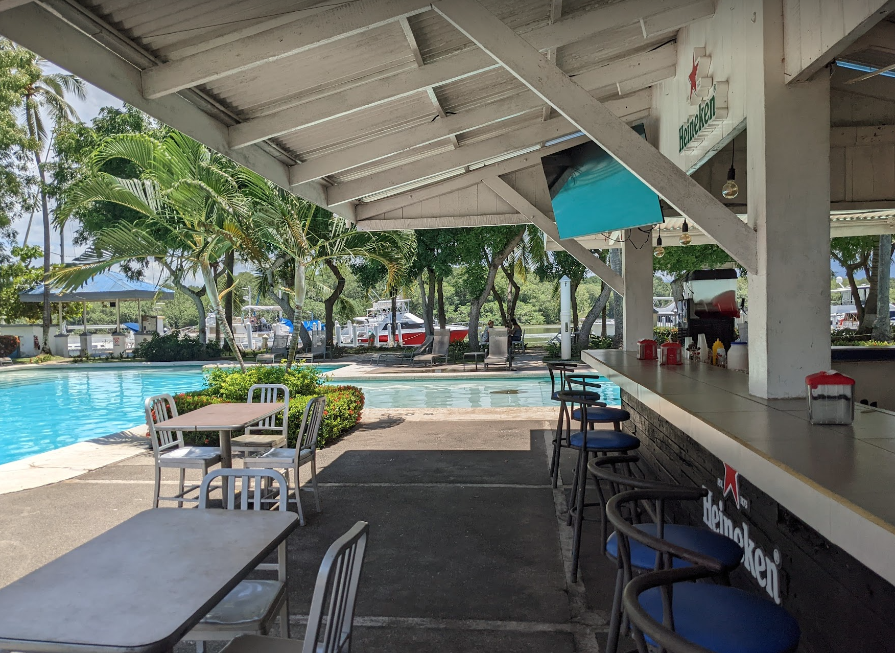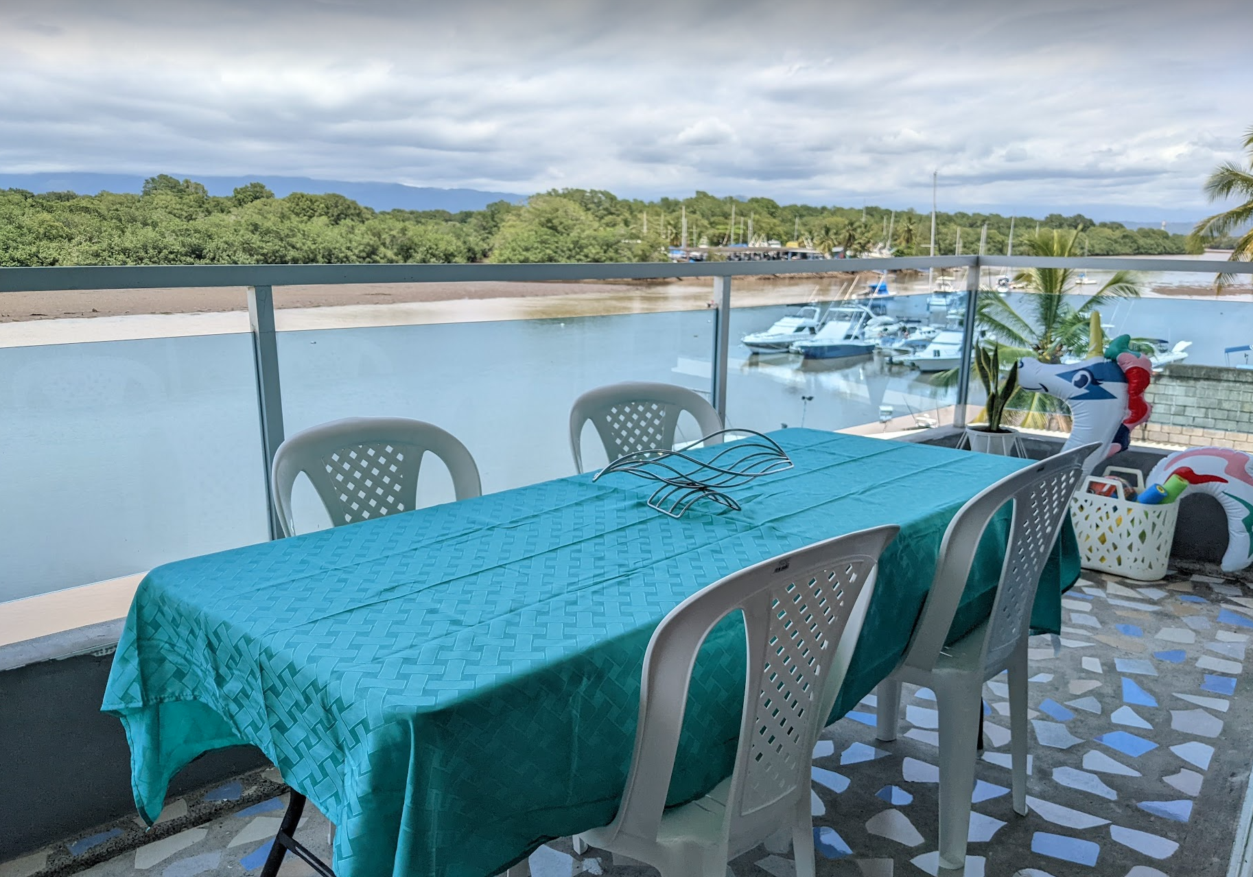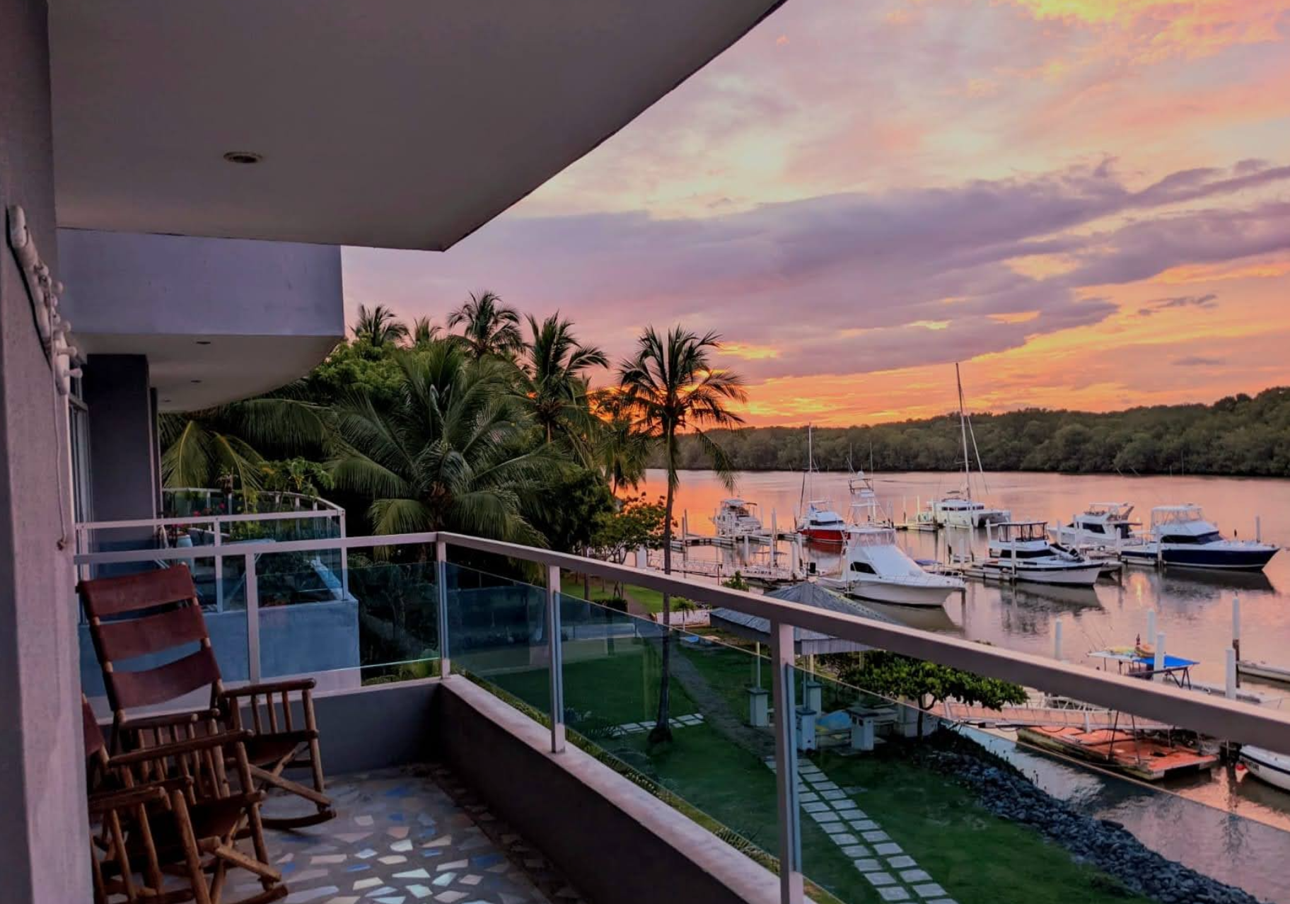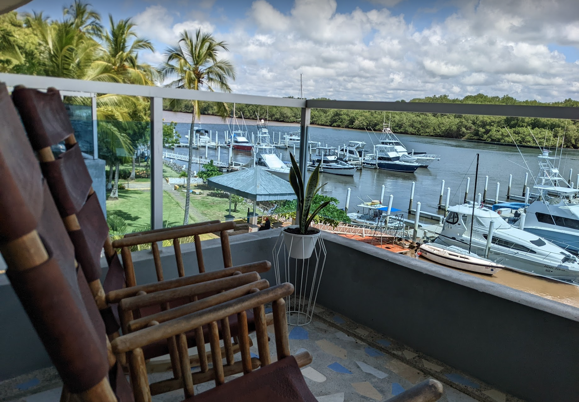Are you dreaming of living in a beautiful condo with all the comforts of a luxury resort? Do you own a yacht and long for the convenience of having it docked right outside your front door? If so, this stunning 2-bedroom, 2-bathroom corner apartment is your perfect match! Nestled on the estuary within the prestigious Puerto Azul complex, this serene residence offers breathtaking views of lush mangroves and majestic Costa Rican mountains, while being shielded from strong ocean winds.