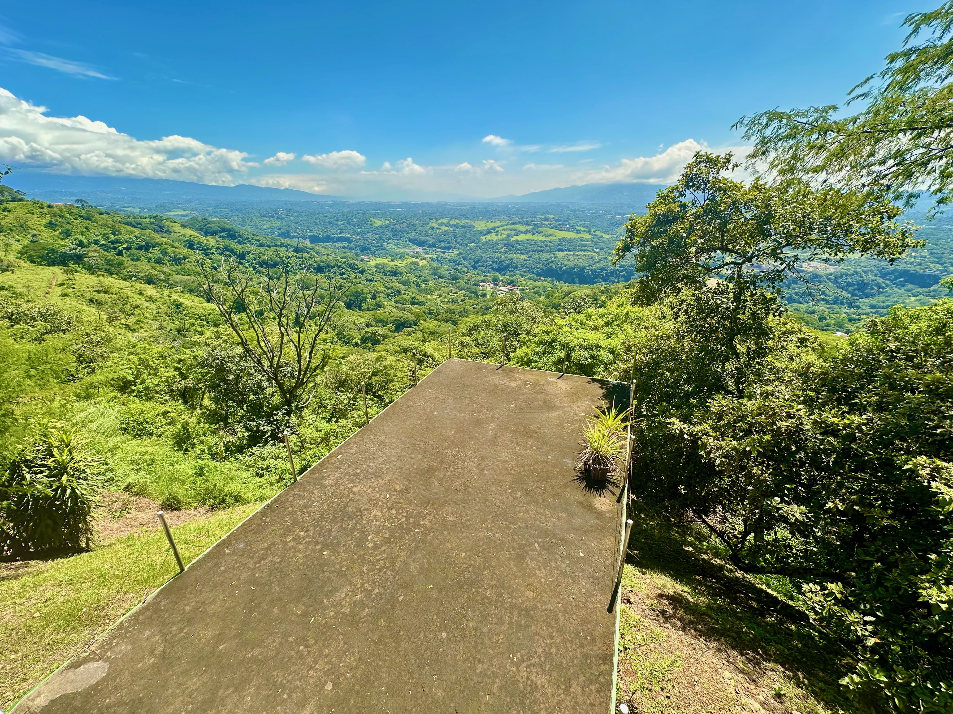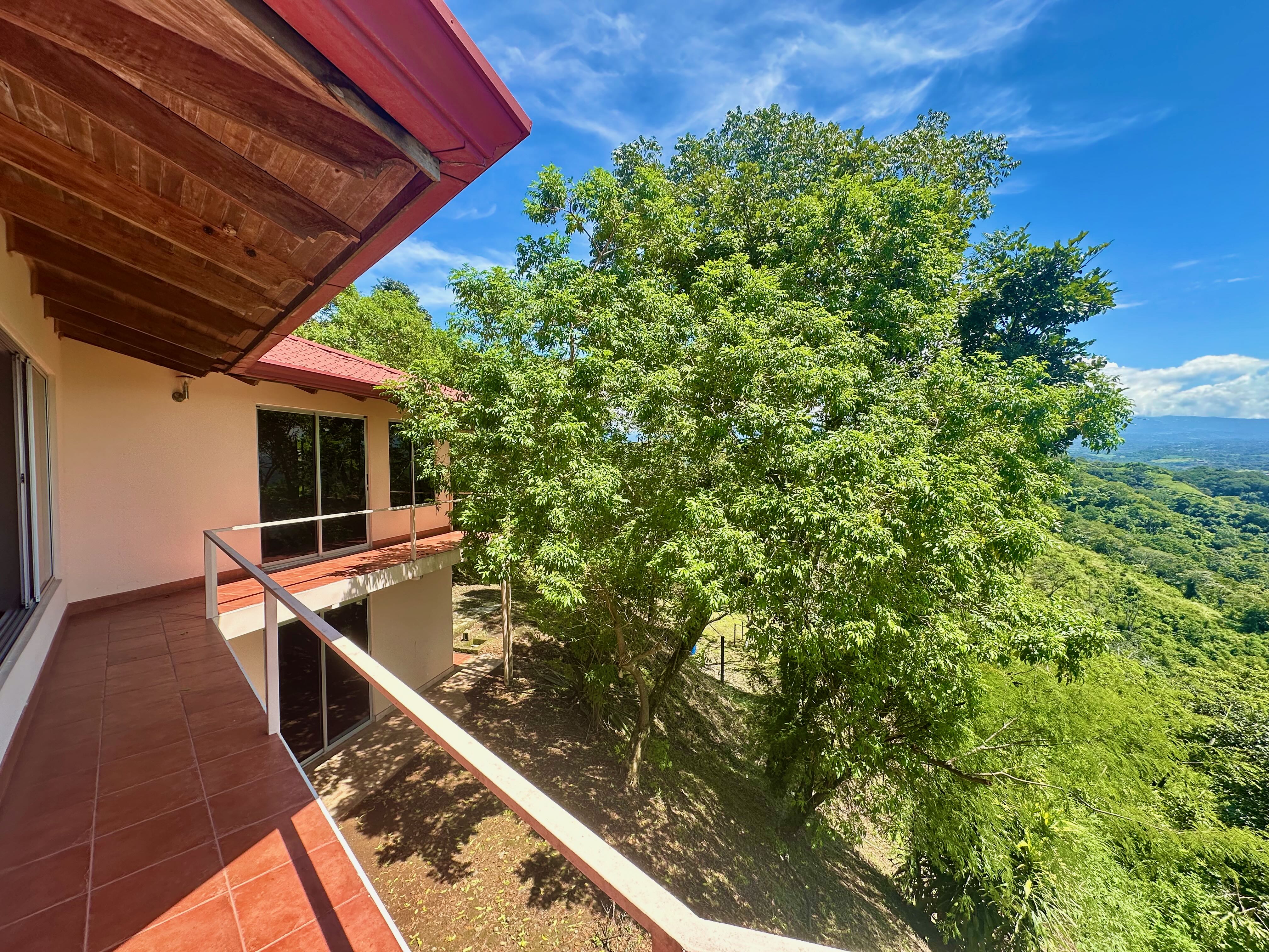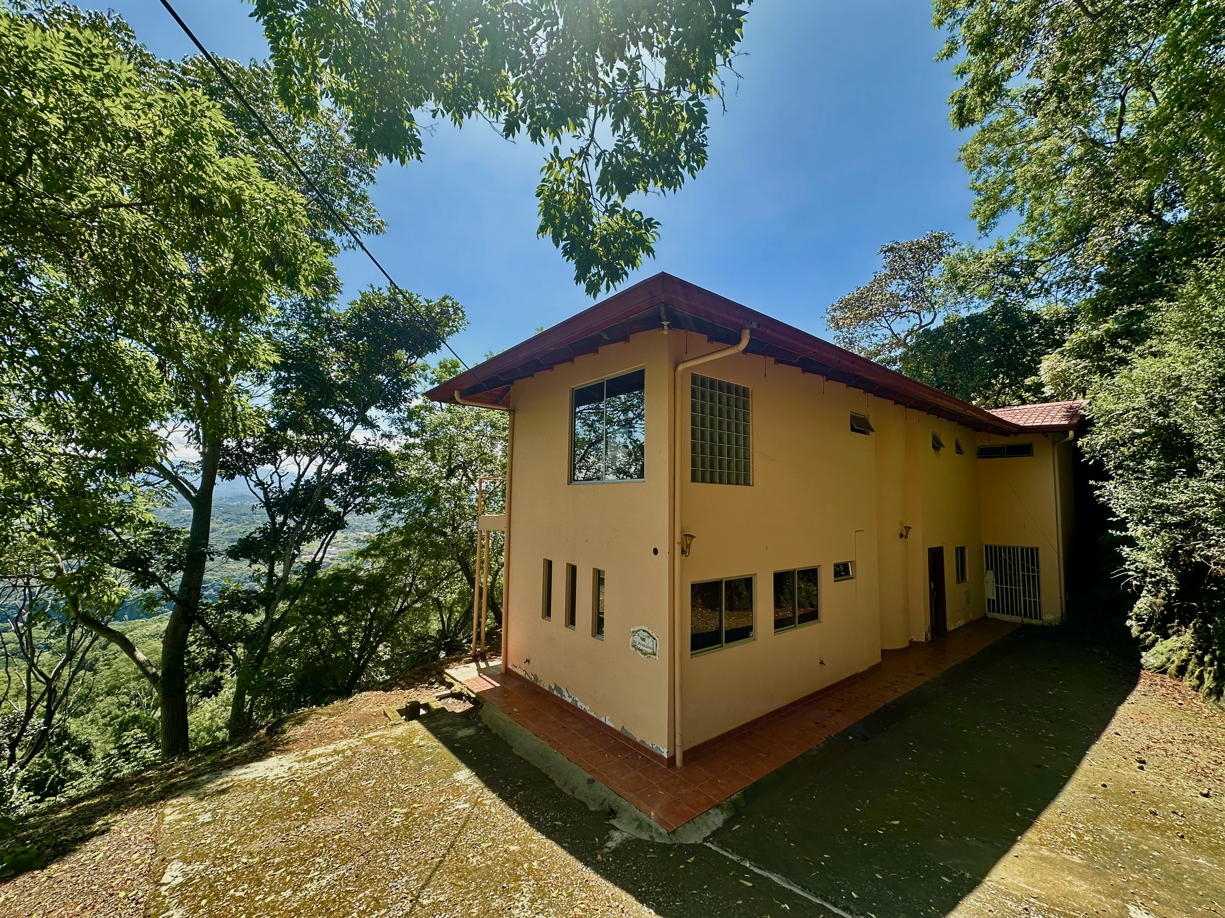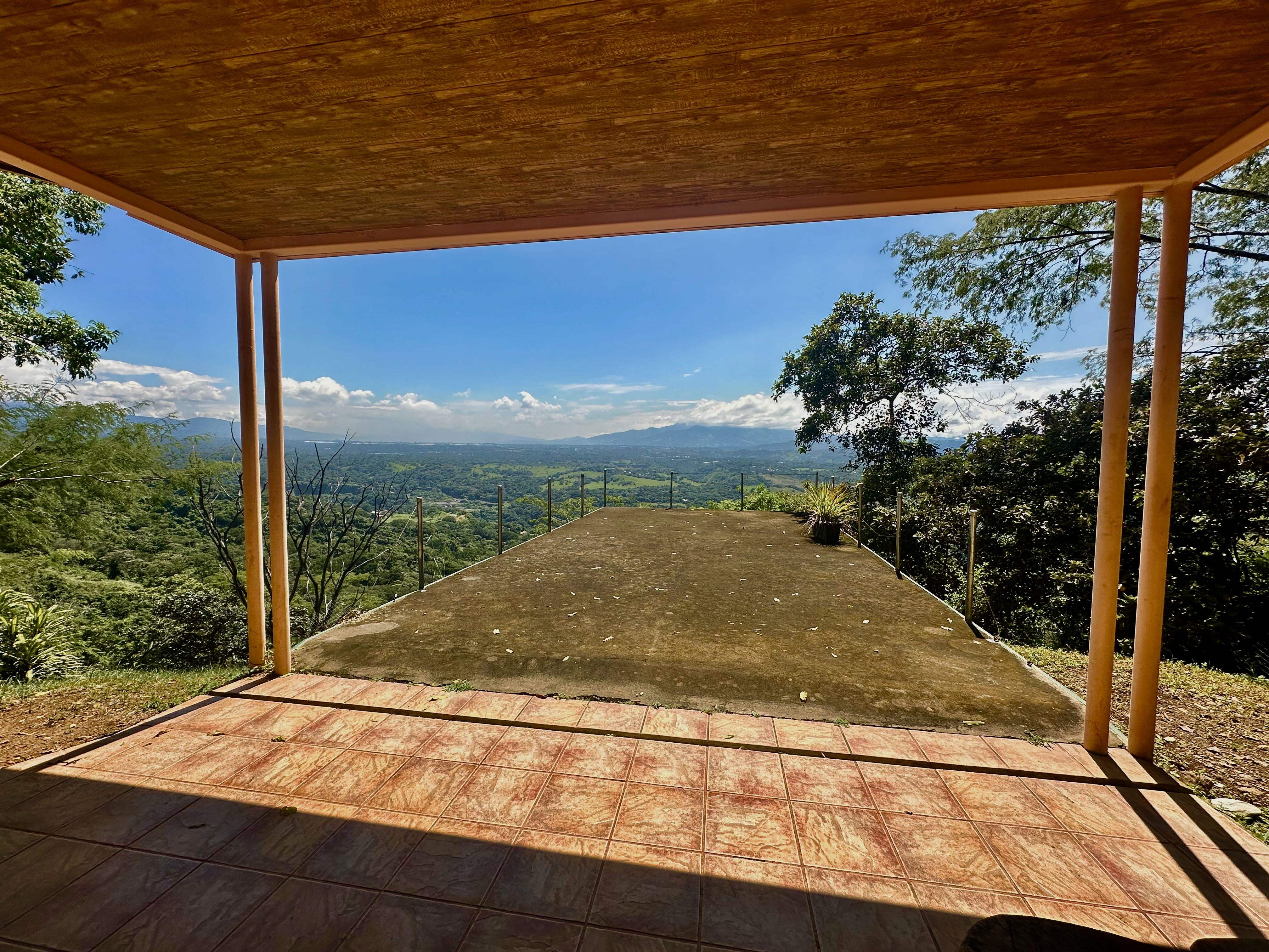 This exceptional property offers more than 11,000 m² (about 2.7 acres) with sweeping panoramic views over the Central Valley; on clear days, you can see the Irazú and Turrialba volcanoes. The solid house, built 15 years ago, provides a sound structural base and spacious living. The ground floor contains an open-plan kitchen, dining, and living area with large windows, a laundry room, one bedroom, a bathroom, and a generous outdoor terrace that frames the valley. Upstairs is a huge master bedroom with high wooden ceilings, a walk-in closet, and a large bathroom with room to add a bathtub. The sloped lot also includes three additional flat platforms suitable for guest houses or rental units. With some renovation, this property is ideal as a private home or an income-producing project.