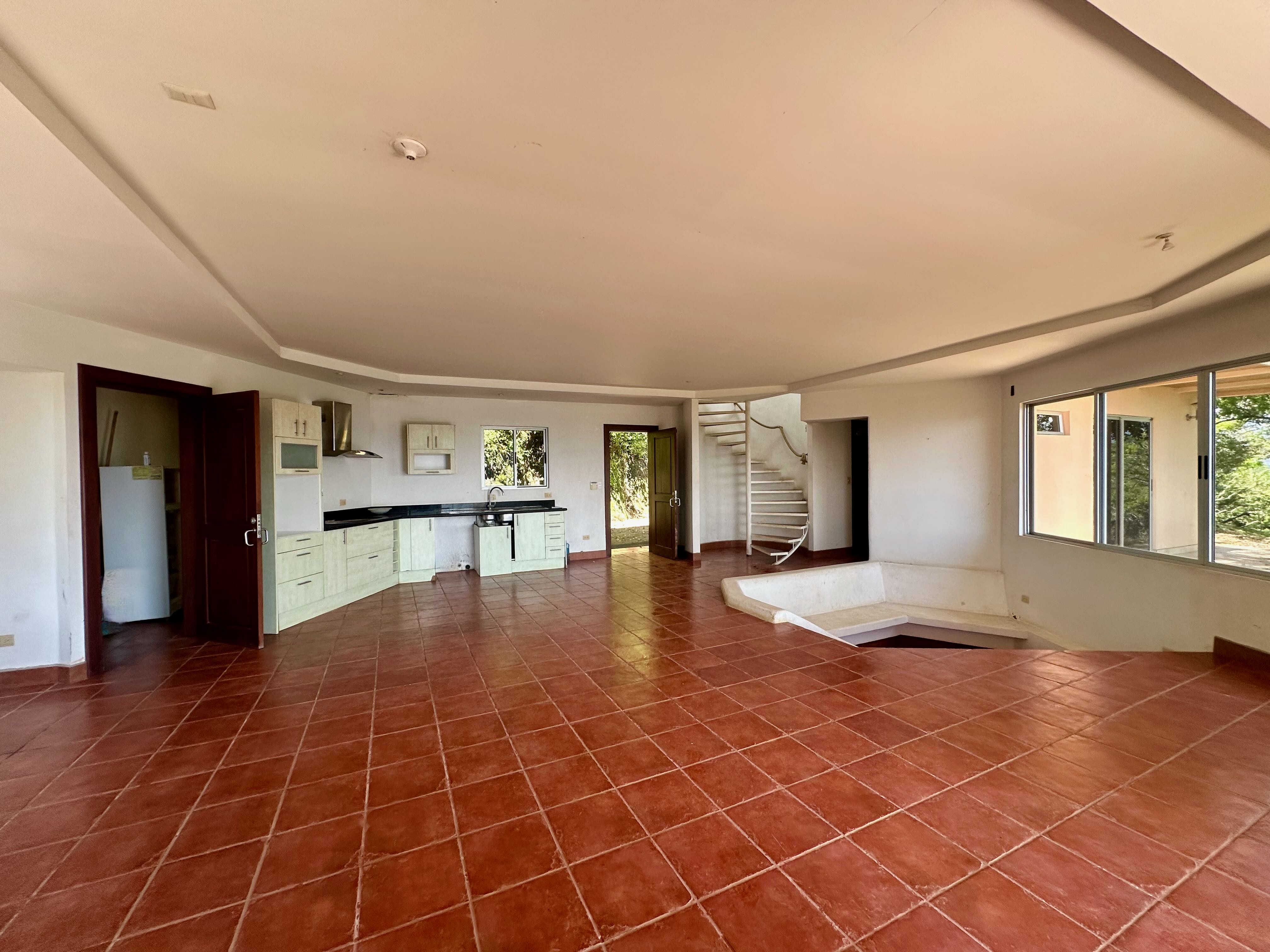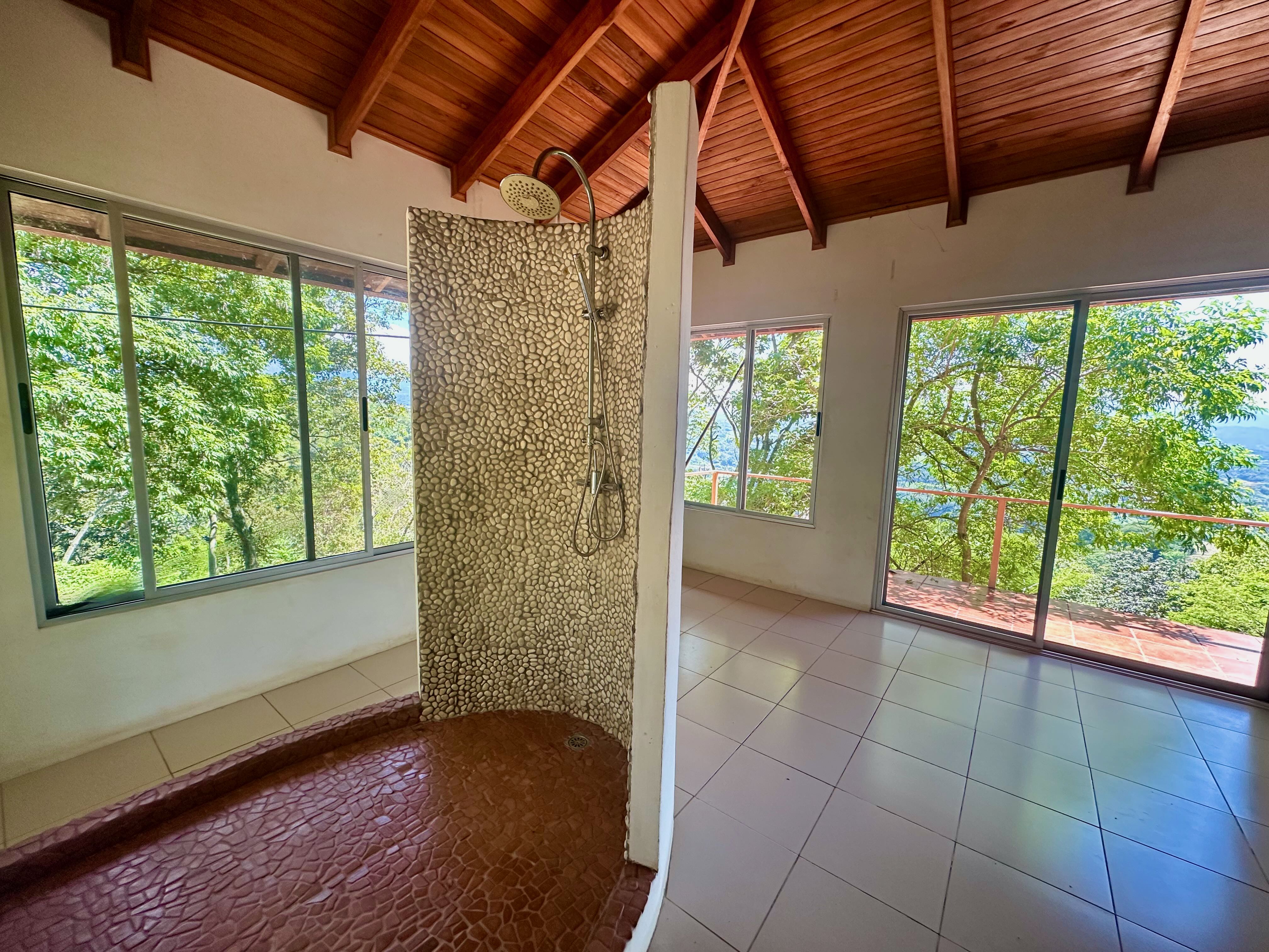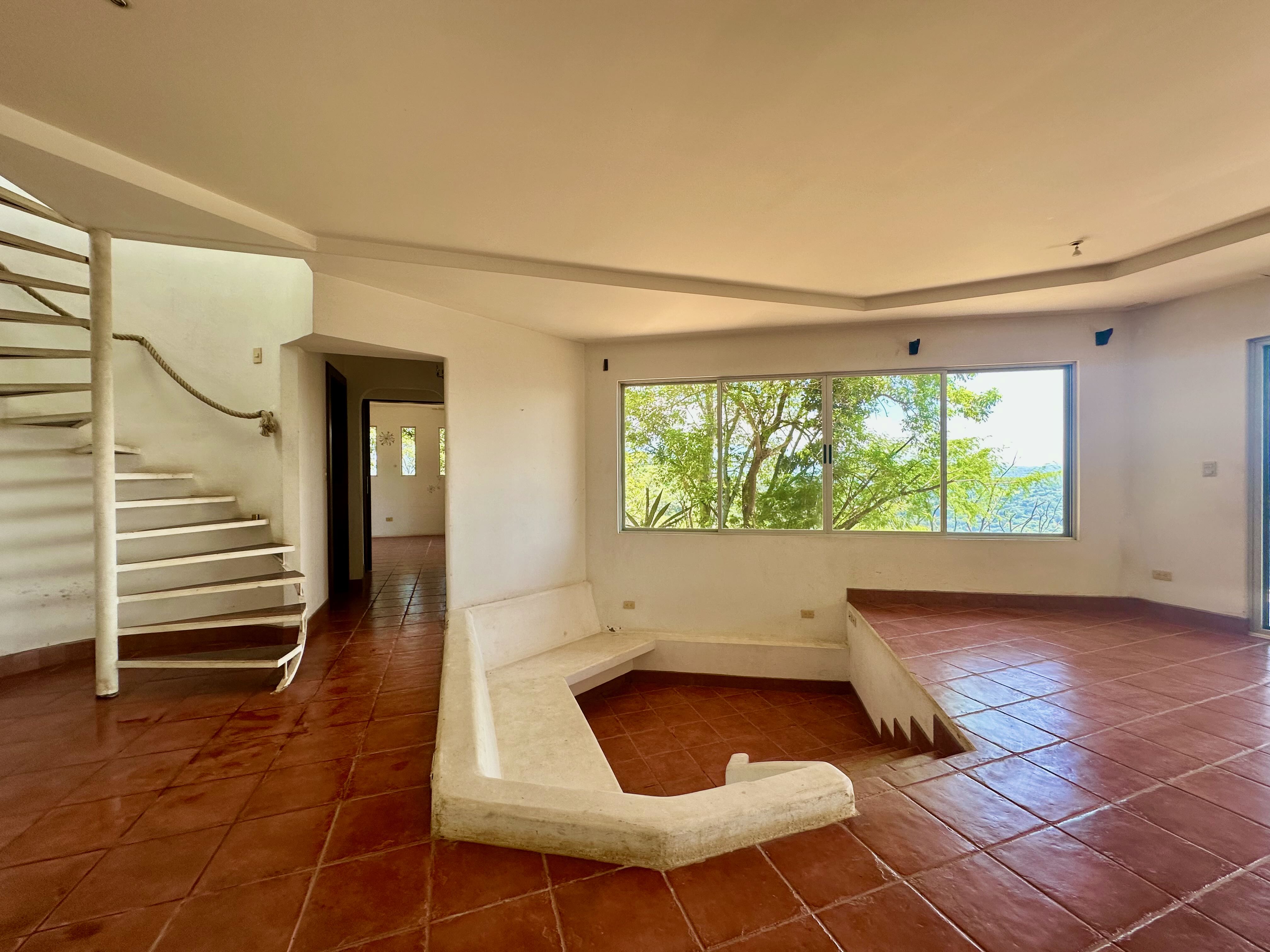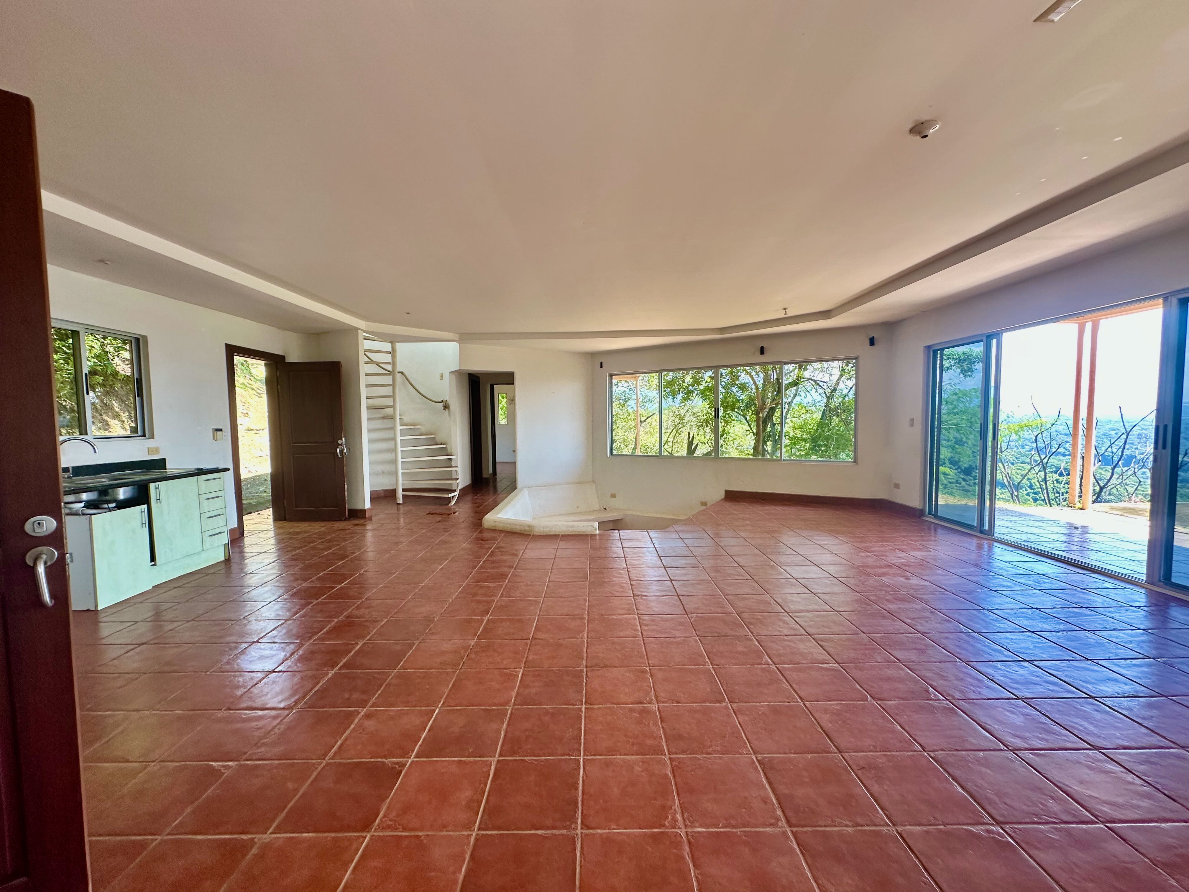 This exceptional property offers more than 11,000 m² (about 2.7 acres) with sweeping panoramic views over the Central Valley; on clear days, you can see the Irazú and Turrialba volcanoes. The solid house, built 15 years ago, provides a sound structural base and spacious living. The ground floor contains an open-plan kitchen, dining, and living area with large windows, a laundry room, one bedroom, a bathroom, and a generous outdoor terrace that frames the valley. Upstairs is a huge master bedroom with high wooden ceilings, a walk-in closet, and a large bathroom with room to add a bathtub. The sloped lot also includes three additional flat platforms suitable for guest houses or rental units. With some renovation, this property is ideal as a private home or an income-producing project.