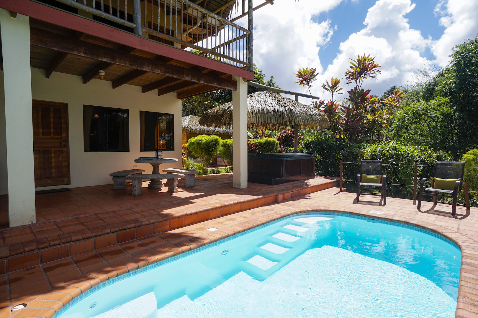 There are 2 bedrooms with queen size beds, 2 baths, a washing room, kitchen, dining room, large living room and large covered patio on both levels with ocean view's. Sitting next to the pool you will find a 4 person jacuzzi protected by a nice Palmex roof. Cool off and swim in your pool in the sunshine or warm up in your jacuzzi at night under the moon light.