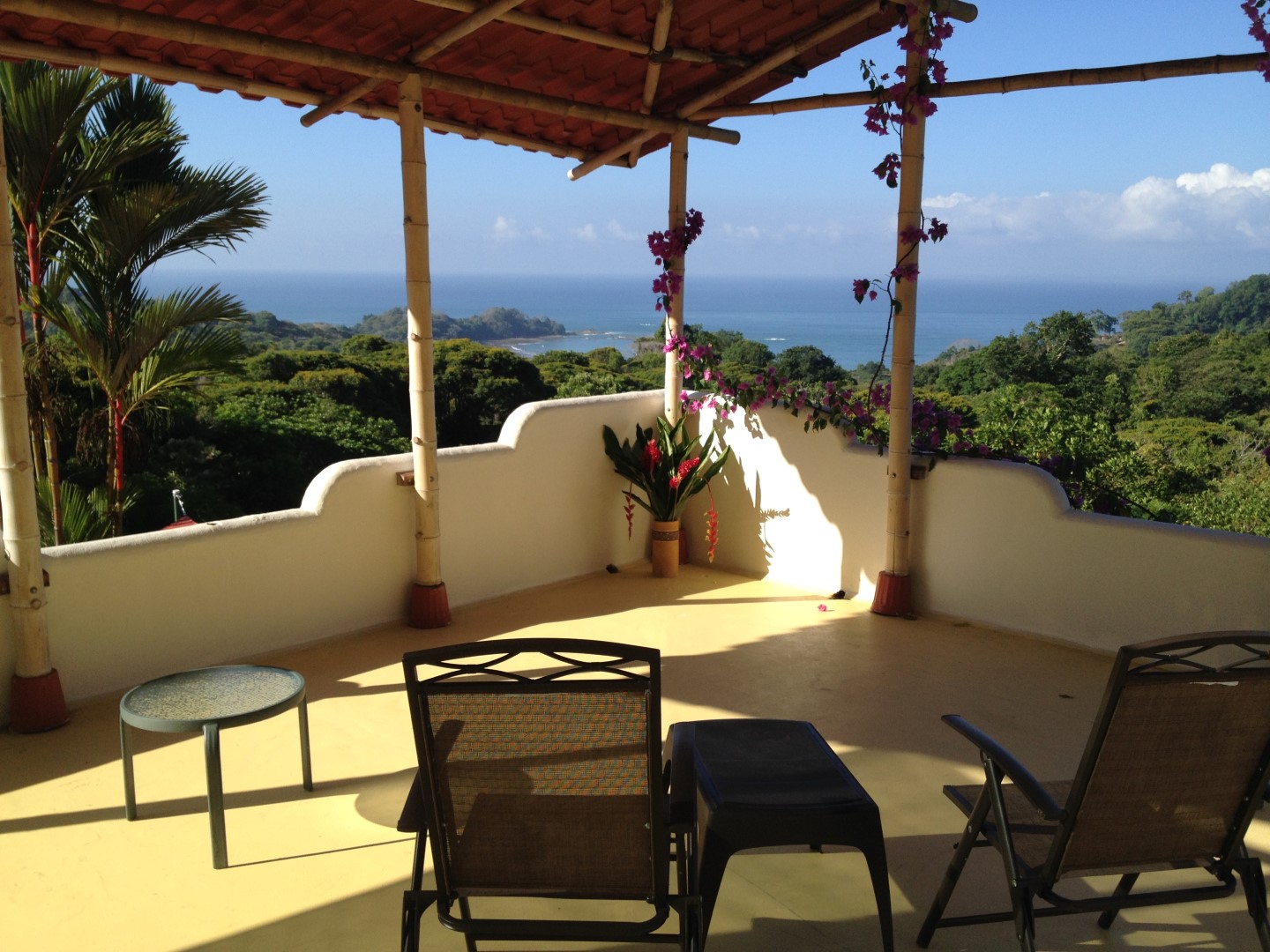 There is another building site on the property with a separate approach. The ocean view from ground level is slight, but a raised guest cabin would have separation, privacy and a view of jungle and ocean.