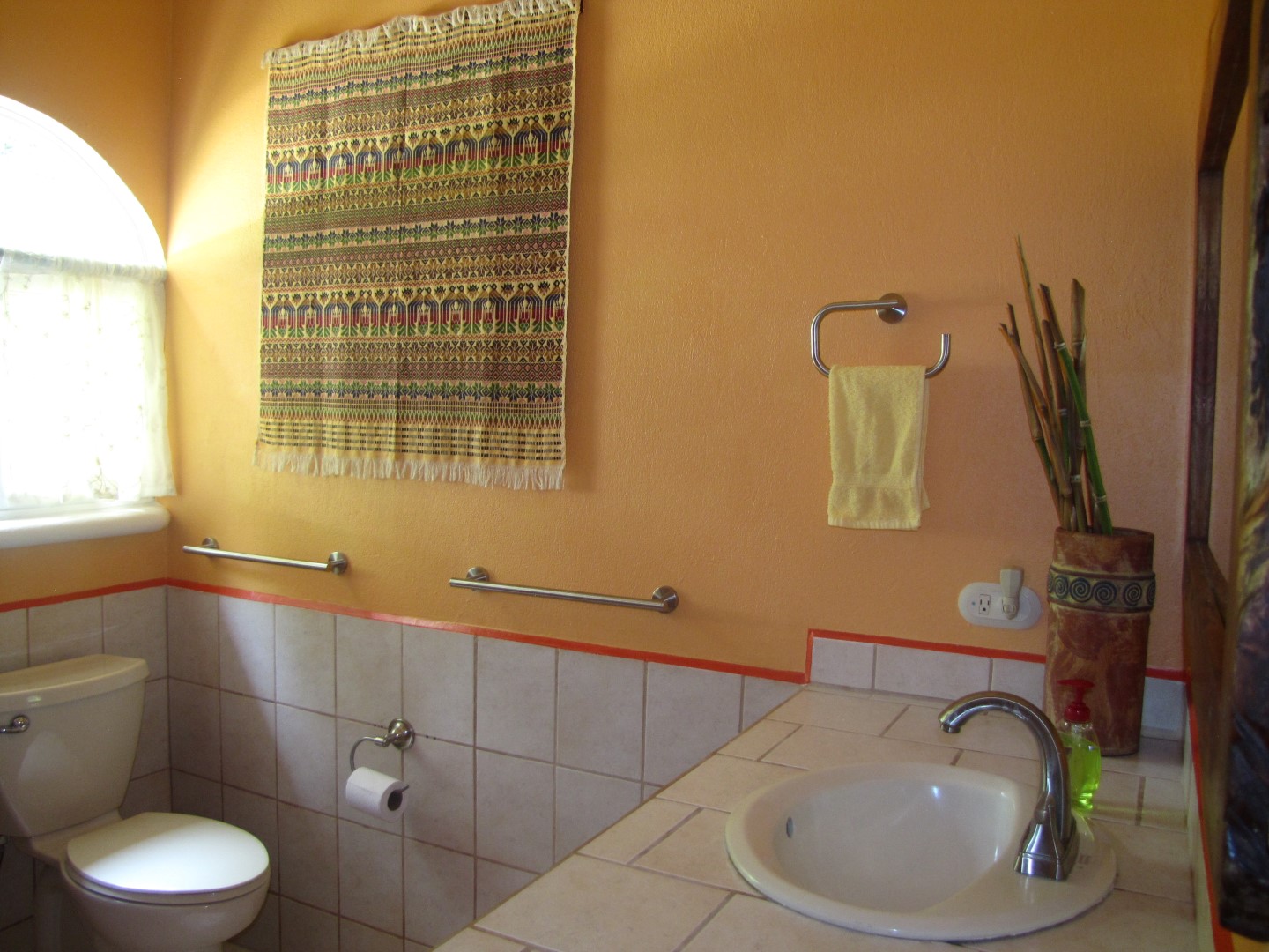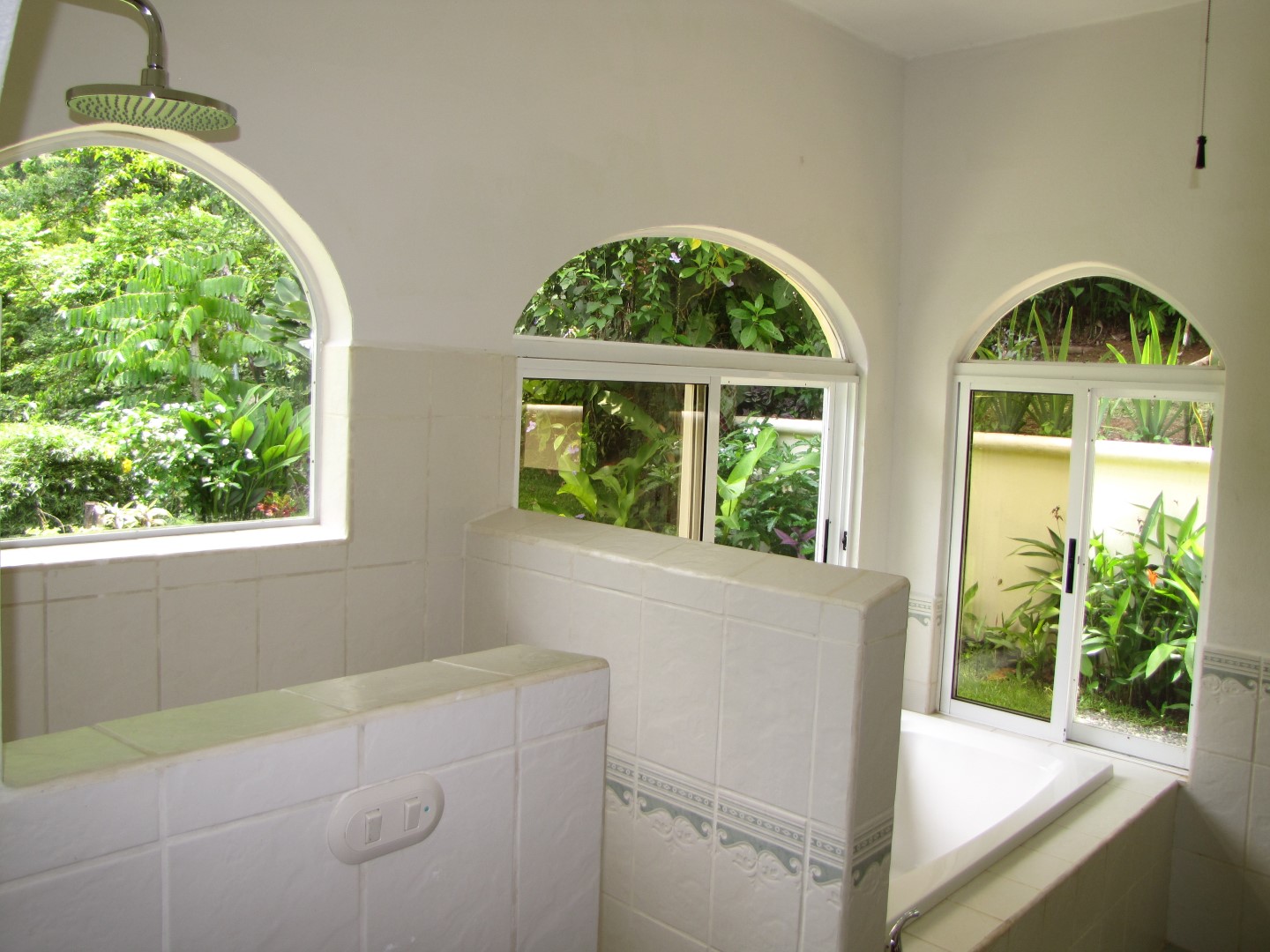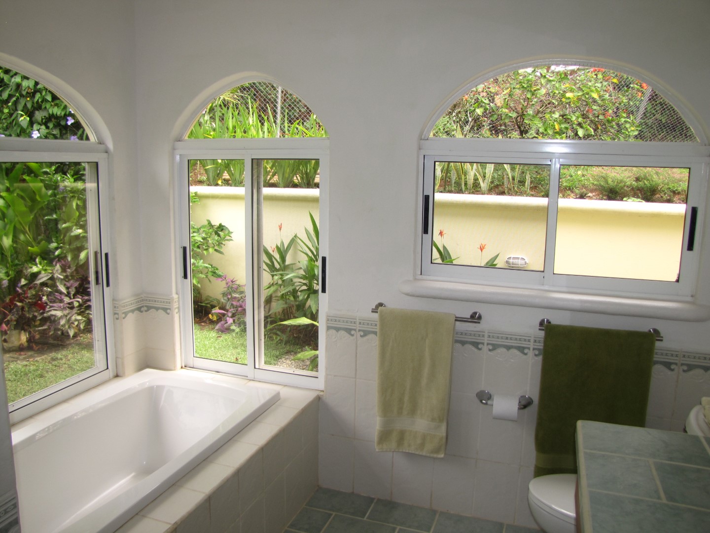 The fully furnished master suite has its own walk in closet, a beautifully finished en suite bathroom and easily enough room for a king sized bed and a comfortable place to sit and read. Lots of windows remind you that you are in a tropical garden, and the air conditioning serves both to provide a dry storage for humidity sensitive belongings and a cooler night’s sleep if you so desire.
