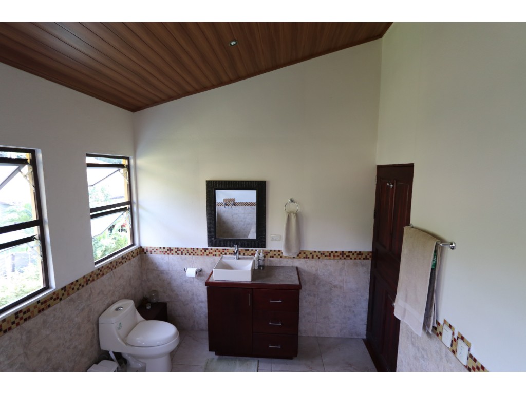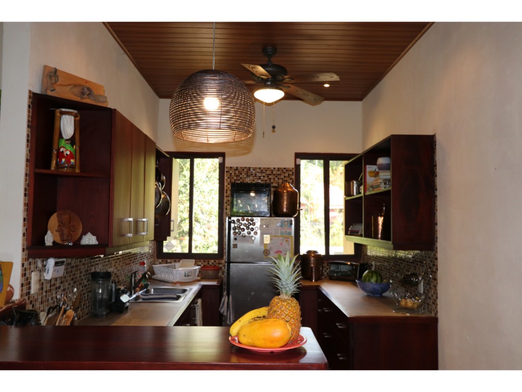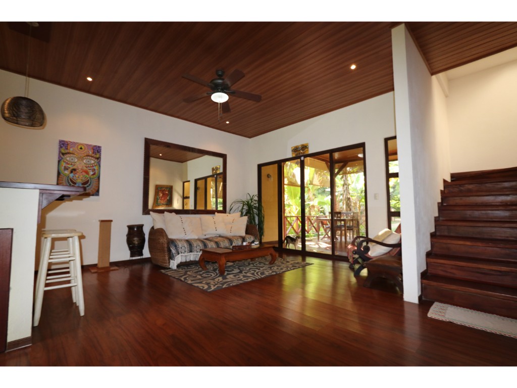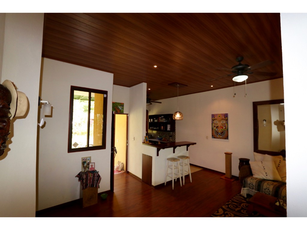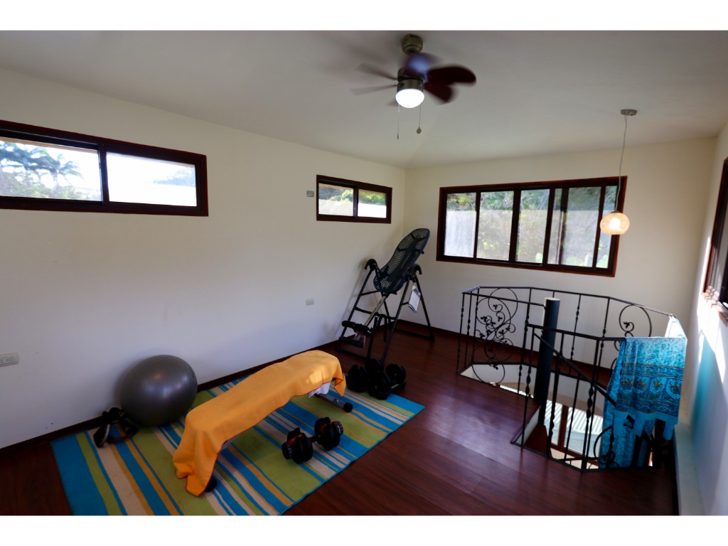 The Baru river is not only known for being one of the most picturesque spots in Costa Rica but hosts many other fun activities as well. Whether it’s great snook fishing, inner tubing, bird watching, SUPing, or just hanging out swimming in the river with family and friends, the Baru has it all. This two bedroom house gives you all of this, plus it’s only a 10 minute walk or 2 minute drive to the beautiful beach of Dominical "where the mountains meet the sea". This newly built home has three stories with the kitchen and dining area all connected to the large outdoor covered patio on the first floor. On the second floor, you will find a master bedroom and guest room with a spacious bathroom and two person tub.. The third floor has a loft which is currently being used as an exercise room which could also be used for yoga or an extra bedroom.