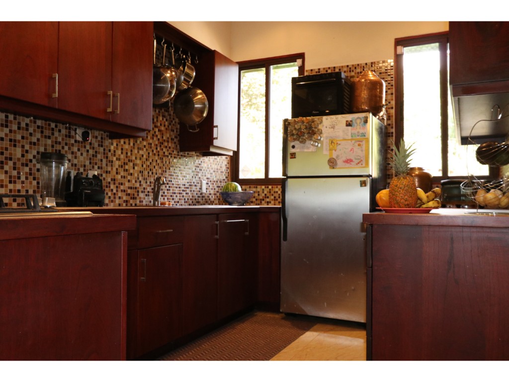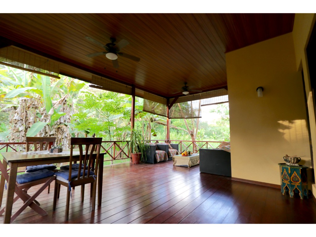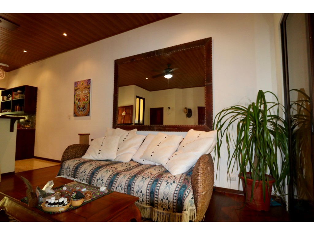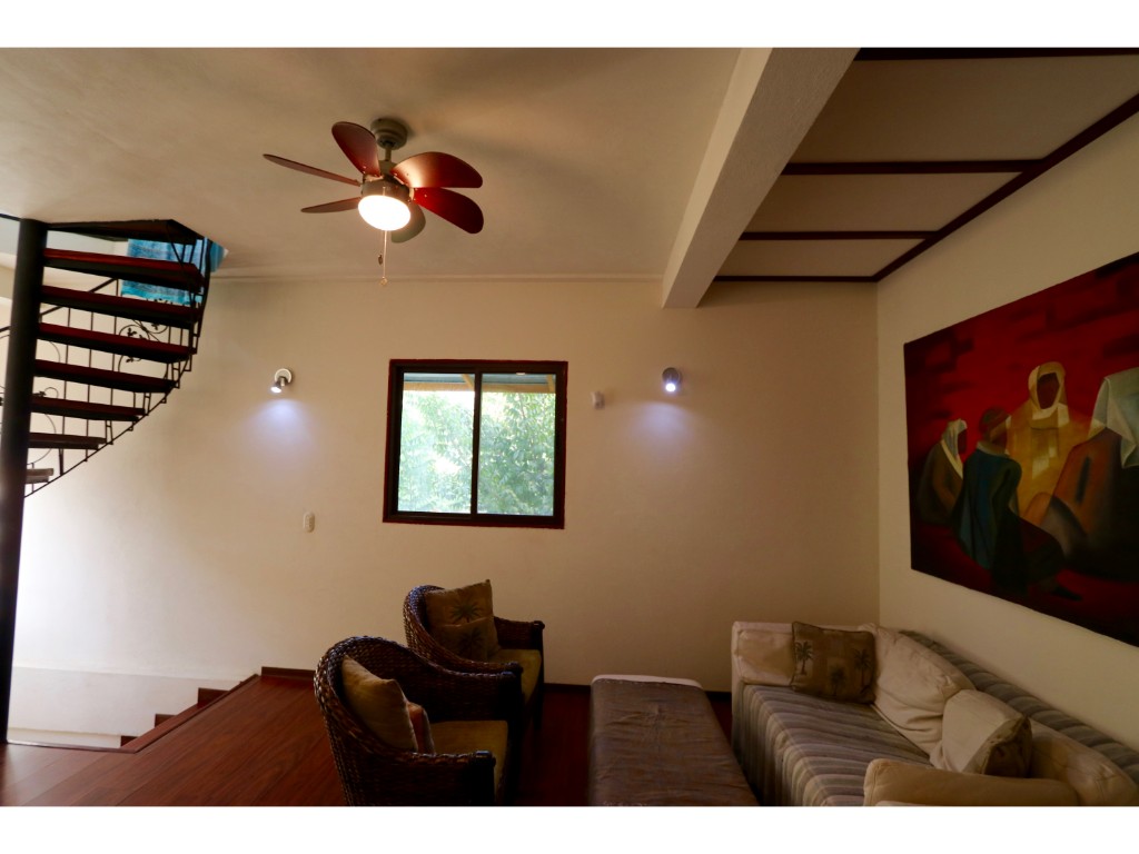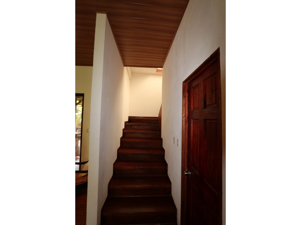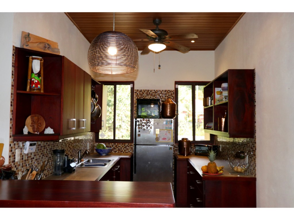 The Baru river is not only known for being one of the most picturesque spots in Costa Rica but hosts many other fun activities as well. Whether it’s great snook fishing, inner tubing, bird watching, SUPing, or just hanging out swimming in the river with family and friends, the Baru has it all. This two bedroom house gives you all of this, plus it’s only a 10 minute walk or 2 minute drive to the beautiful beach of Dominical "where the mountains meet the sea". This newly built home has three stories with the kitchen and dining area all connected to the large outdoor covered patio on the first floor. On the second floor, you will find a master bedroom and guest room with a spacious bathroom and two person tub.. The third floor has a loft which is currently being used as an exercise room which could also be used for yoga or an extra bedroom.