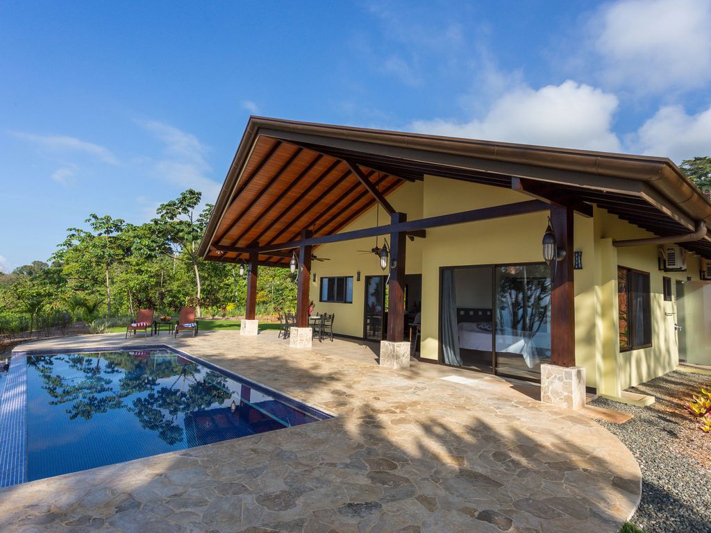 This luxurious vacation villa is located in the Costa Verde property development, about 20 minutes off the coastal highway and almost directly centered between the towns of Dominical and Uvita, where you can find restaurants, grocery stores and pharmacies. The road to the development features both dirt and concrete, and a 4x4 vehicle is required. There is a security gate to enter the grounds with a full-time guard on duty. This area is extremely safe and incredibly beautiful. Because it's located high in the cloud forest, the temperature at Casa Olas Azul is often 10 degrees cooler than down at the beach.