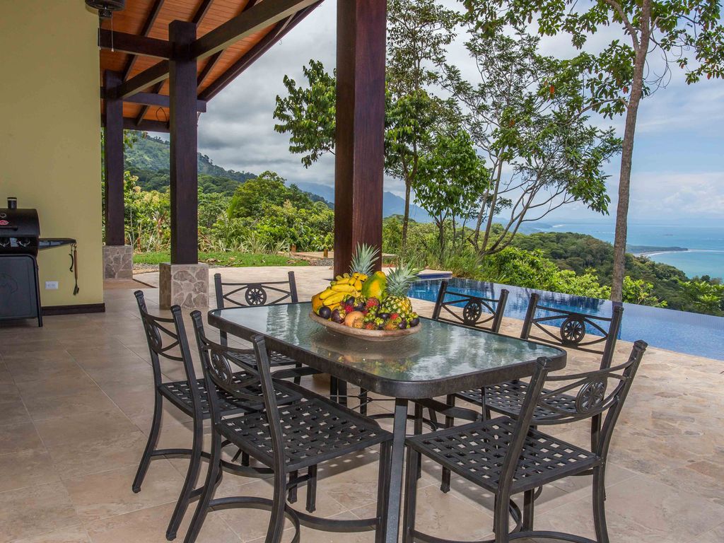 Throughout multiple parts of the property - including the kitchen, bedrooms, infinity pool and backyard barbeque area - there are incredible sightlines of the famous Whale's Tail at Marino Ballena National Park, a rocky reef that stretches more than a mile out to sea and is completely exposed during low tides. As the ocean water fills in on high tides, the reef shelf disappears for a few hours, only to appear again as the tide rushes back out to sea. It truly is a sight to behold as nature works its course each Costa Rican day.