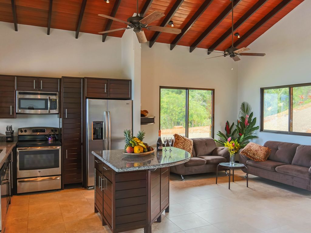 Nestled in a lush, vibrant cloud forest more than 1,400 feet above sea level and teeming with wildlife, Casa Olas Azul features state-of-the-art amenities, world-class ocean views, towering vaulted ceilings and plenty of privacy. Construction on the villa, which features two bedrooms and one and a half bathrooms, was completed in August 2015 and the results are stunning.