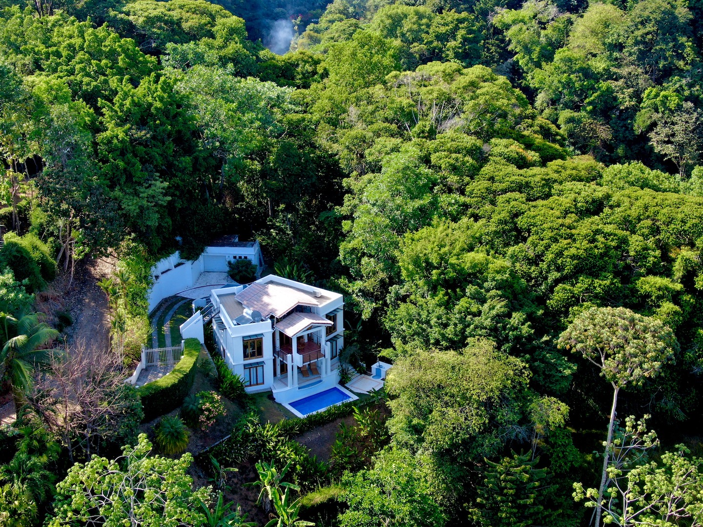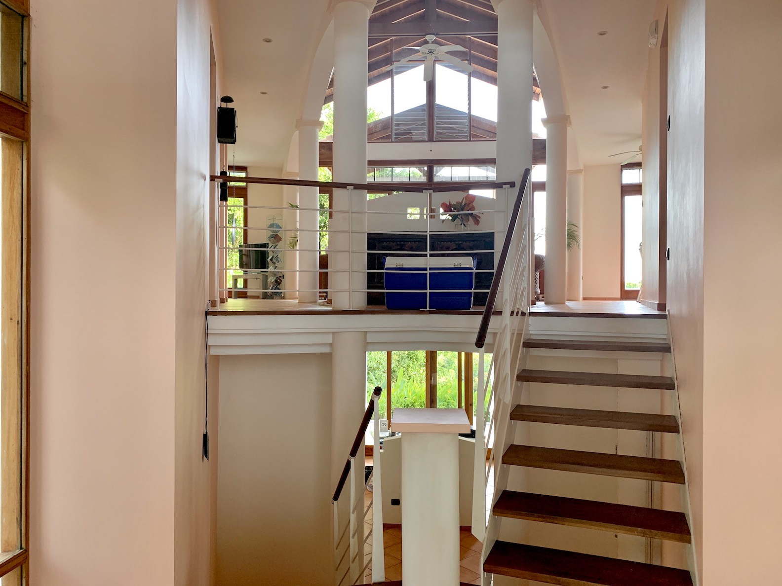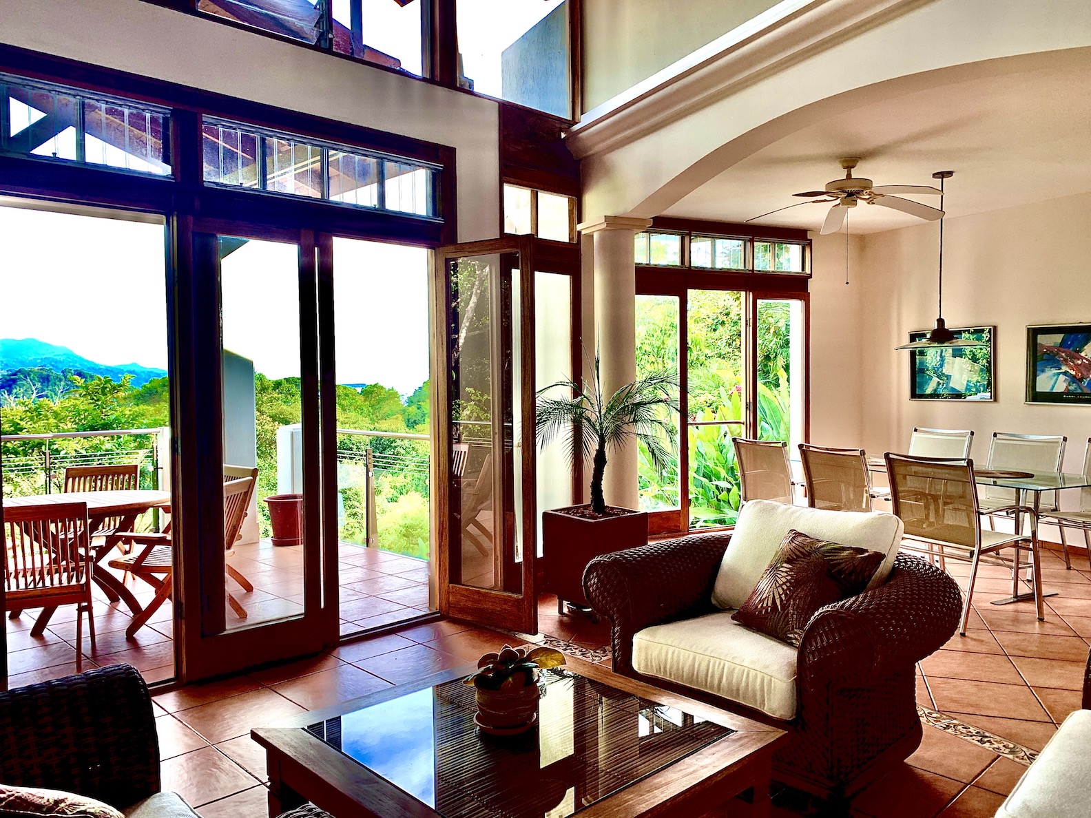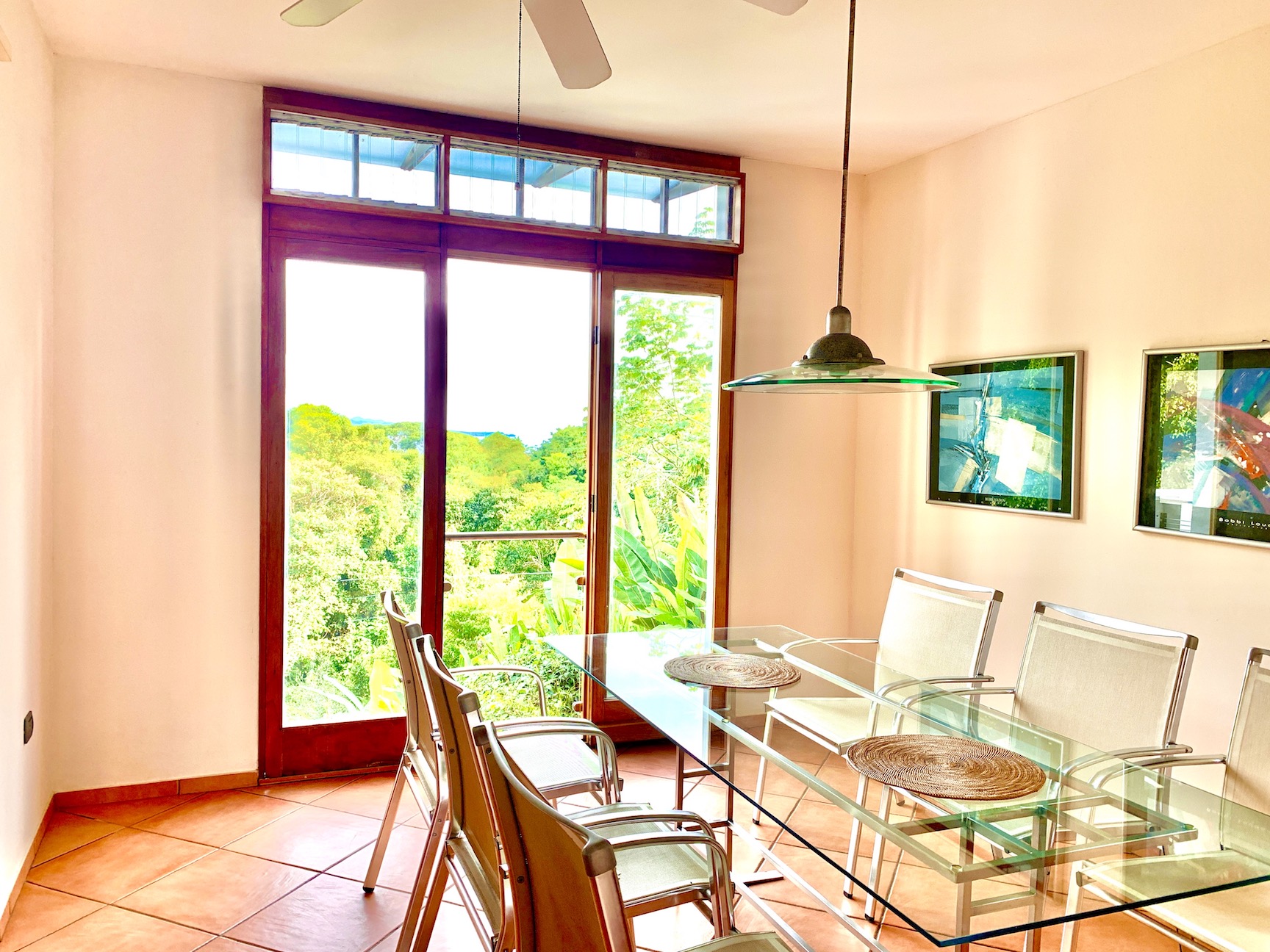 The upper level is an open concept that for dining, living and kitchen area that opens up to the front deck overlooking the jungle canopy and the pool on lower level. The home also has access to the upper level which is great for taking in the view, and with a bit of imagination, this area could easily be converted in to more living space.