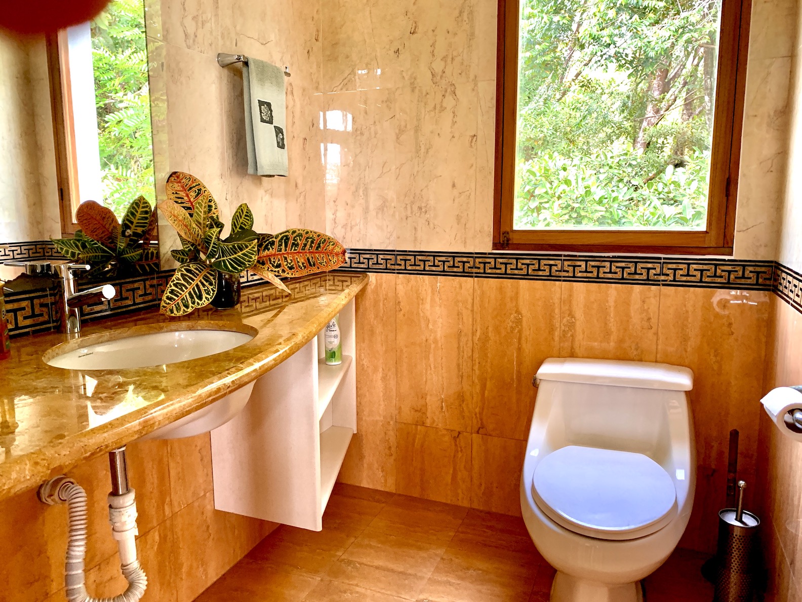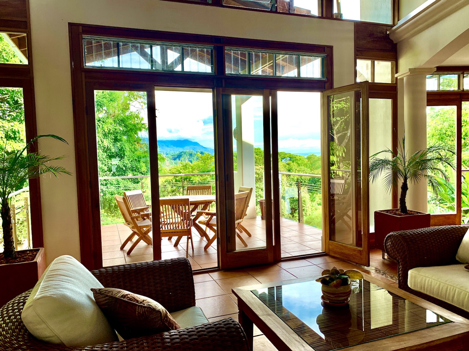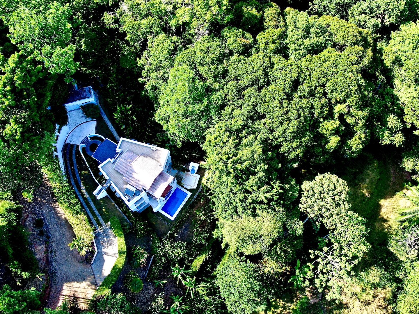 The upper level is an open concept that for dining, living and kitchen area that opens up to the front deck overlooking the jungle canopy and the pool on lower level. The home also has access to the upper level which is great for taking in the view, and with a bit of imagination, this area could easily be converted in to more living space.