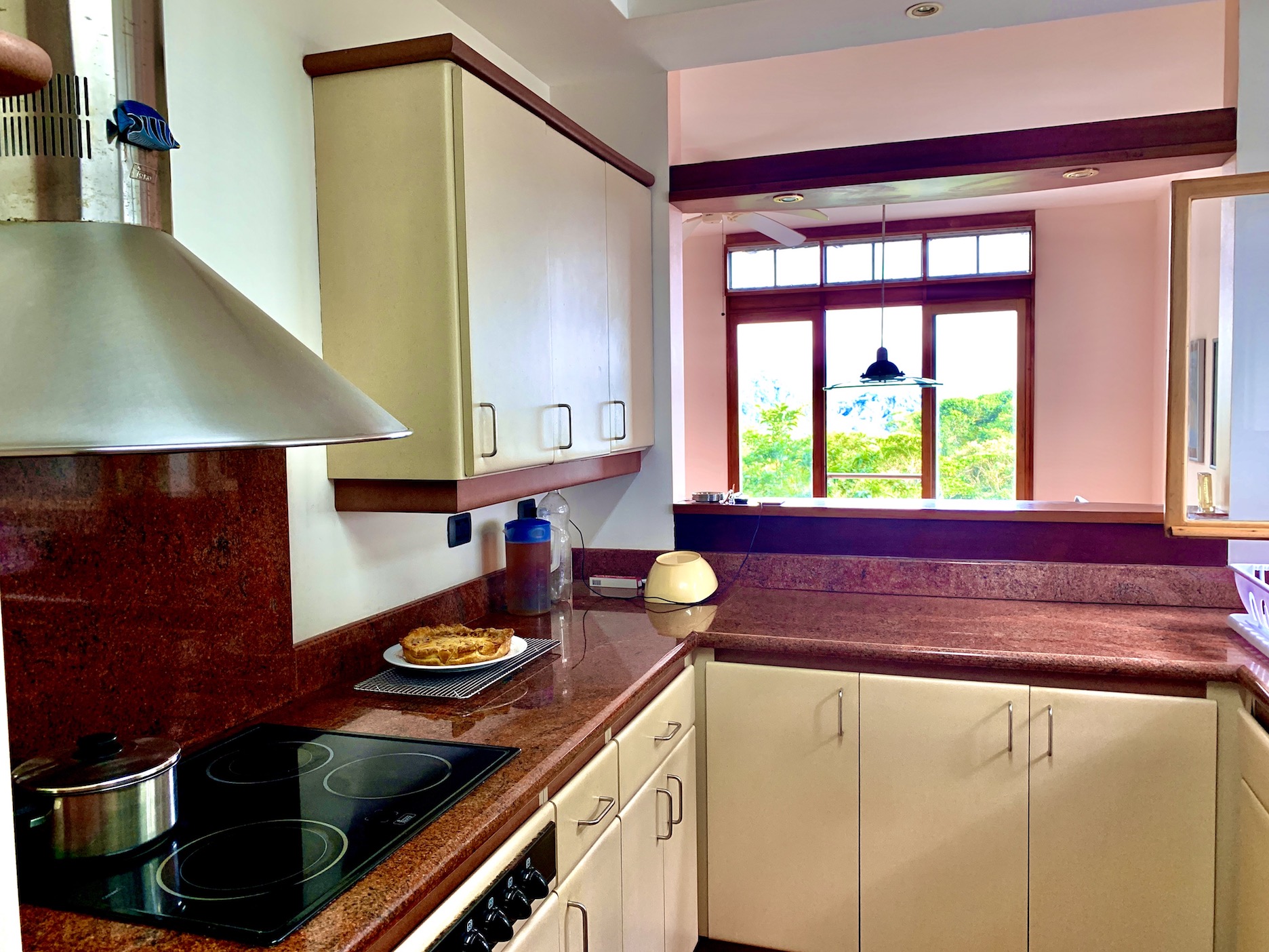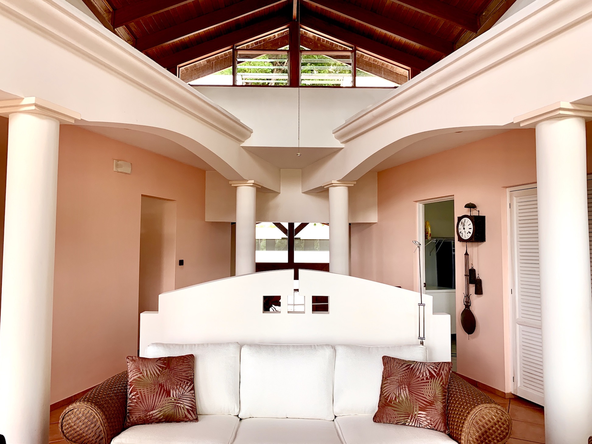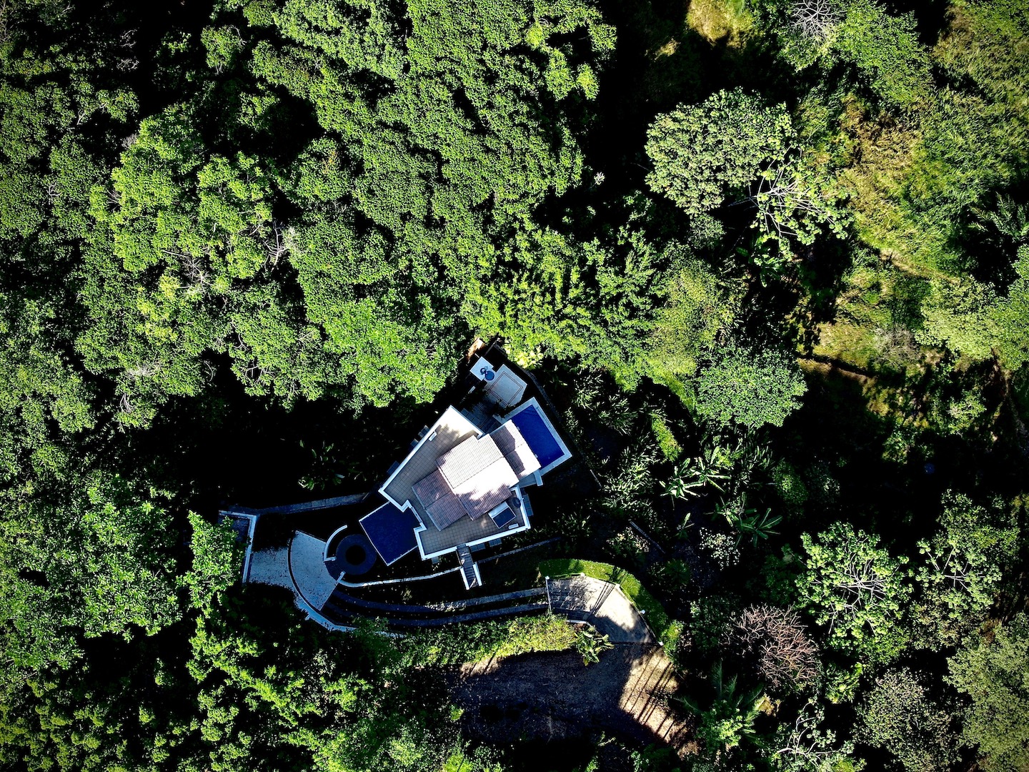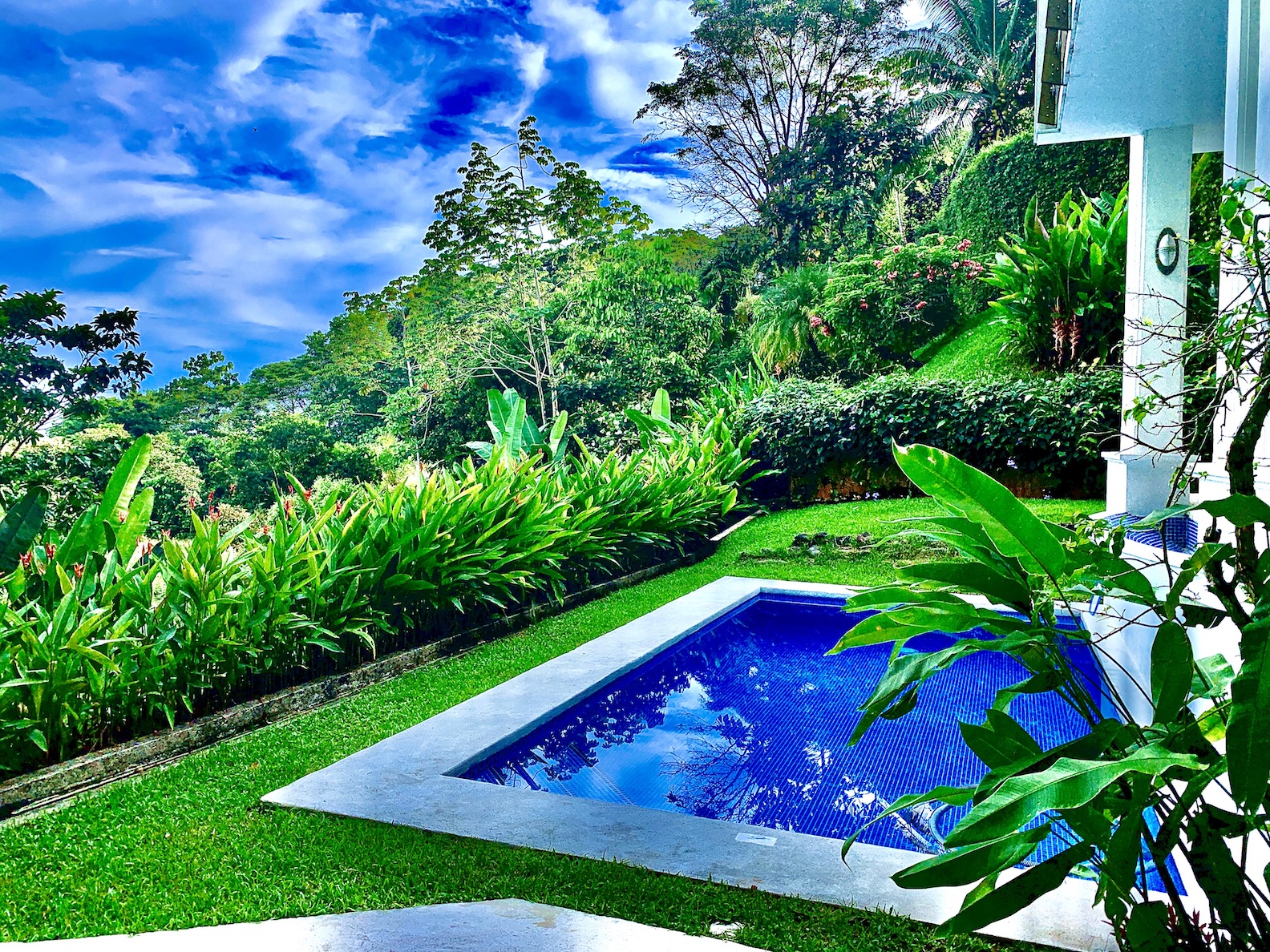 The upper level is an open concept that for dining, living and kitchen area that opens up to the front deck overlooking the jungle canopy and the pool on lower level. The home also has access to the upper level which is great for taking in the view, and with a bit of imagination, this area could easily be converted in to more living space.