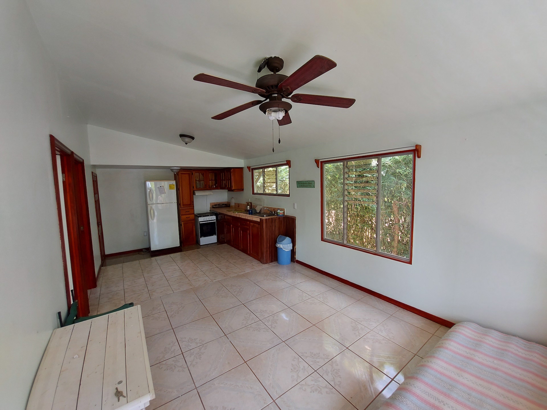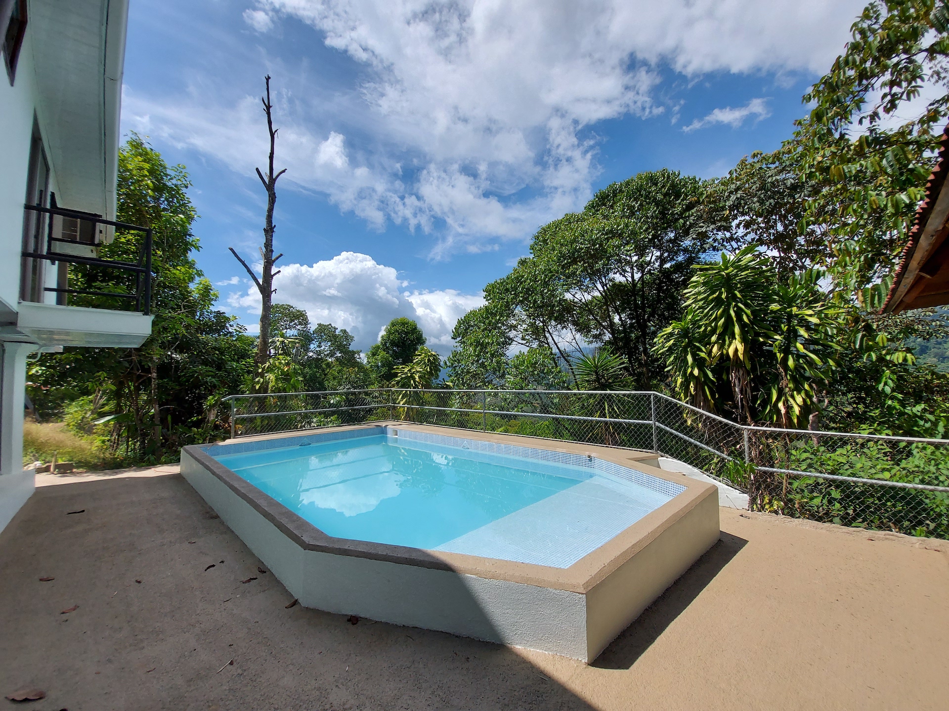 The property has a main gate and the entire front has a natural fence that gives a lot of privacy since the house cannot be seen from the outside, and inside you will feel like all the nature that is around it embraces you giving a feeling of freshness and tranquility. The house is very solid, it is built all in cement with large columns that serve as the foundation for the second floor. It was built with large sliding windows thinking of taking advantage of natural light to the maximum and metal tubes in the stands and balconies for greater security and ease. Additionally, we have a large green area and a portion of the jungle to always guarantee the privacy of the place. Definitely, a place to live in peace.
