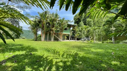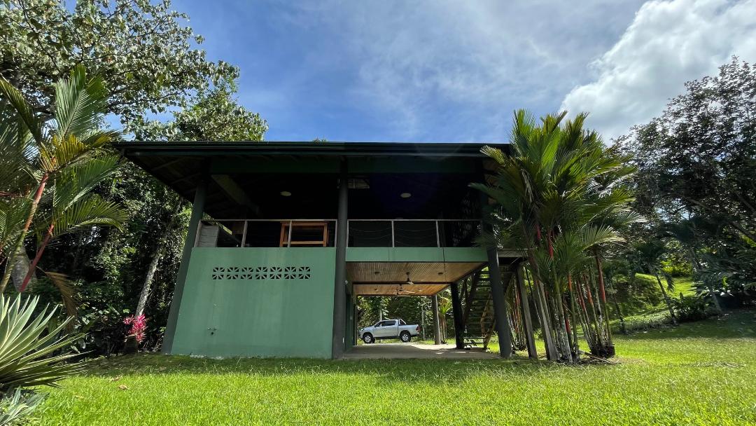 Ascend the stairs to the main area of the home to the open air space that includes the large kitchen and room for both living and dining room areas with vaulted teak ceilings. Two bedrooms and a full bathroom complete the floor plan. All this open air living allows the most beautiful breezes and valley vistas, from the Northeast to south west. Truly panoramic! Toucans and sloths in the trees, bananas, mango, citrus and more growing on the property, and the sound of the powerful Guabo river below. With the area growing quickly, this is truly the property to purchase if you want to protect your future privacy.