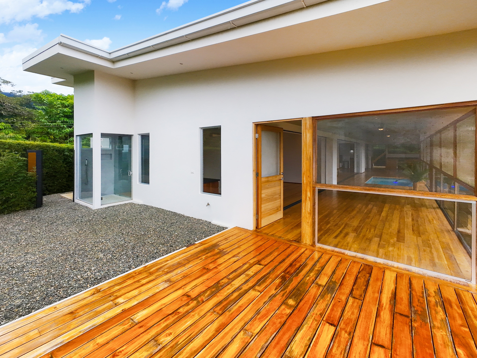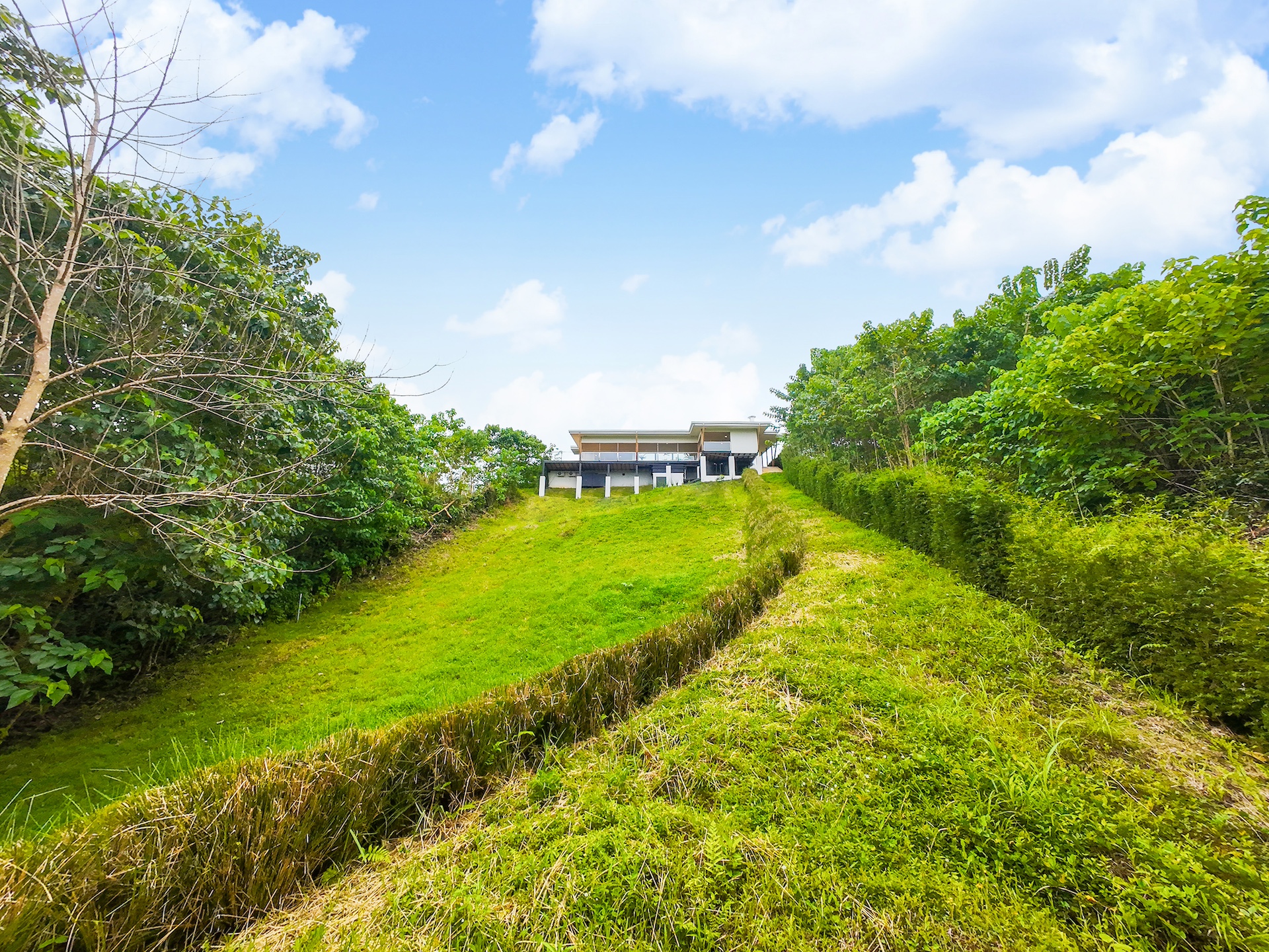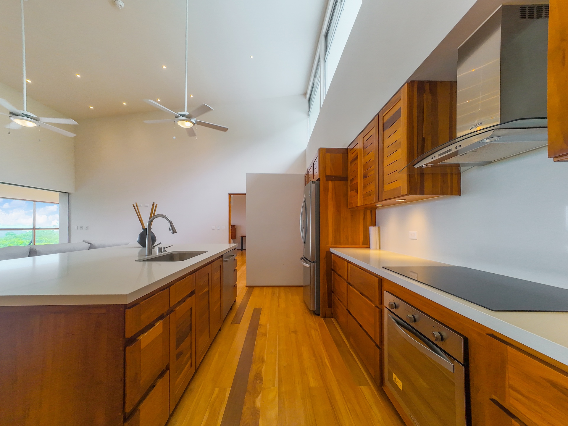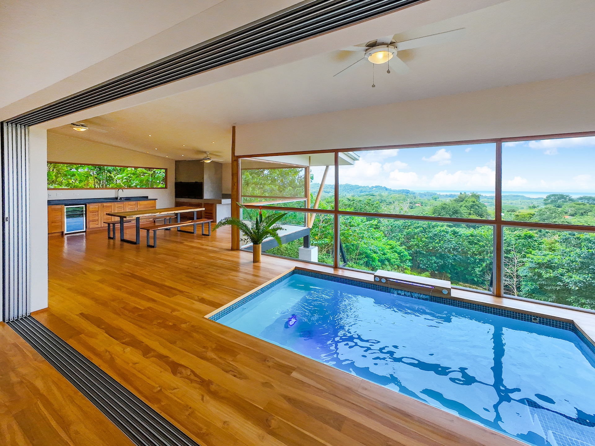 Built on the mountain skirt and architecturally designed with the wind course in mind, this home integrates natural cooling elements seamlessly. As you walk in, it is a sensory experience: your eyes are drawn to the expansive ocean view, while the warm comfort and feel of the exotic woods throughout eases you. The exotic teak wood covers both the interior and terrace floors, and the design details of 6-inch diameter Guadua Angustifolia bamboo evoke a natural ambiance as you are further soothed by the calming sounds of the pool’s water fountain.