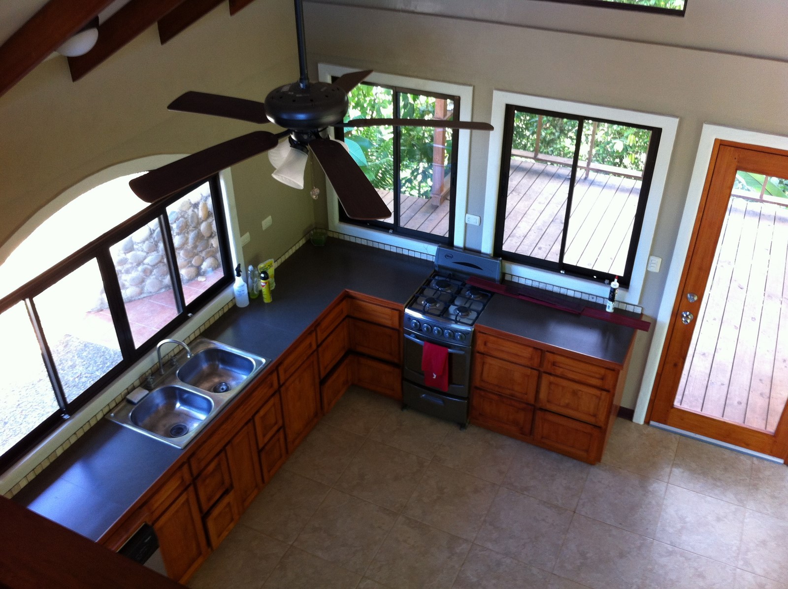 The home is a one bedroom, one bathroom with a large living area off the fully appointed kitchen. The plus with this home is a nice sized loft that can comfortably fit a King, Queen or two double beds with ample room for clothes, toys or just stuff you want tucked away. The loft and master bedroom both have ocean views for everyone's enjoyment. The rear covered borders the jungle that has, from what I am told, is a fabulous falls just a few min walk from your property.