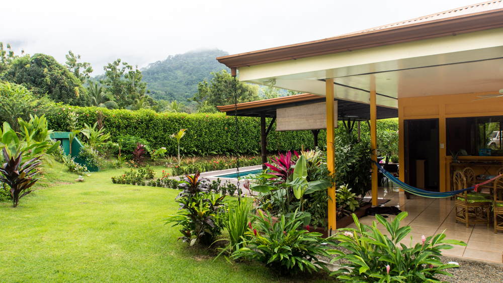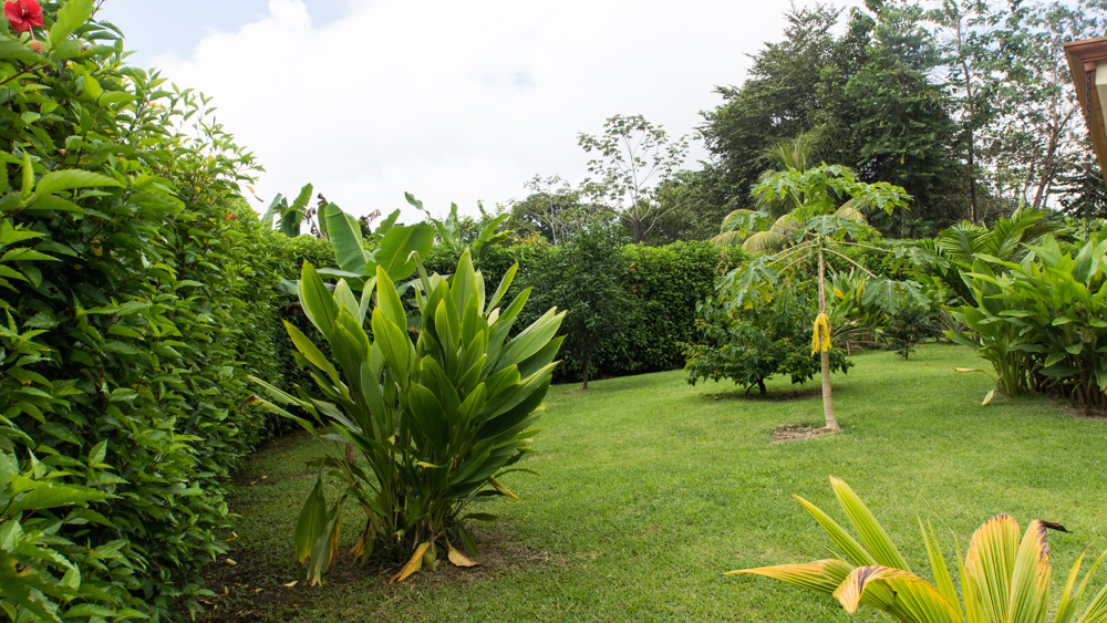 The property has been beautifully landscaped with several lawn and garden areas, and numerous fruit trees. A gated entrance and hedges around the entire property provide plenty of privacy. Just around the corner you will find a local fresh produce farm. You will frequently spot Scarlet Macaws here. This is a private, quiet haven from which to enjoy the simple life in the tropics.